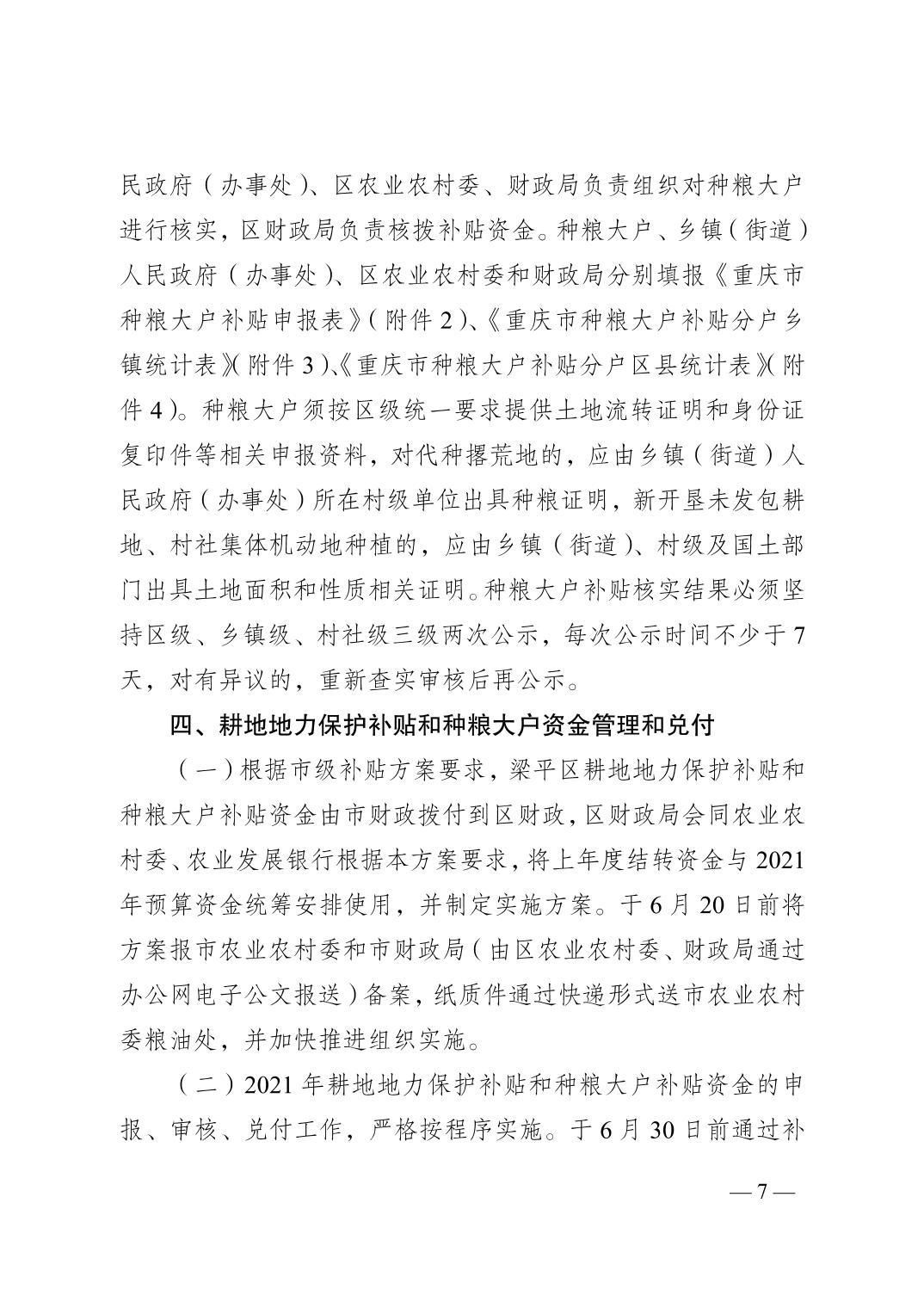 | 标题 | 重庆市梁平区农业农村委员会重庆市梁平区财政局关于印发2021年梁平区耕地地力保护和种粮大户补贴工作实施方案的通知 |