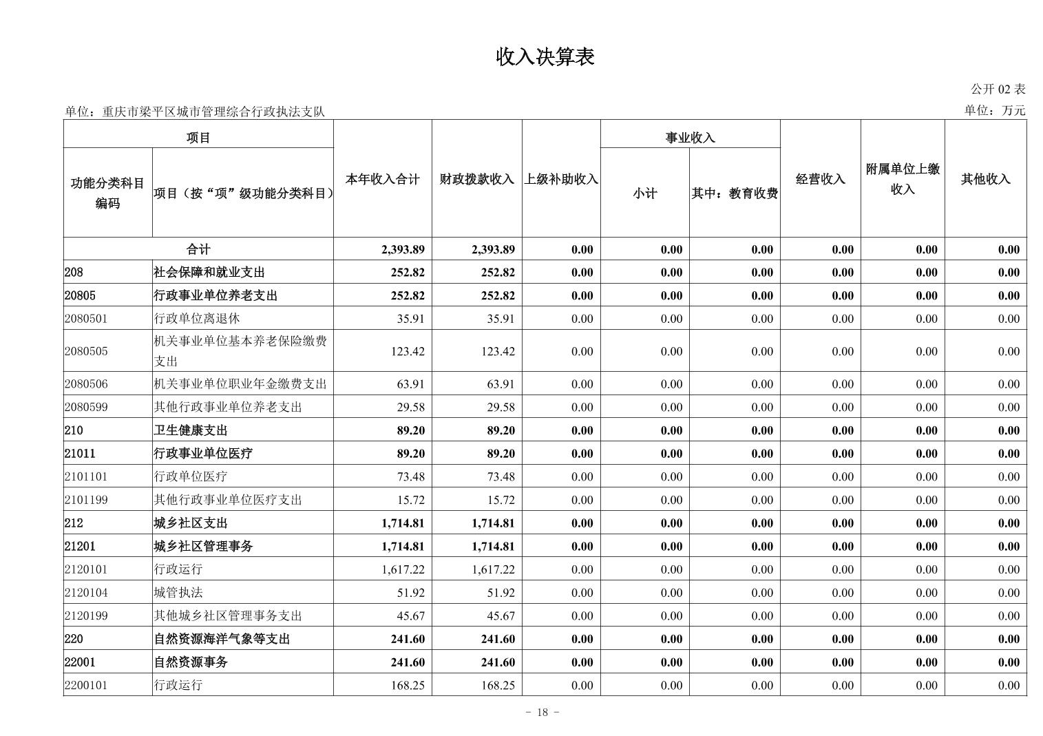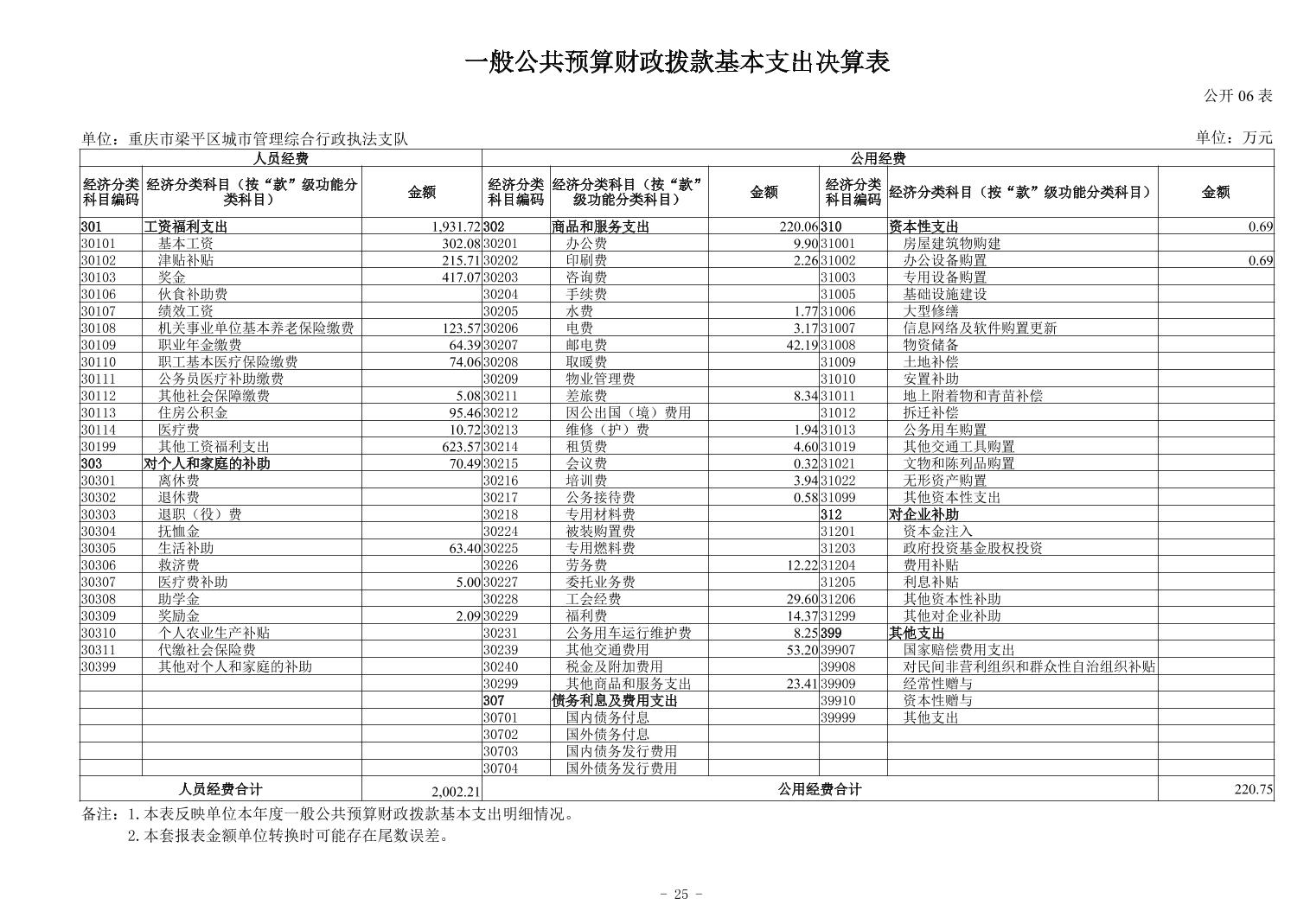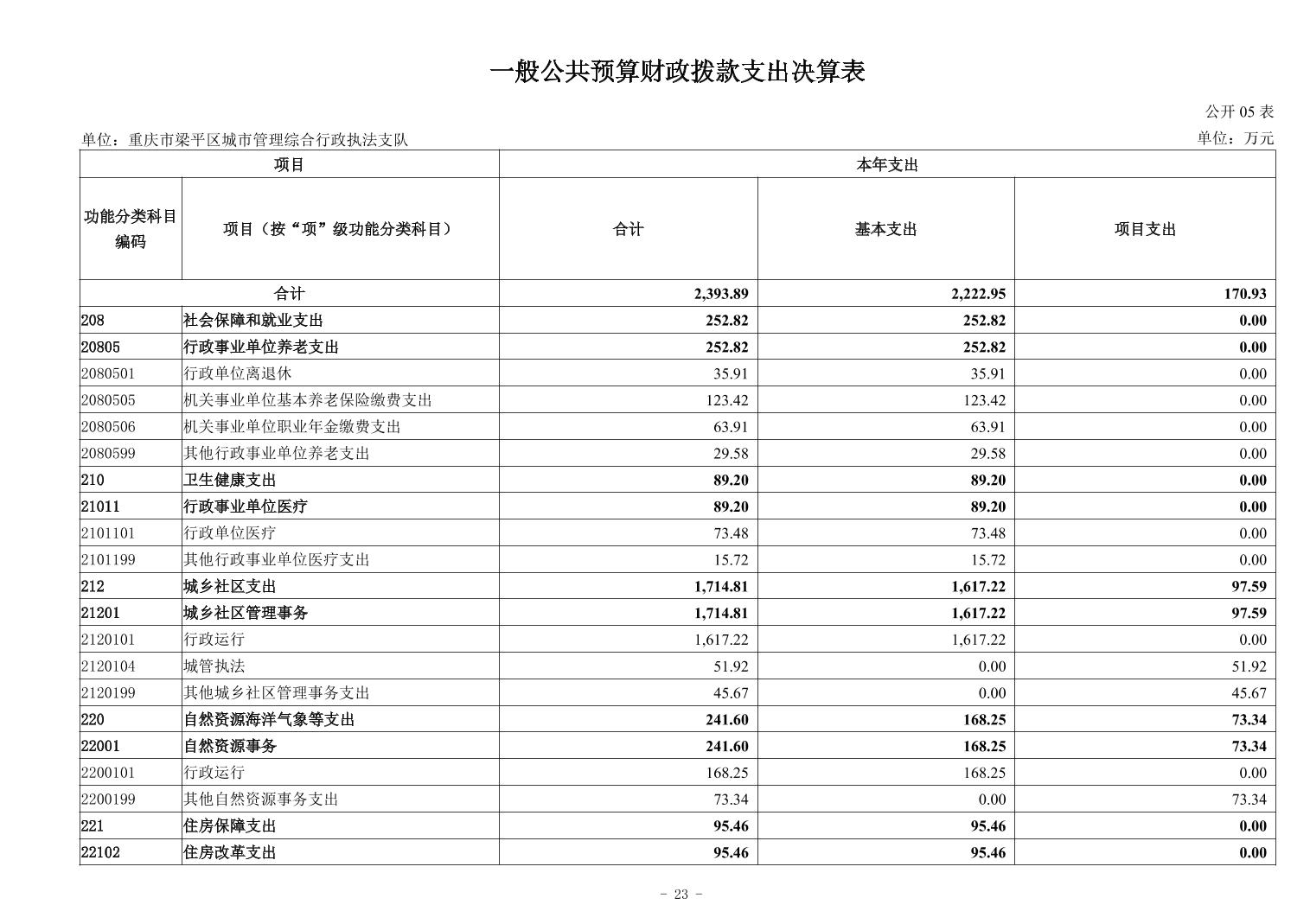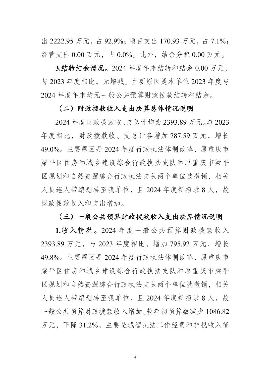 标题 | 重庆市梁平区城市管理综合行政执法支队2024年度决算公开说明 | ||