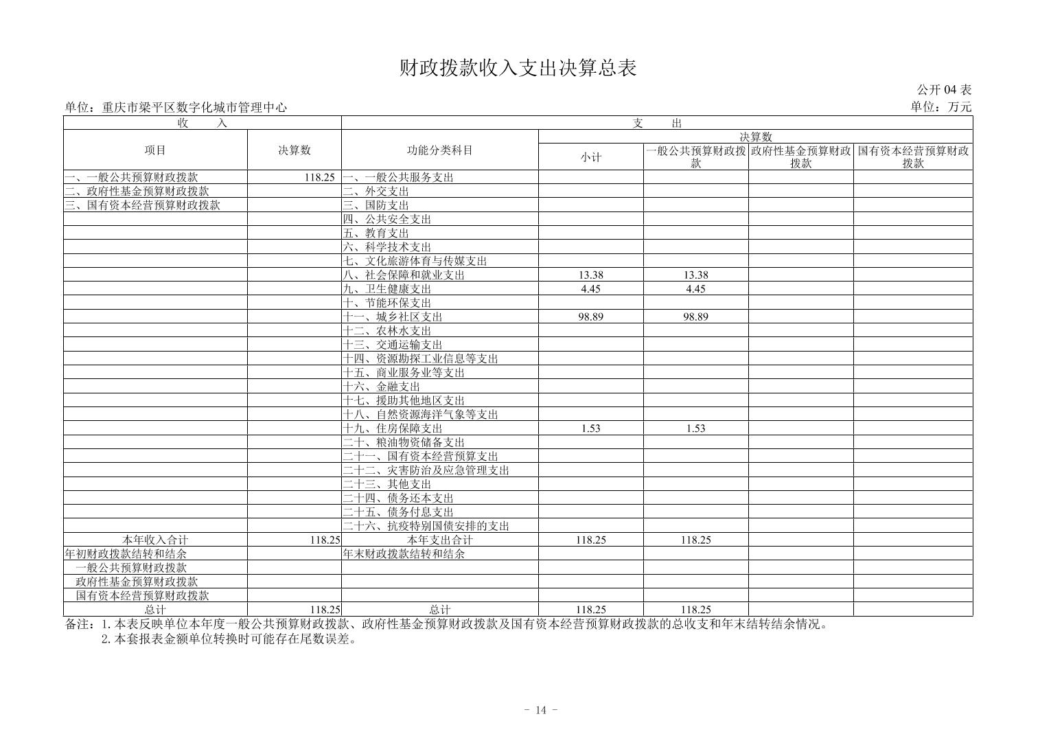 标题 | 重庆市梁平区数字化城市管理中心2024年度决算公开说明 |