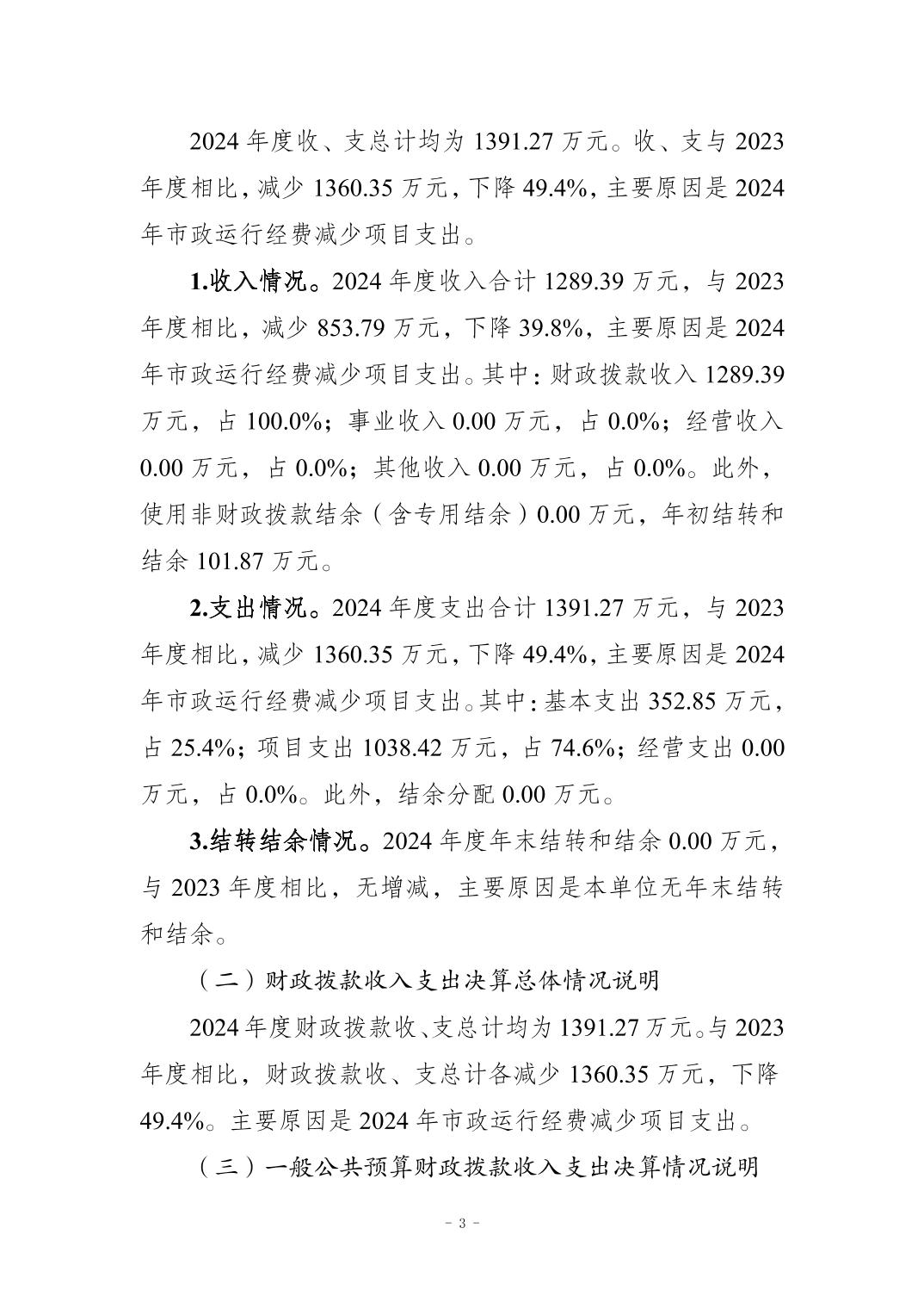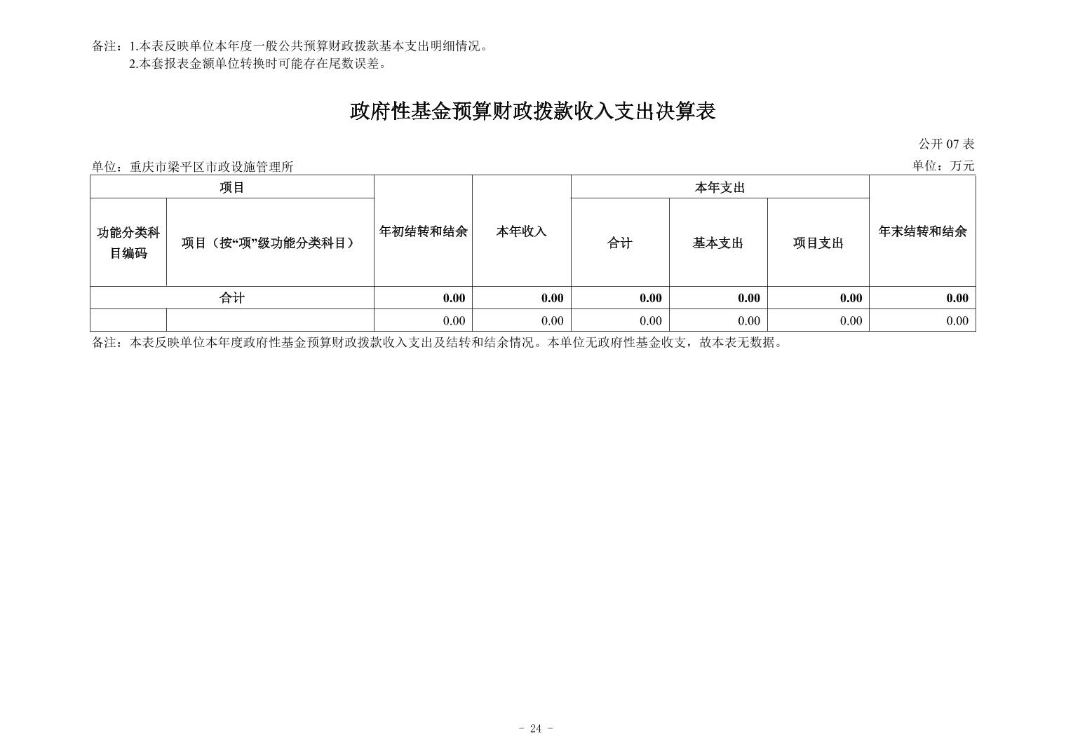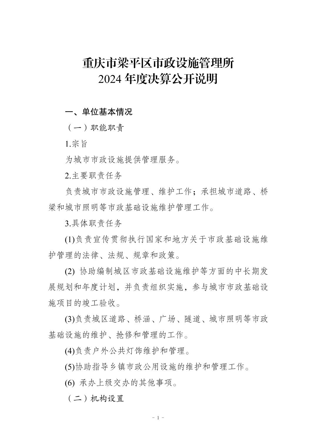 标题 | 重庆市梁平区市政设施管理所2024年度决算公开说明 |