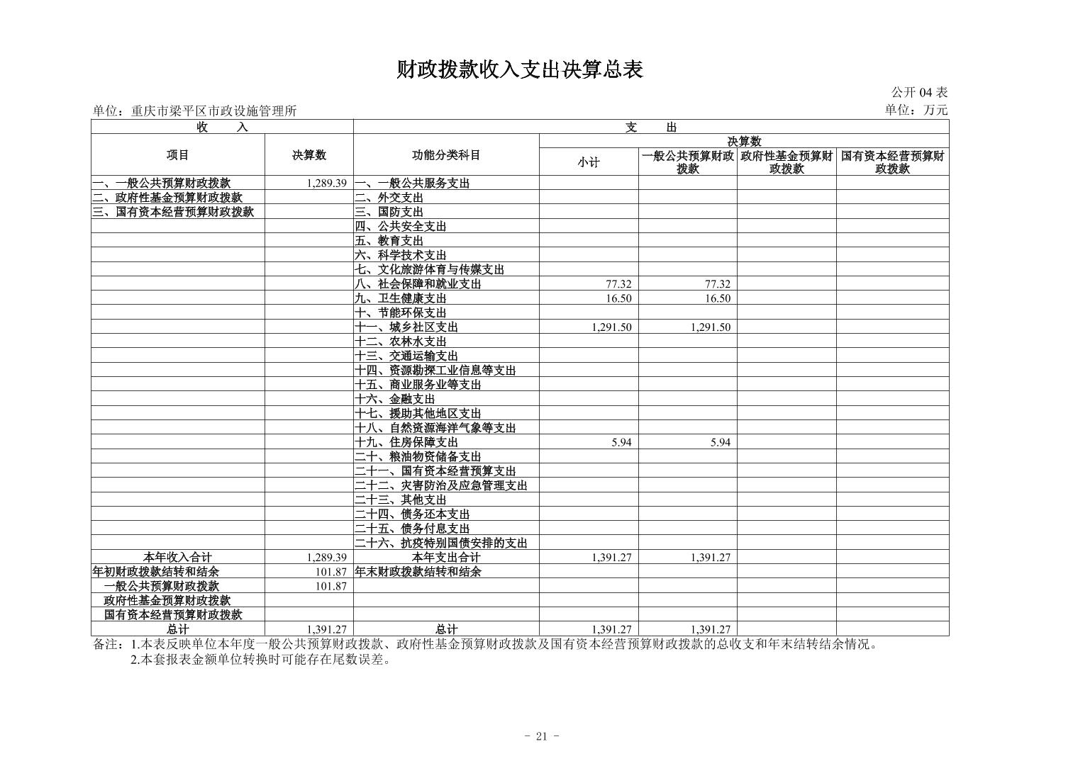 标题 | 重庆市梁平区市政设施管理所2024年度决算公开说明 | ||