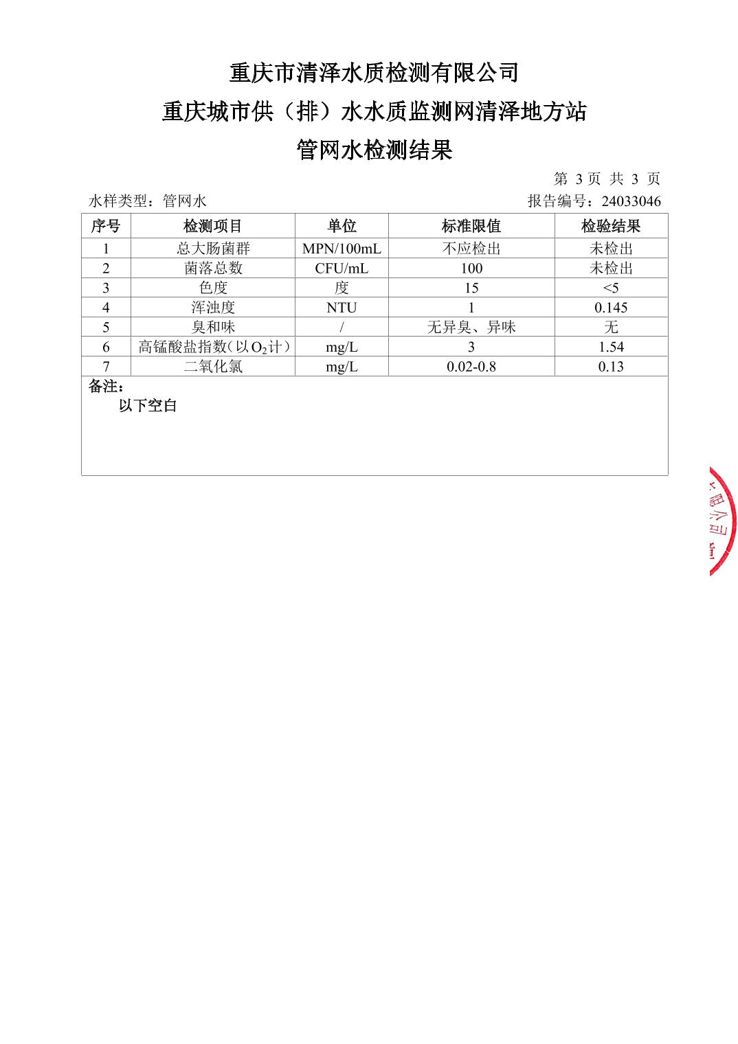 | 标题 | 大河坝水厂管网水(太和社区)2024年3月检测报告 | ||