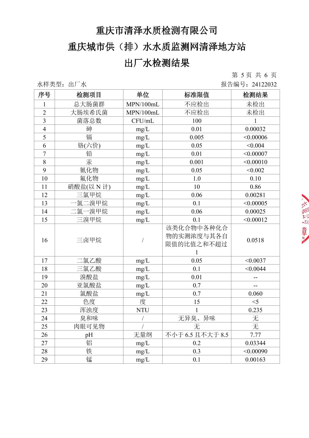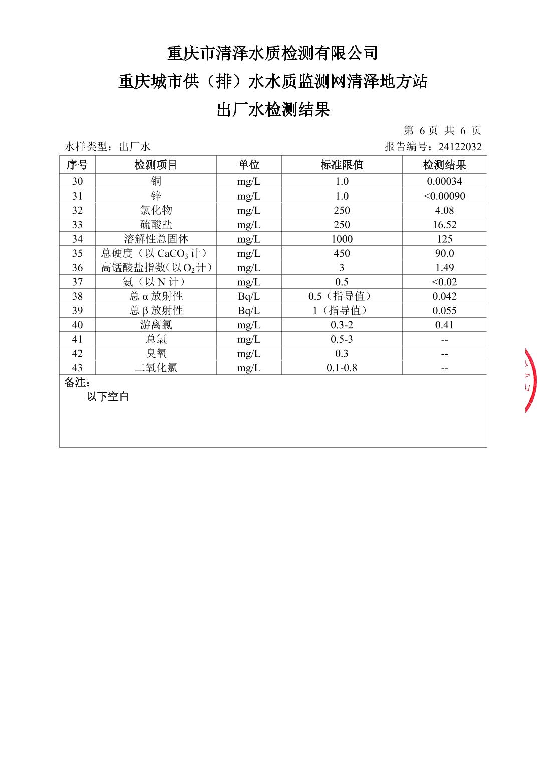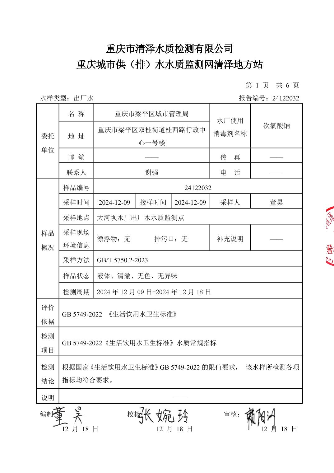 | 标题 | 大河坝水厂出厂水 2024年12月检测报告 |