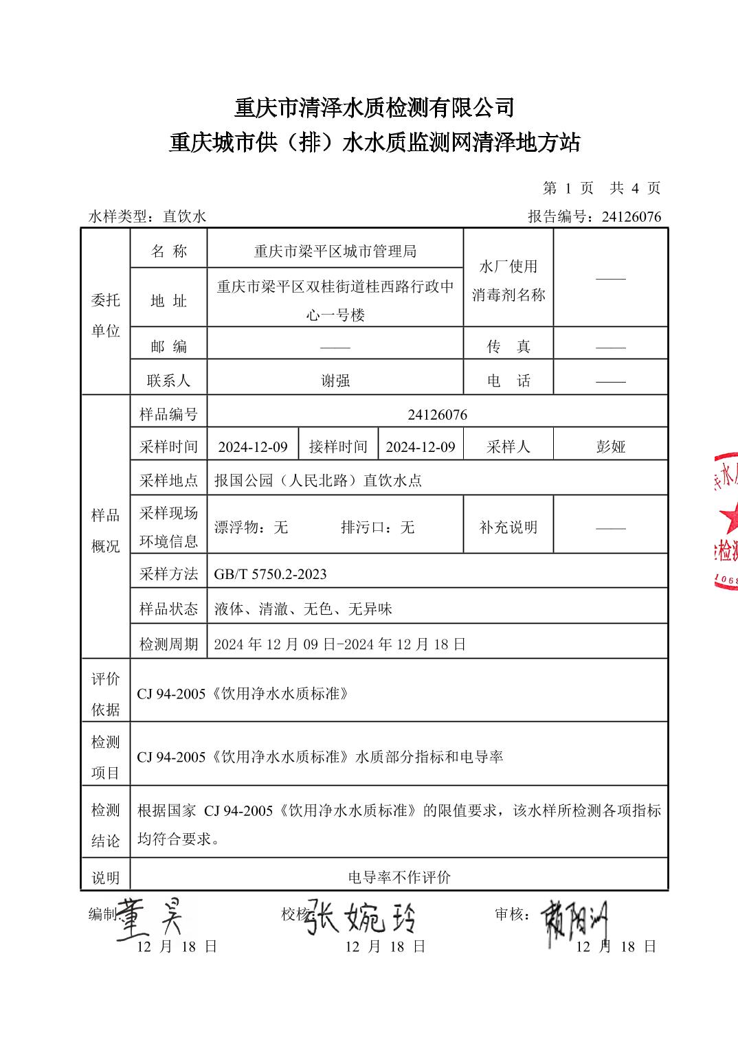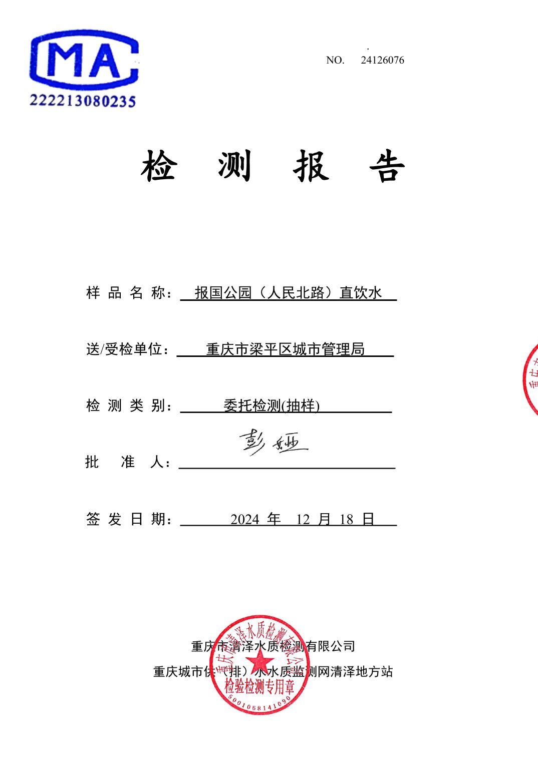 | 标题 | 报国公园(人民北路)直饮水 2024年12月检测报告 |