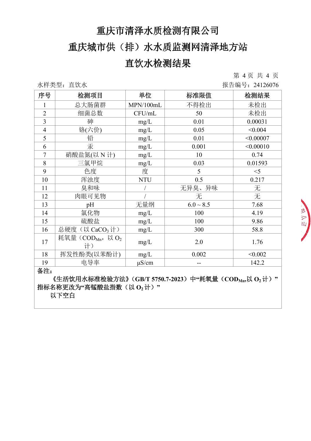 | 标题 | 报国公园(人民北路)直饮水 2024年12月检测报告 | ||