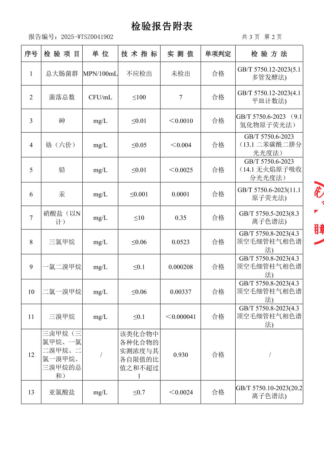 | 标题 | 大井水厂出厂水2025年10月检测报告 | ||