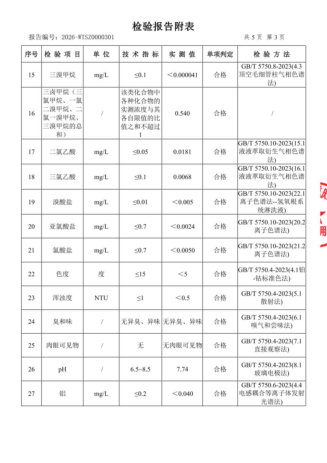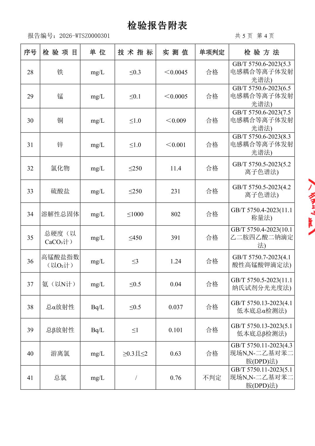 | 标题 | 盐井河水厂出厂水2026年1月检测报告 | ||