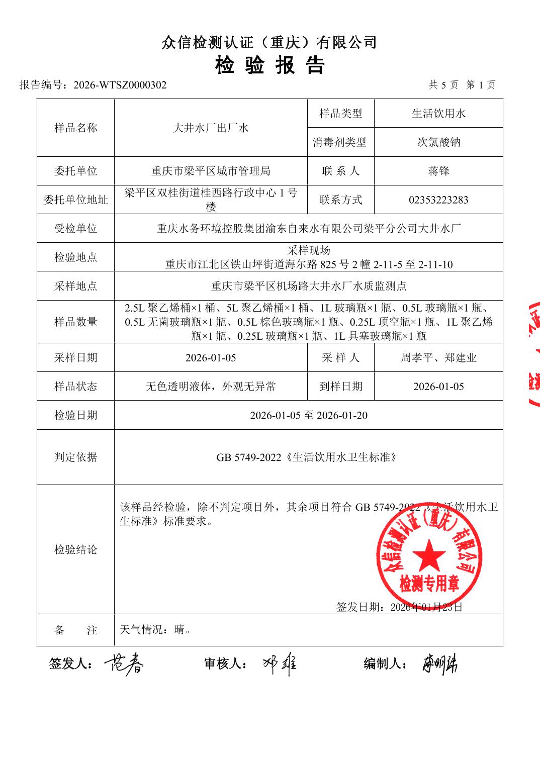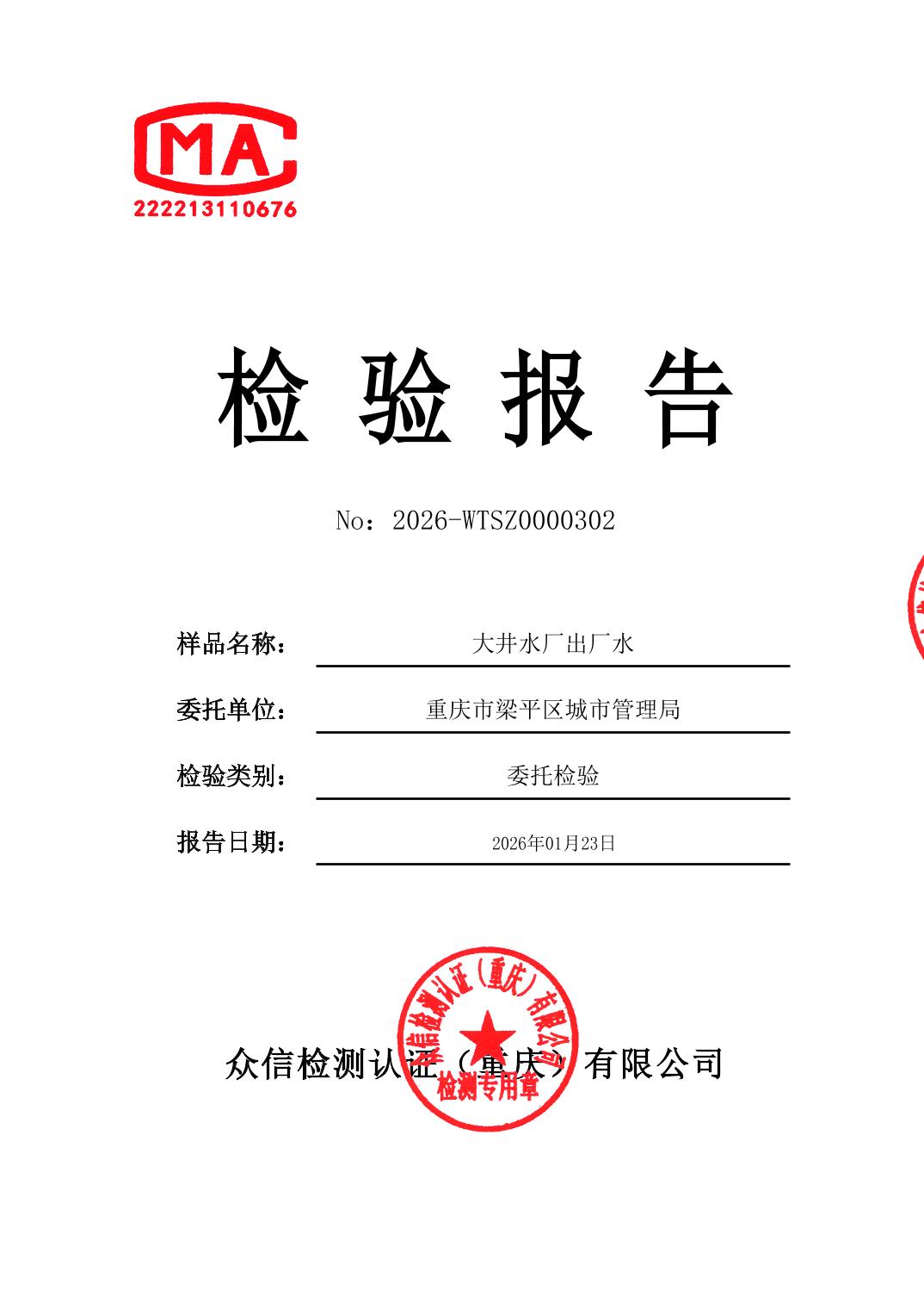 | 标题 | 大井水厂出厂水2026年1月检测报告 |