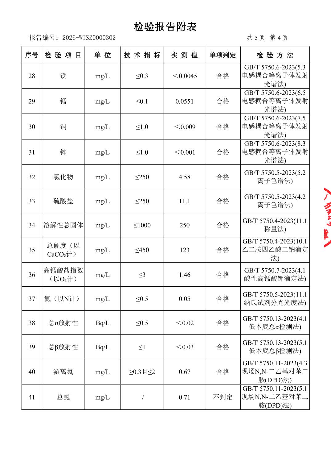 | 标题 | 大井水厂出厂水2026年1月检测报告 | ||