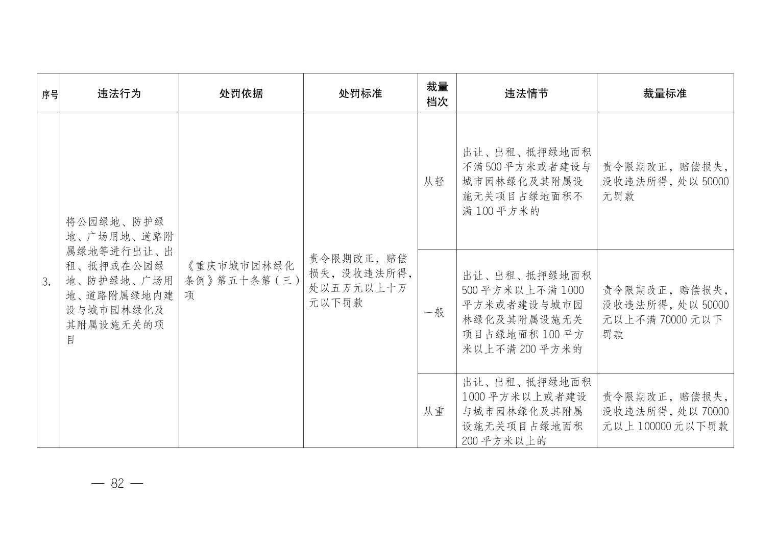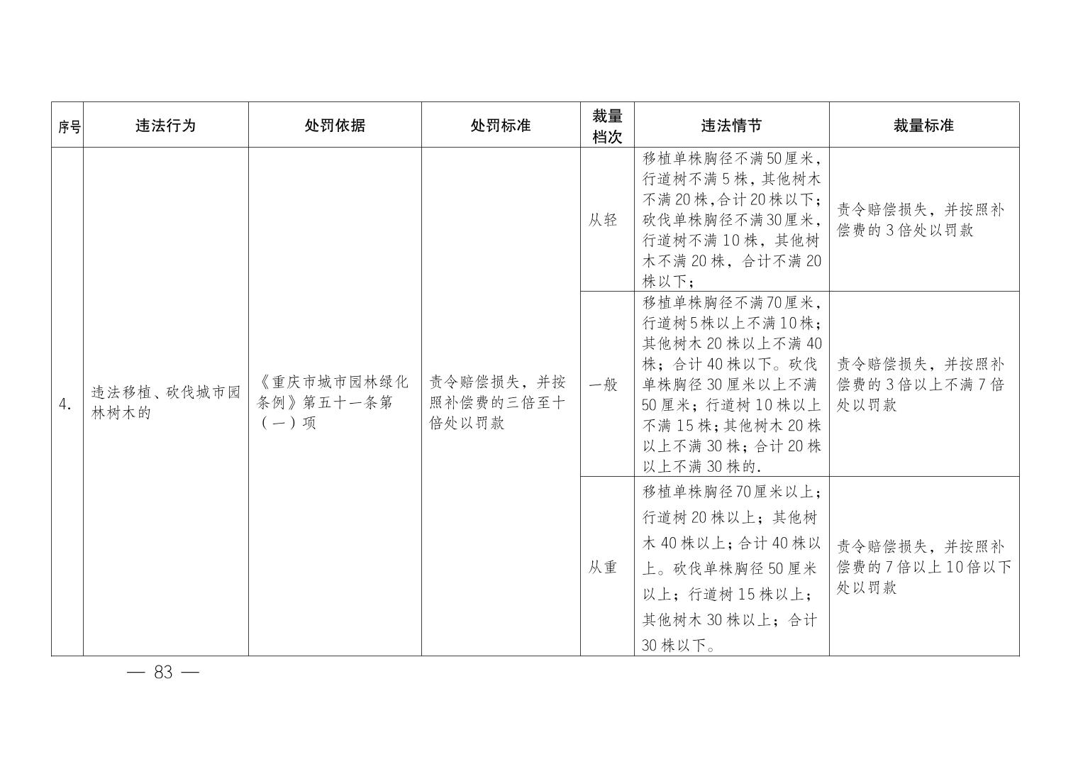 | 标题 | 重庆市城市管理行政处罚裁量权实施办法(市政公用设施、市容环境卫生、 城市园林绿化执法) |