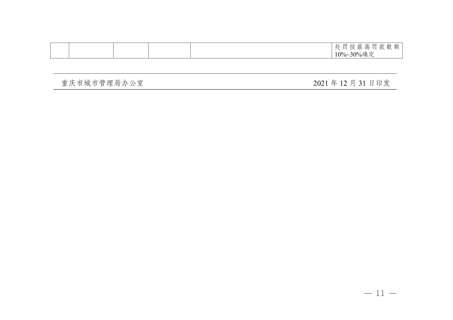 | 标题 | 重庆市城市管理行政处罚裁量权实施办法(中心城区进入规划审批程序的城市违法建设执法)(试行) |