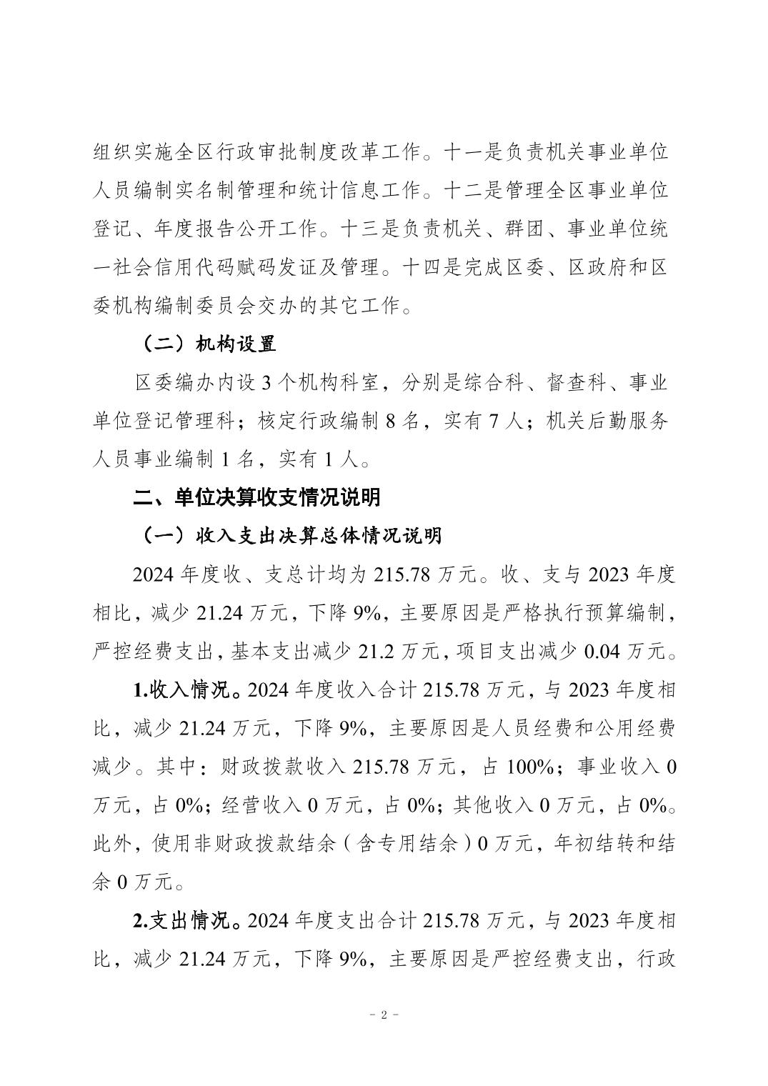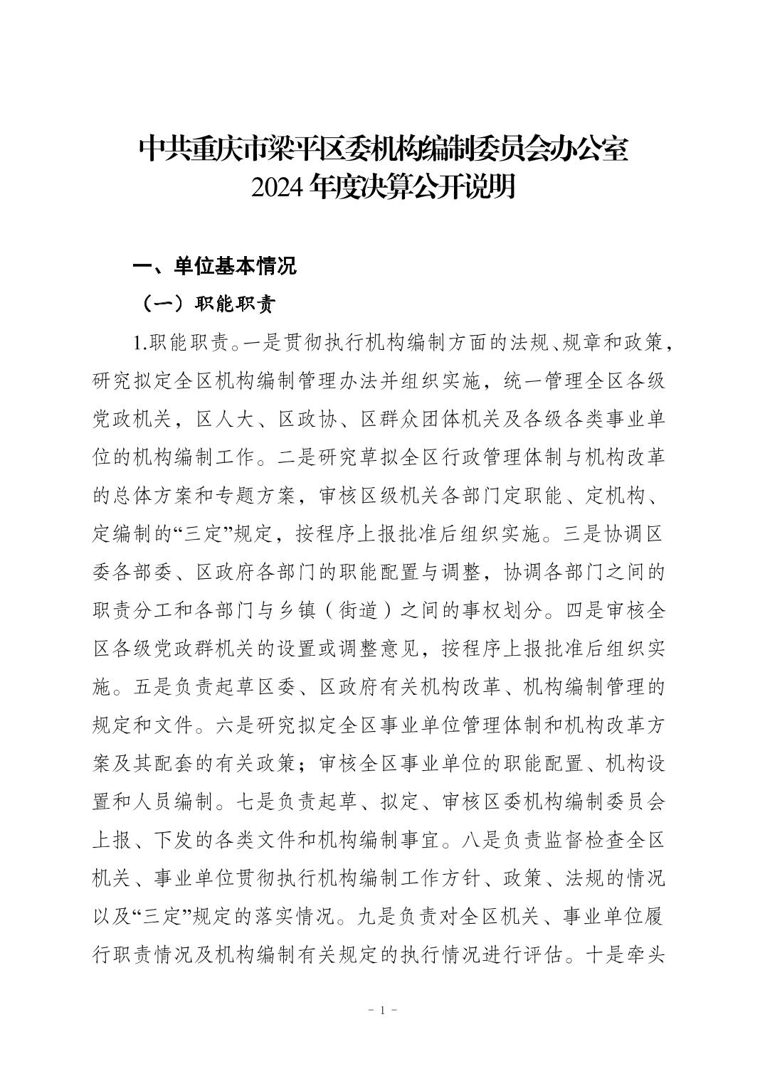 标题 | 中共重庆市梁平区委机构编制委员会办公室 2024 年度决算公开说明 |