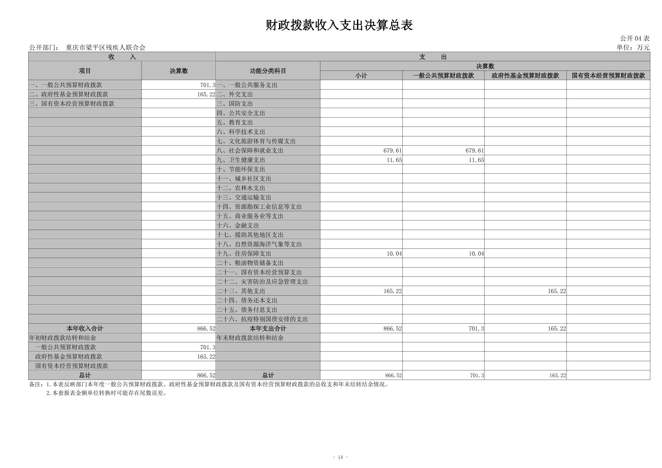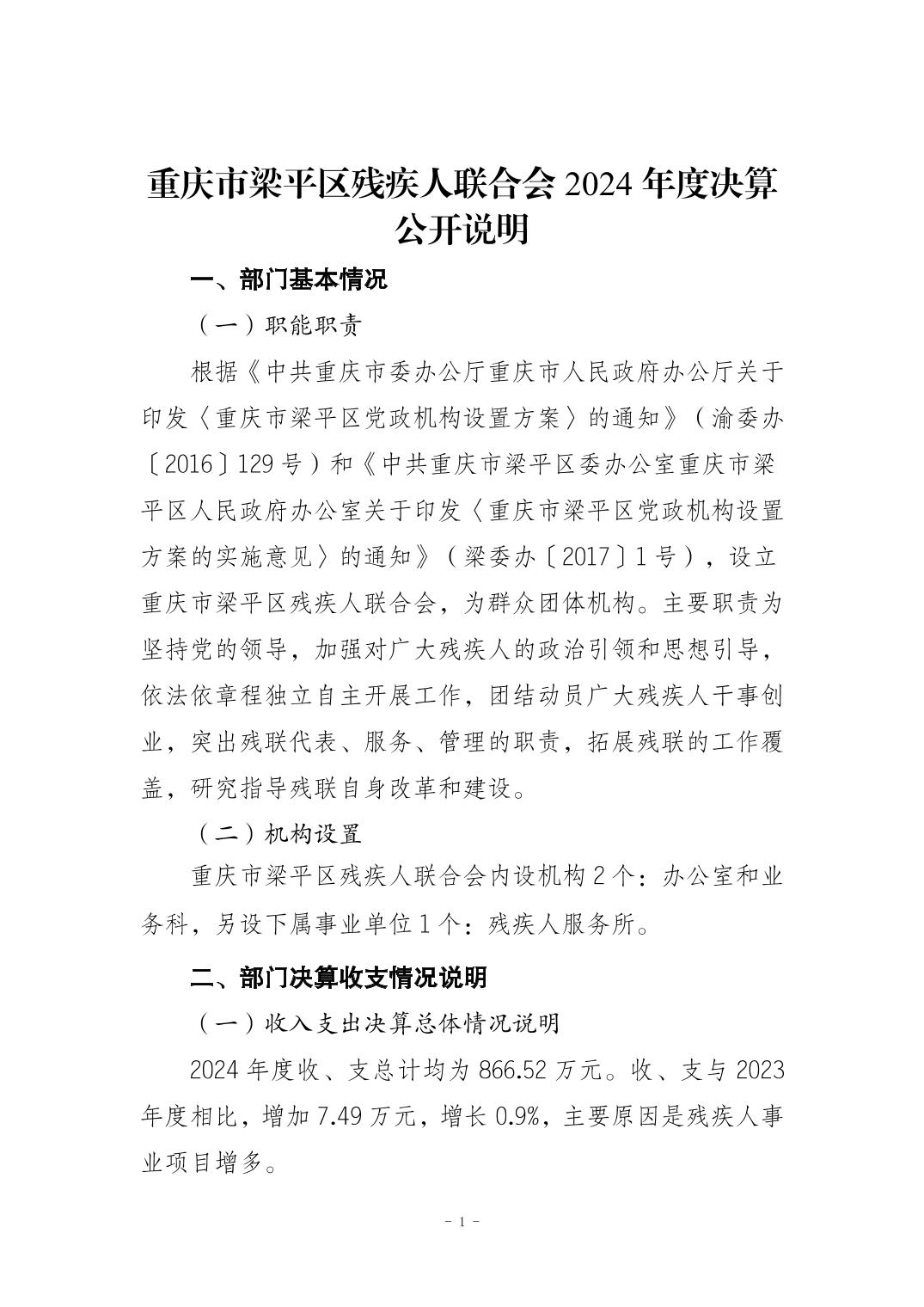 标题 | 重庆市梁平区残疾人联合会2024年度决算公开说明 |