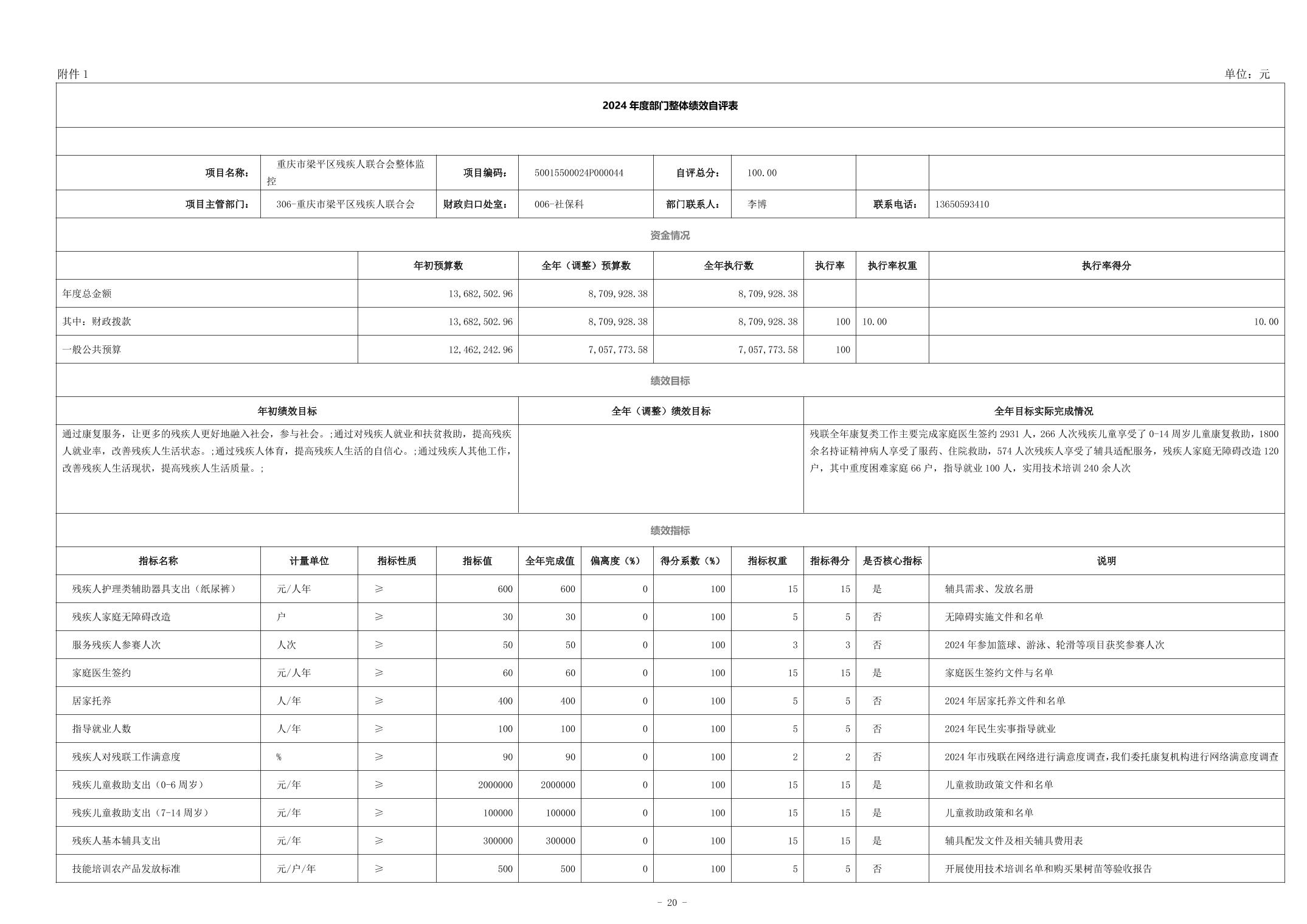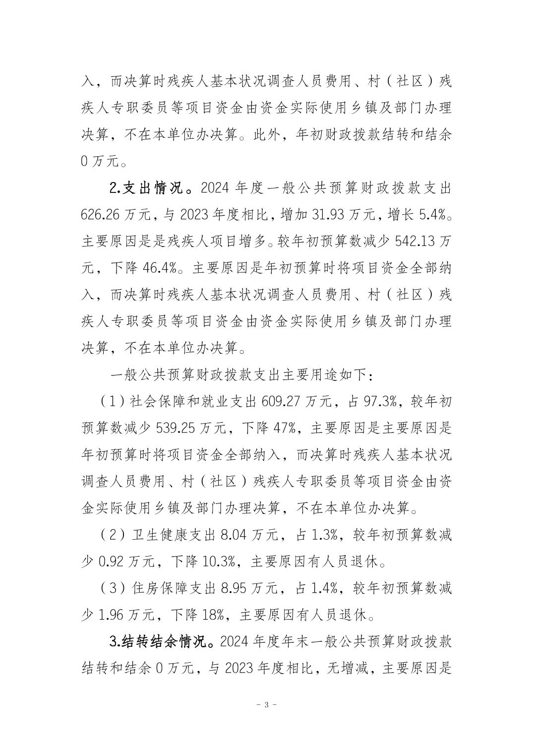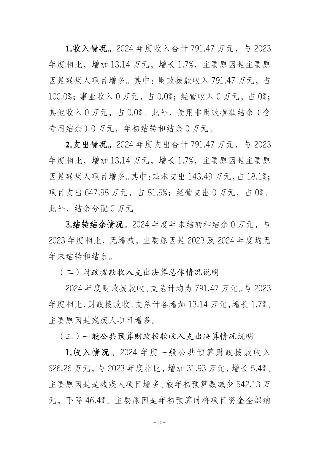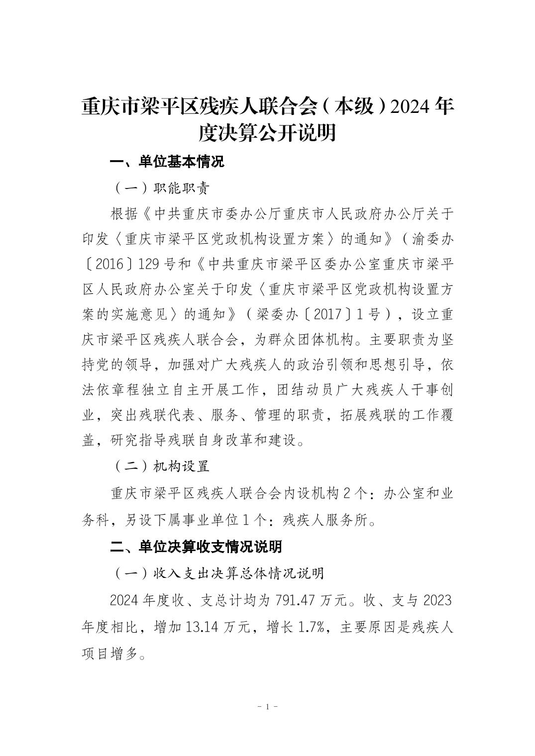 标题 | 重庆市梁平区残疾人联合会(本级)2024年度部门决算公开说明 |