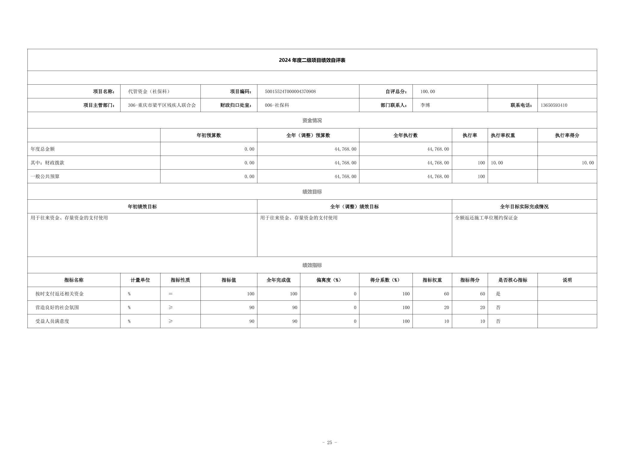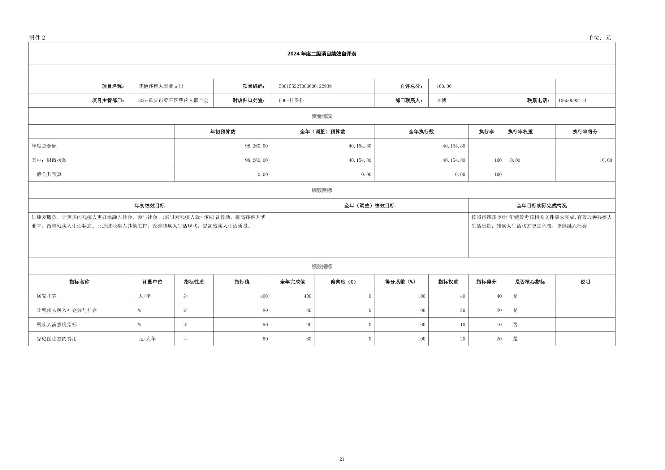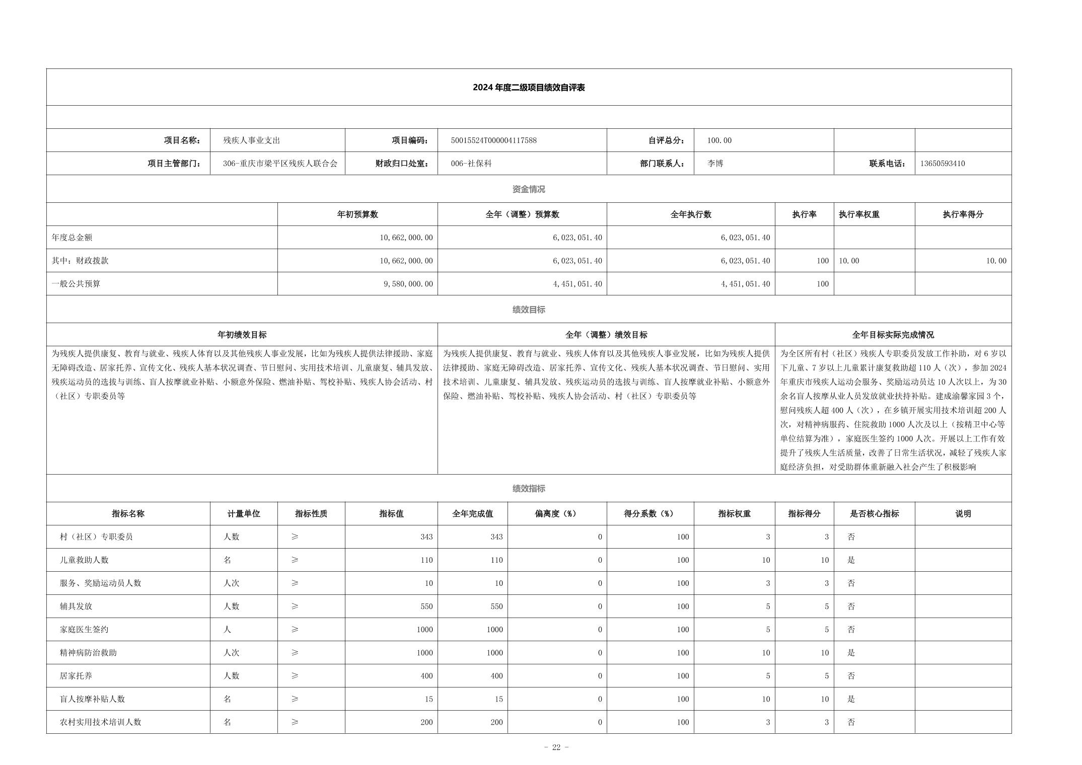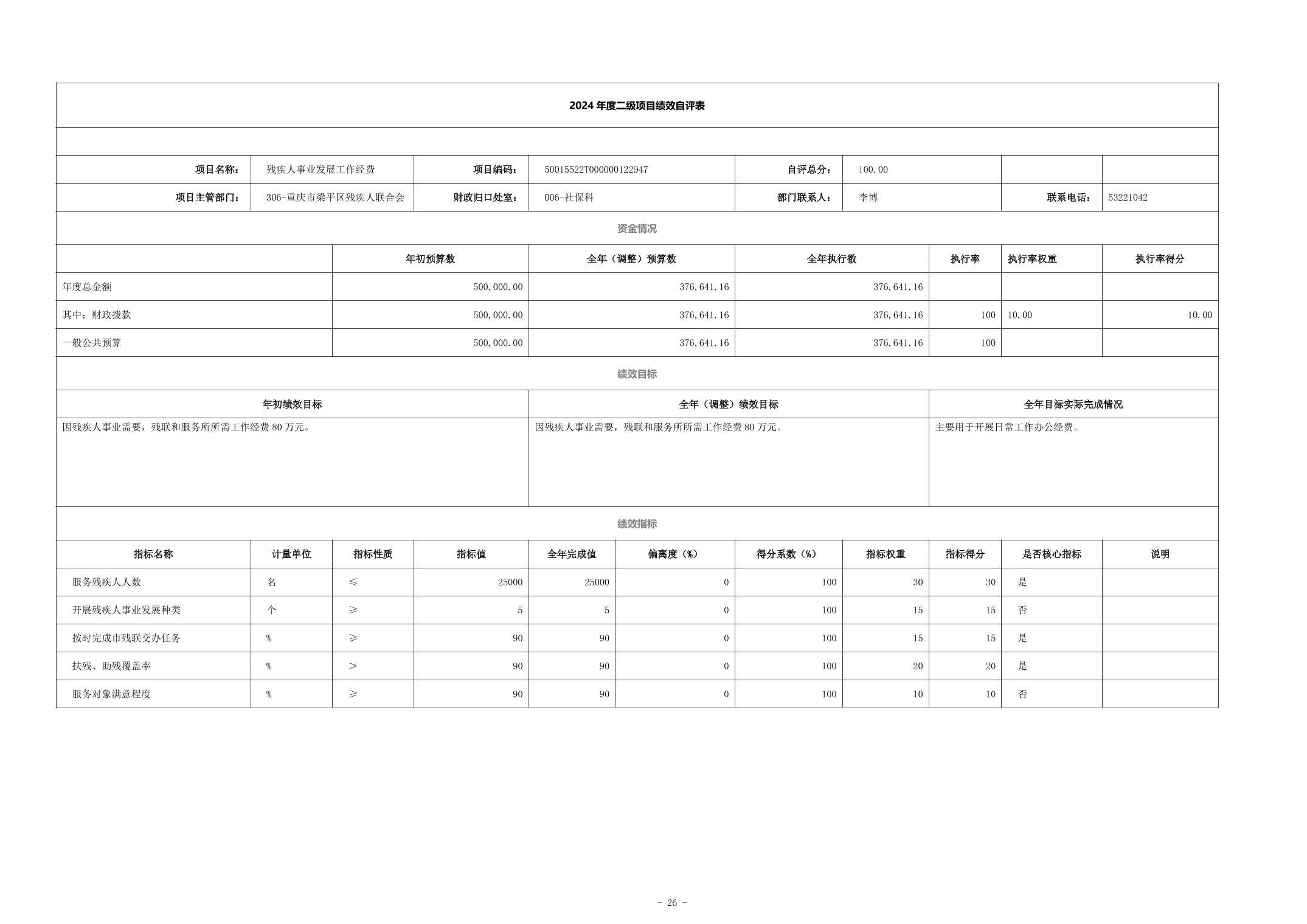 标题 | 重庆市梁平区残疾人联合会(本级)2024年度部门决算公开说明 |