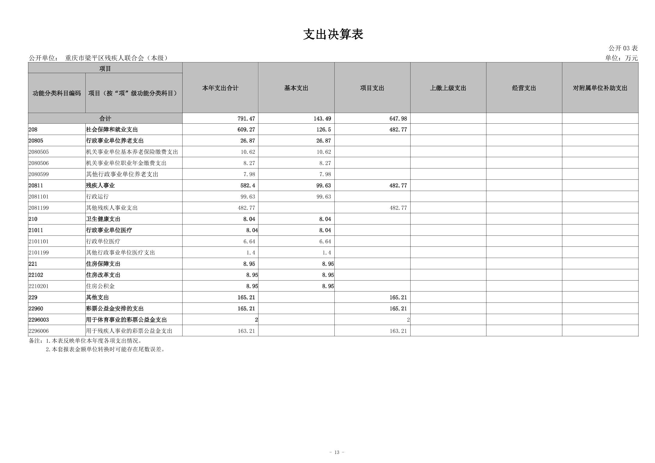 标题 | 重庆市梁平区残疾人联合会(本级)2024年度部门决算公开说明 | ||