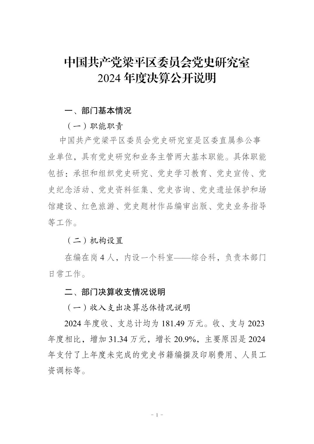 标题 | 中国共产党梁平区委员会党史研究室 2024 年度决算公开说明 |