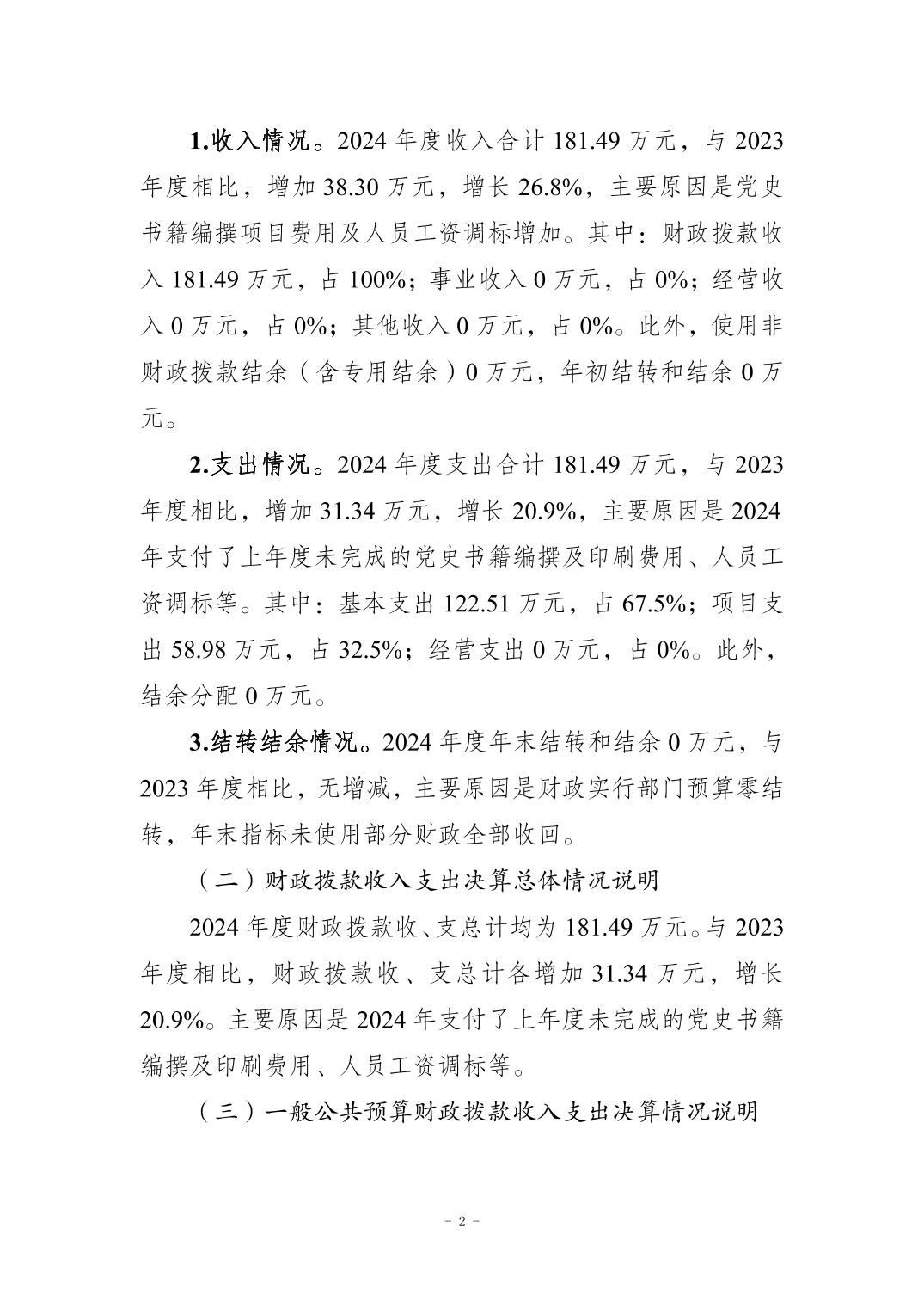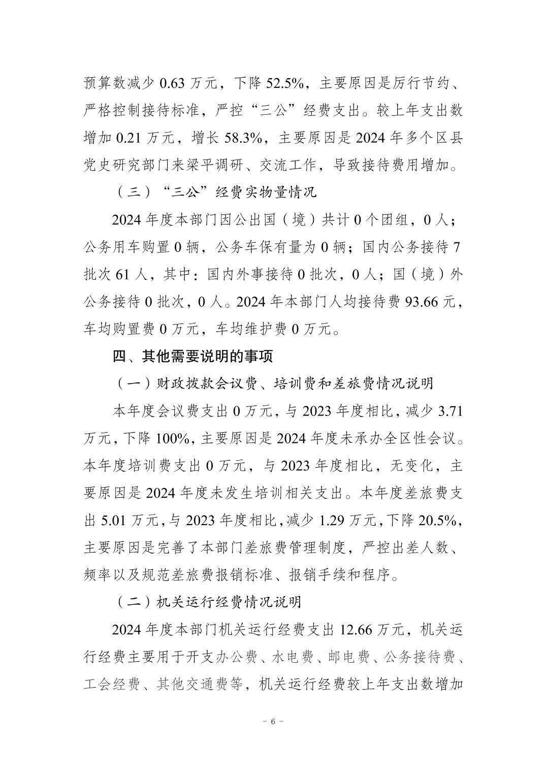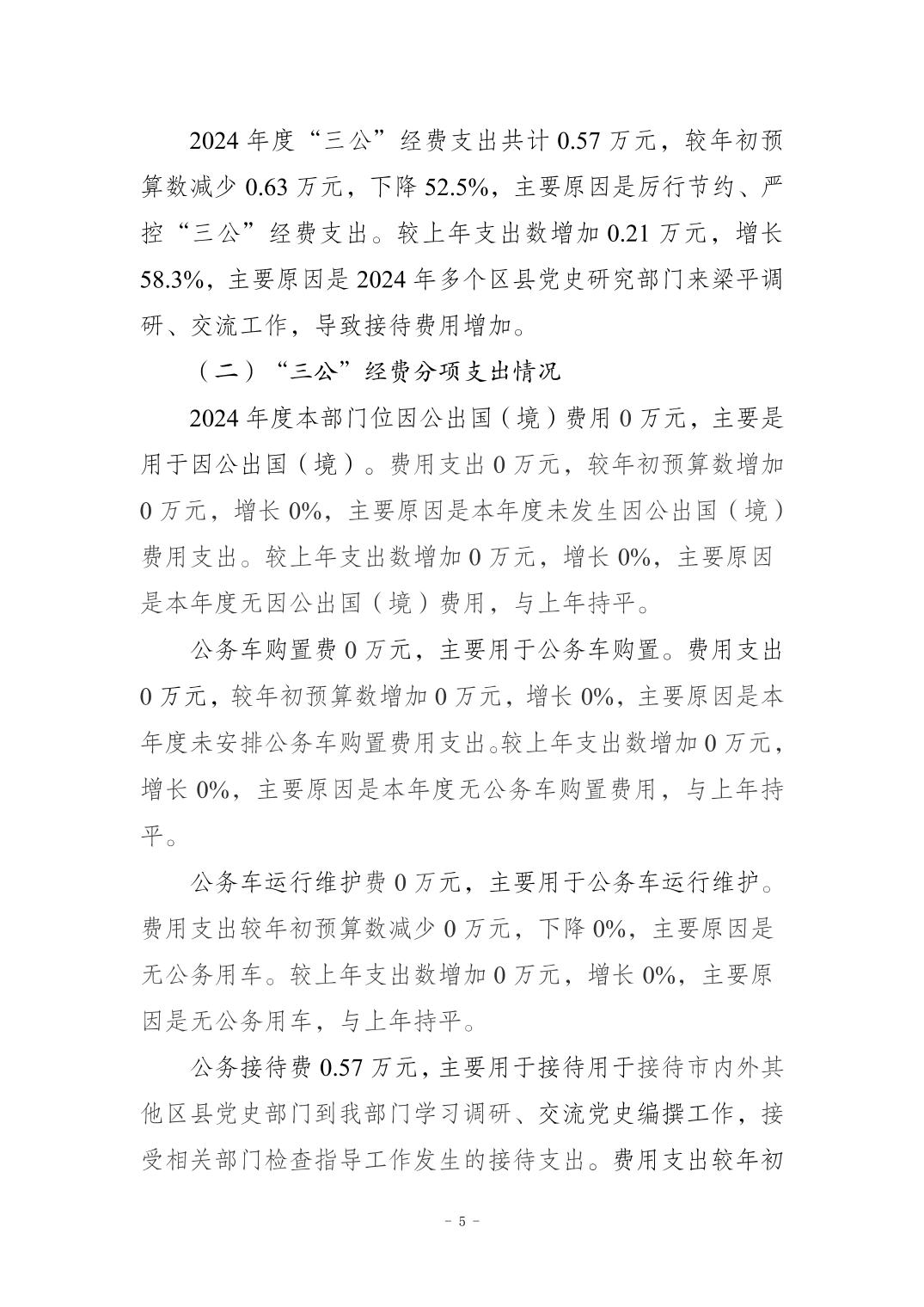 标题 | 中国共产党梁平区委员会党史研究室 2024 年度决算公开说明 | ||