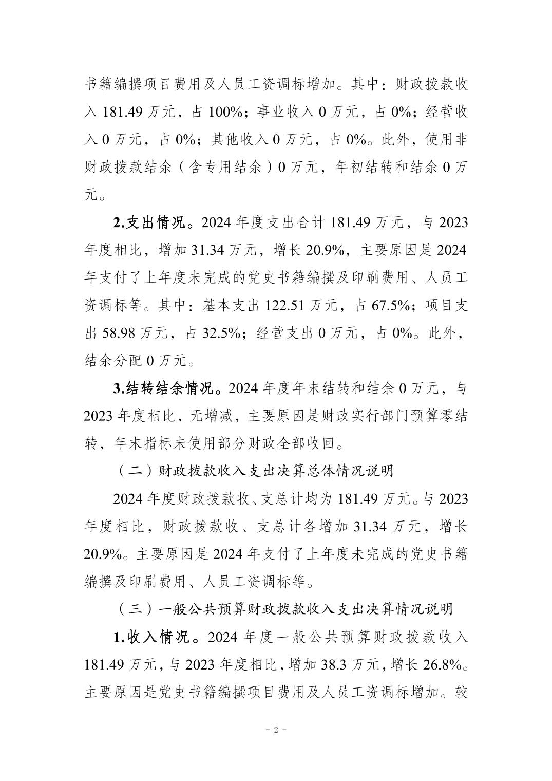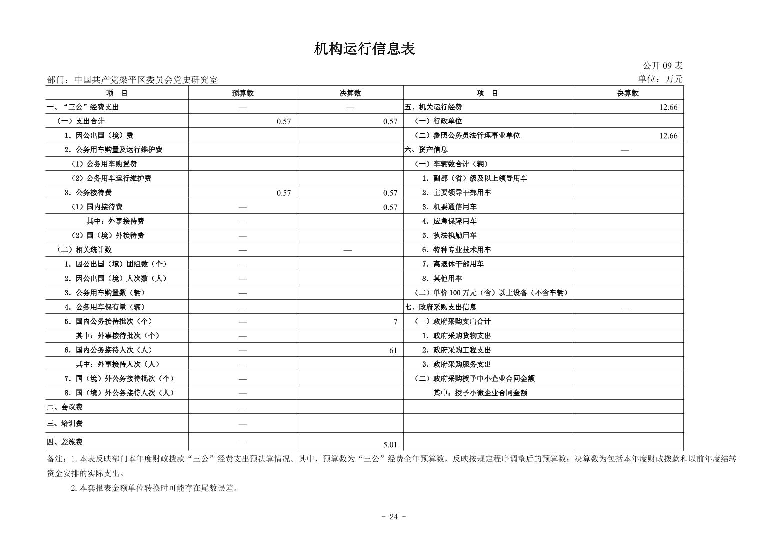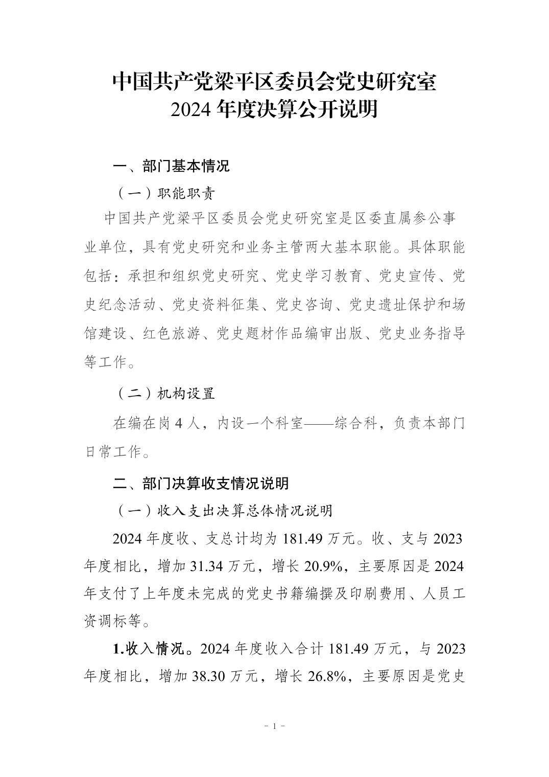 | 标题 | 中国共产党梁平区委员会党史研究室 2024 年度决算公开说明 |