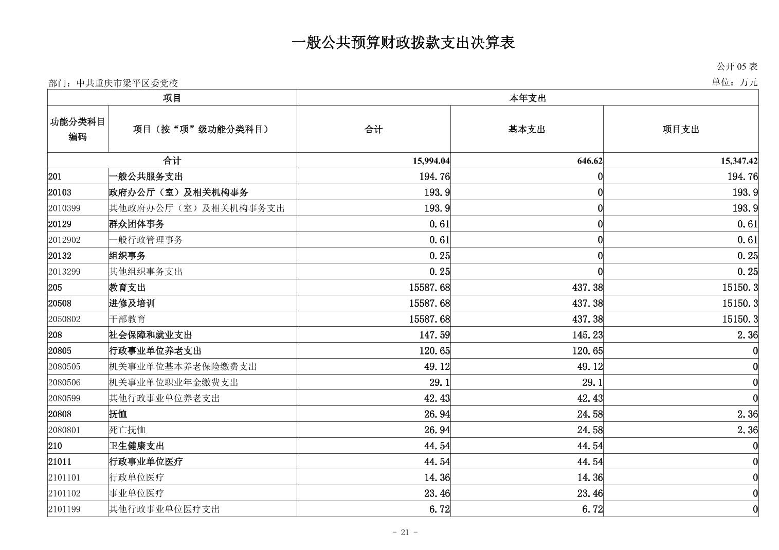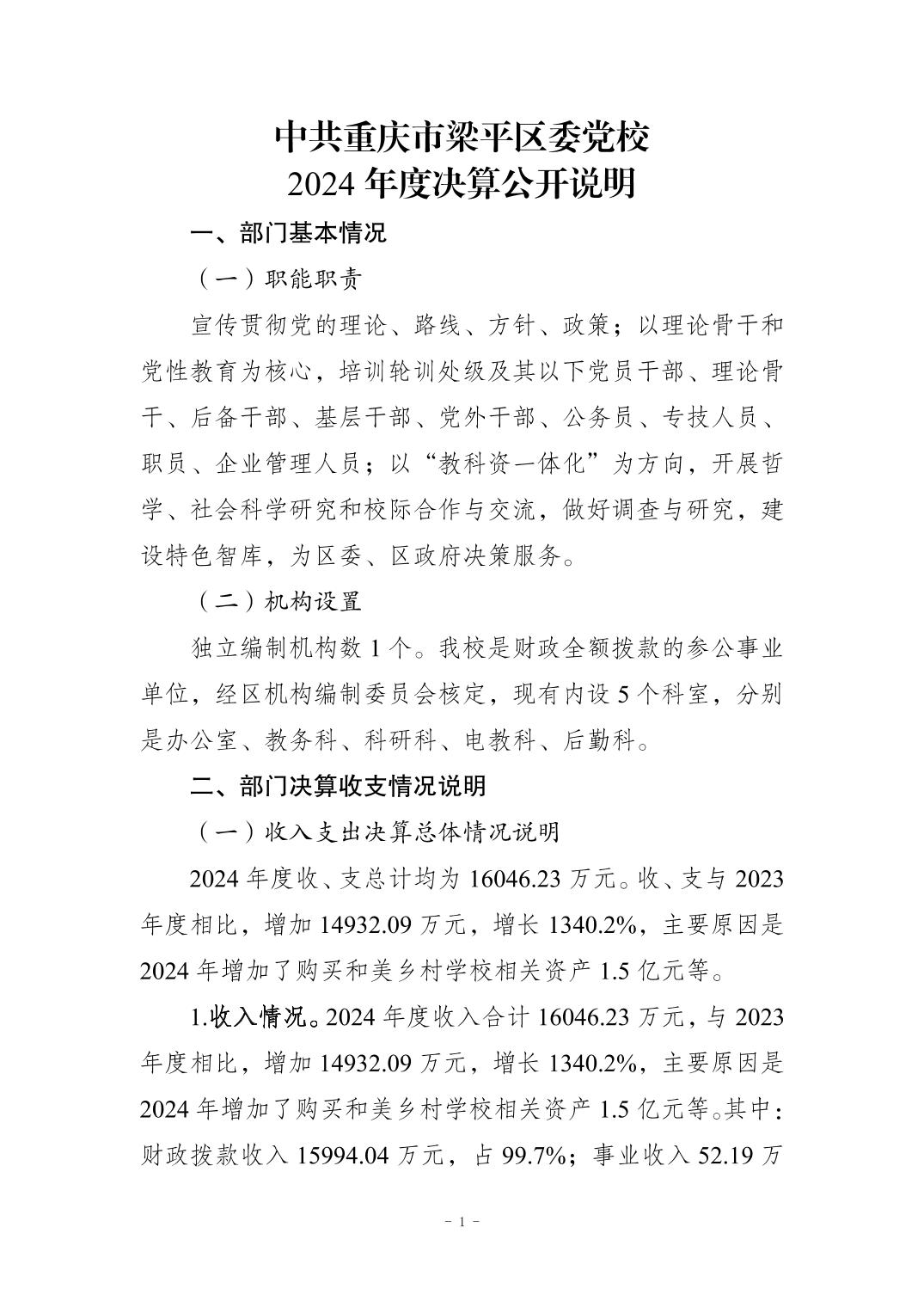 标题 | 中共重庆市梁平区委党校2024年度决算公开说明 |