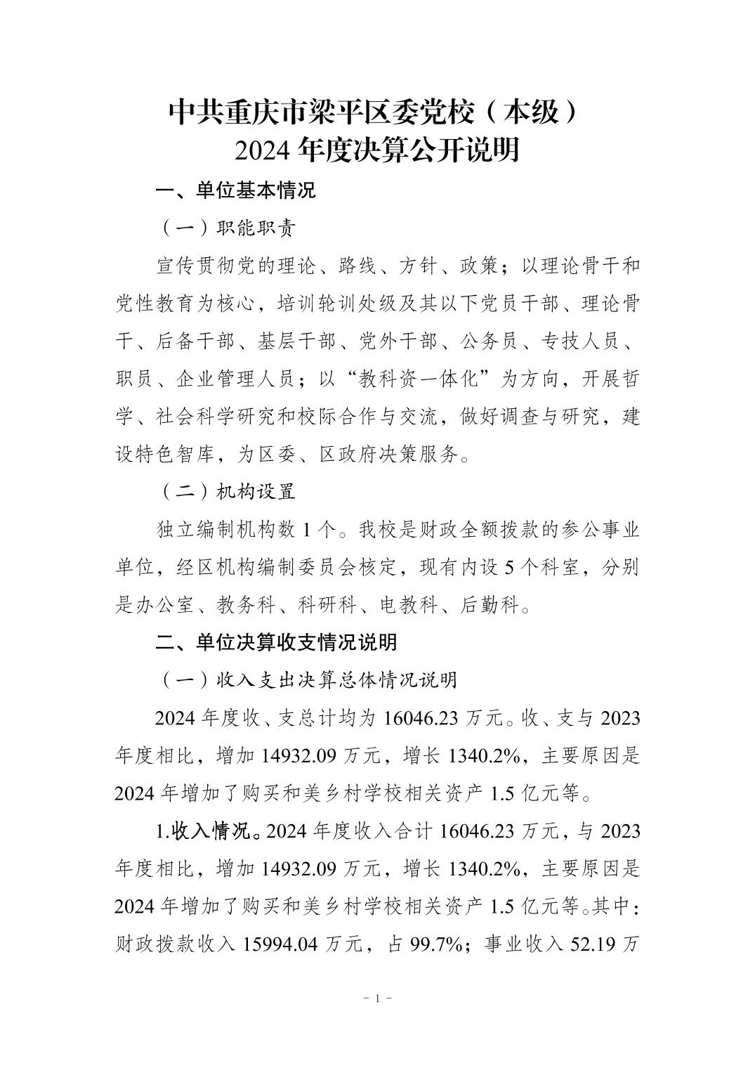 标题 | 中共重庆市梁平区委党校(本级)2024年度决算公开说明 | ||