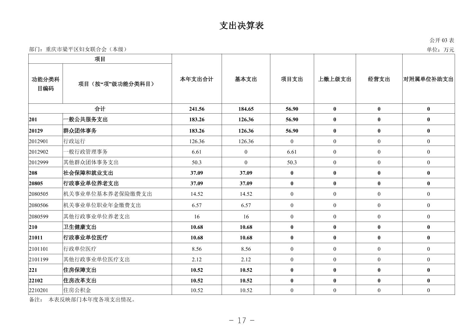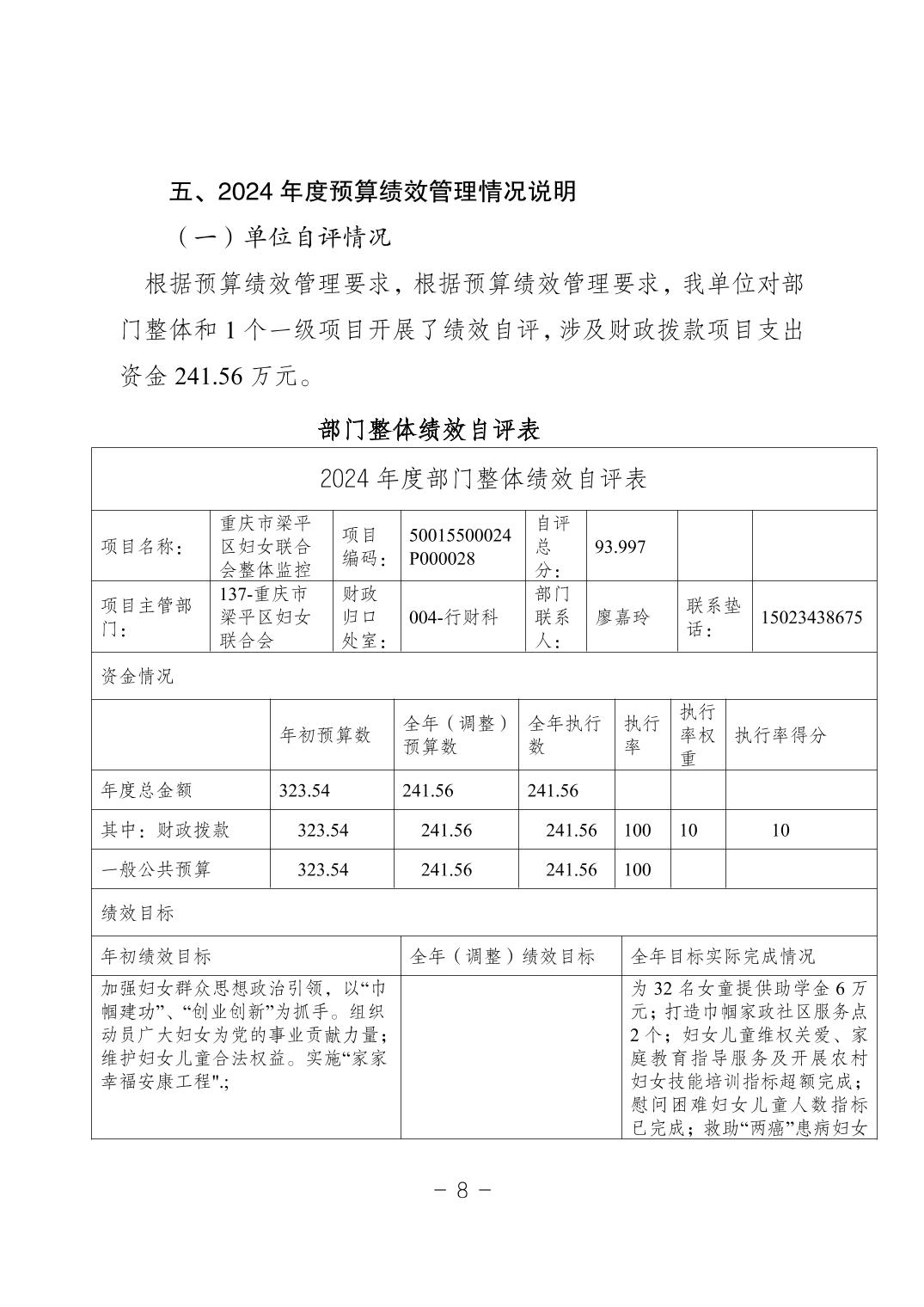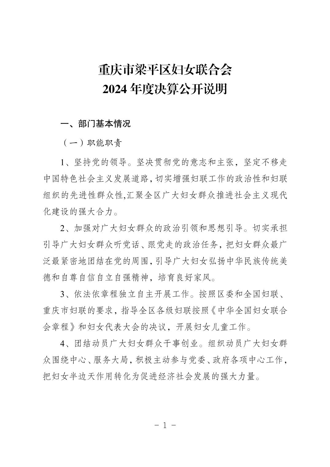 标题 | 重庆市梁平区妇女联合会 2024 年度决算公开说明 |