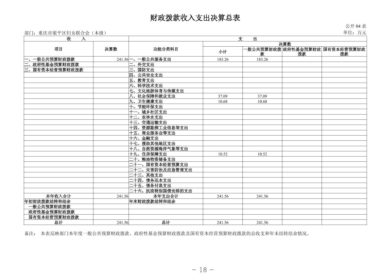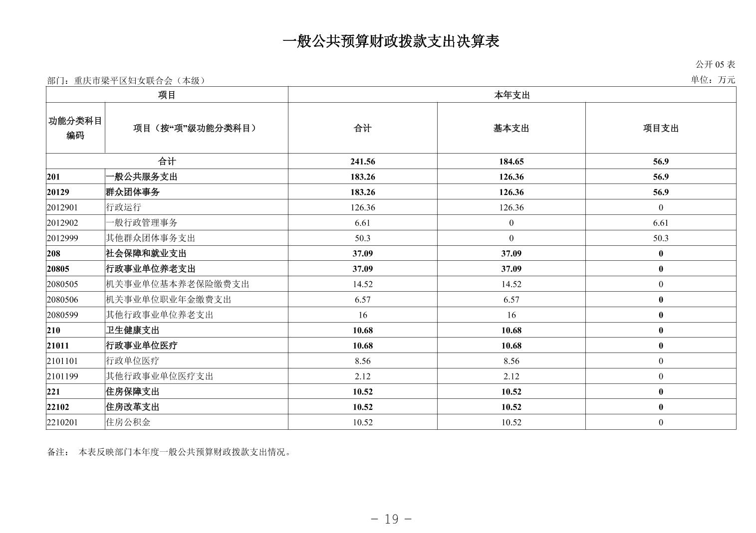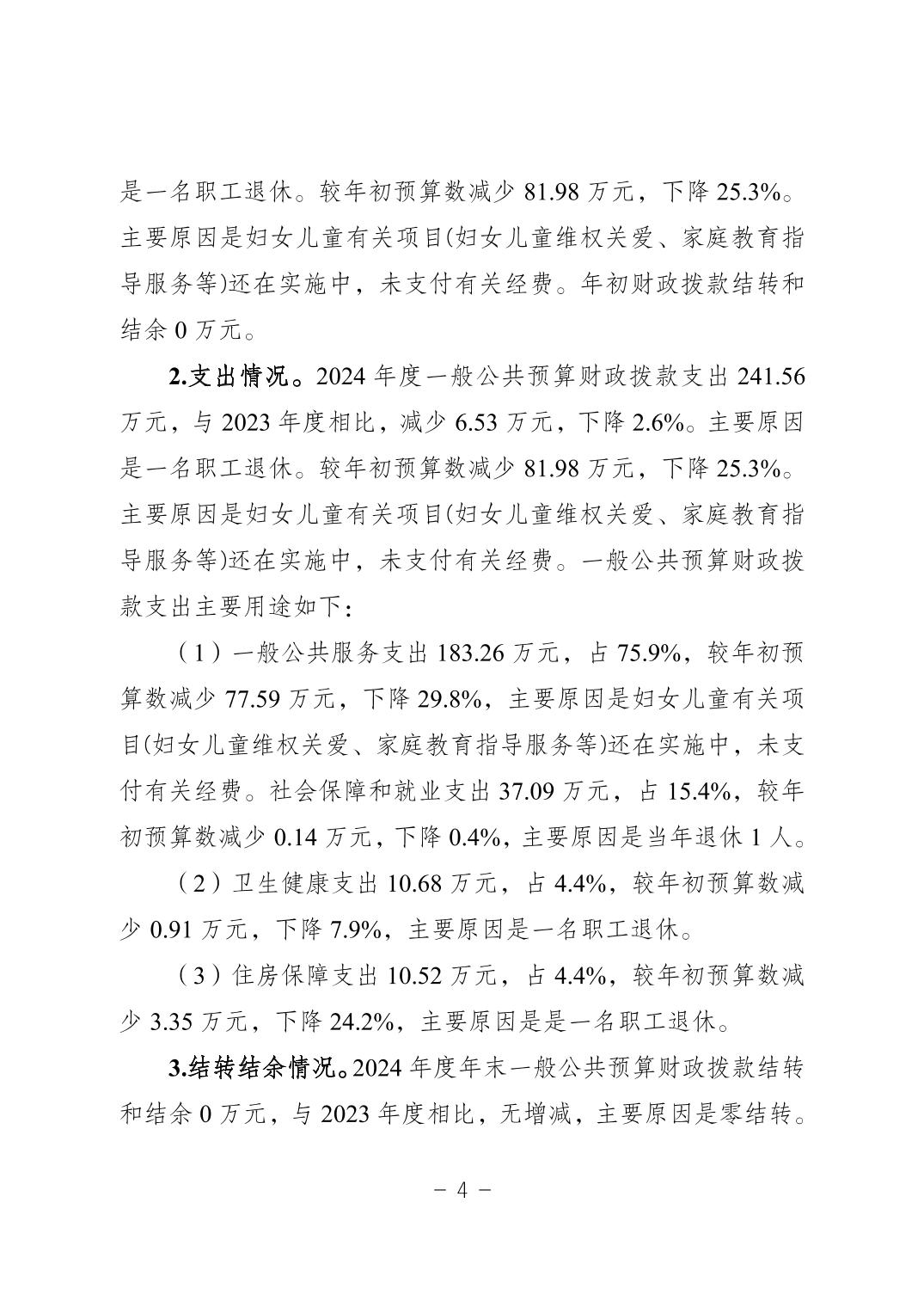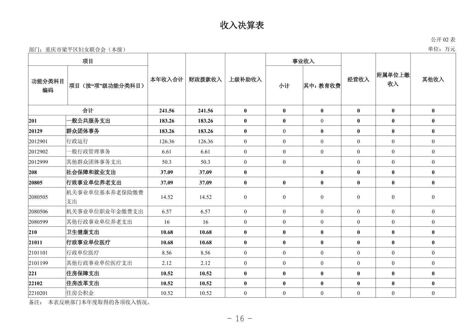 标题 | 重庆市梁平区妇女联合会 2024 年度决算公开说明 |