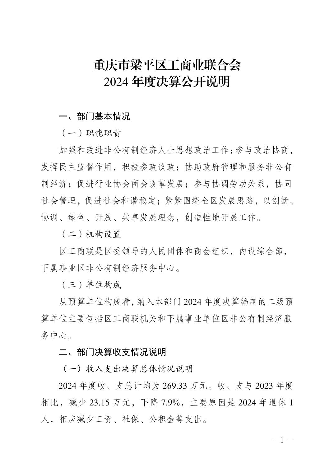 标题 | 重庆市梁平区工商业联合会 2024 年度决算公开说明 |