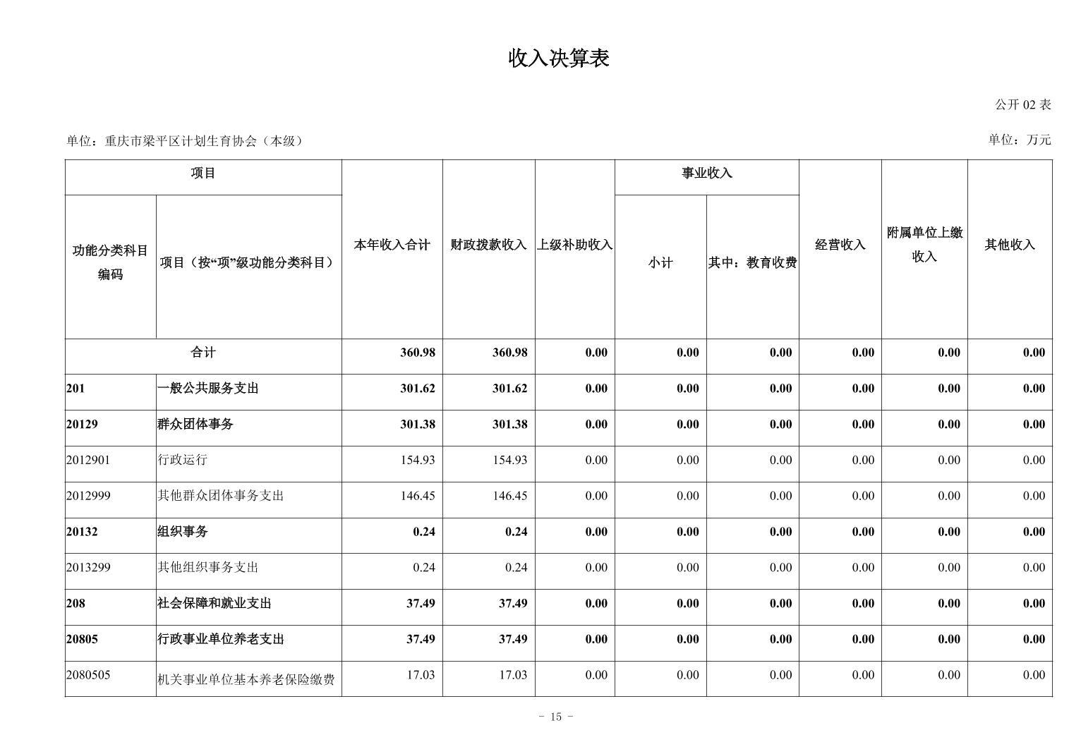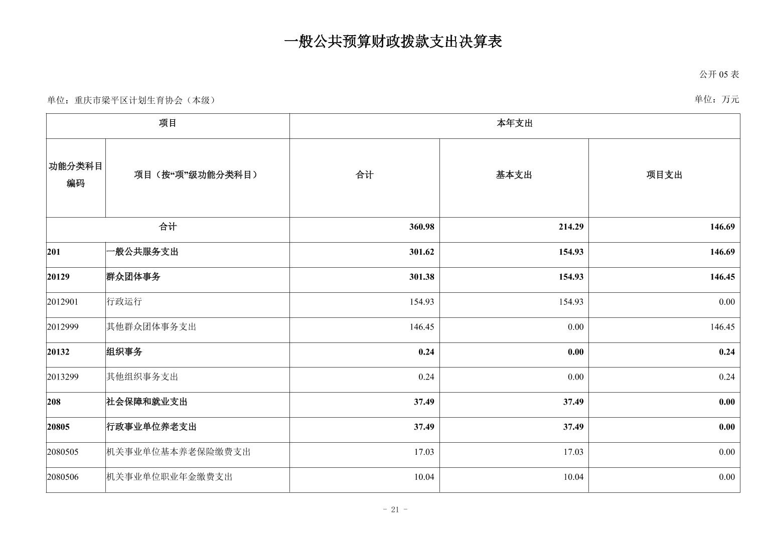 标题 | 重庆市梁平区计划生育协会(本级)2024年度决算公开说明 |