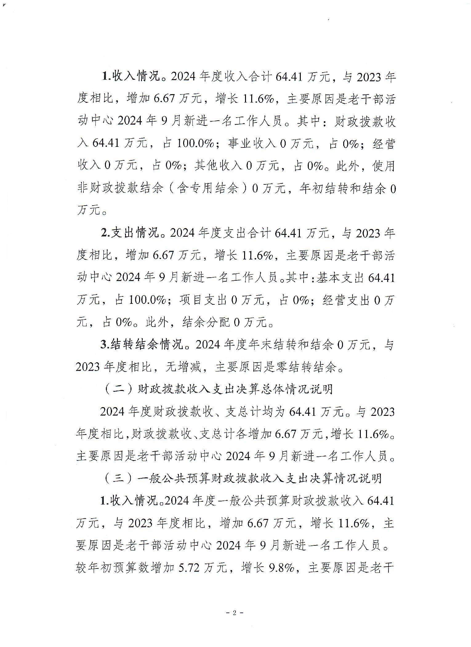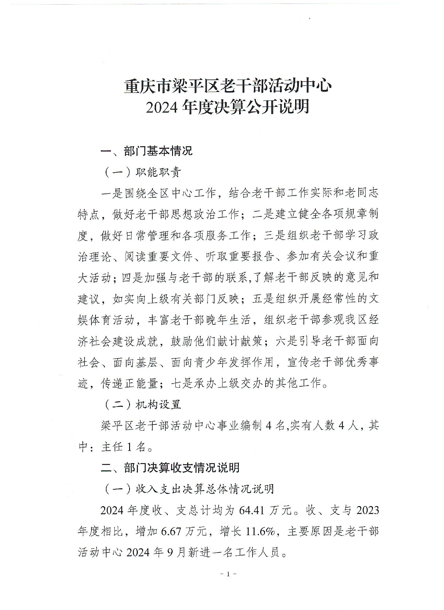 标题 | 重庆市梁平区老干部活动中心2024年度决算公开说明 |