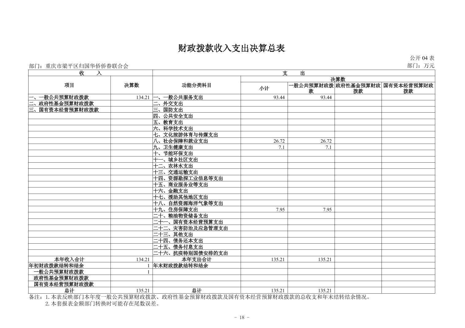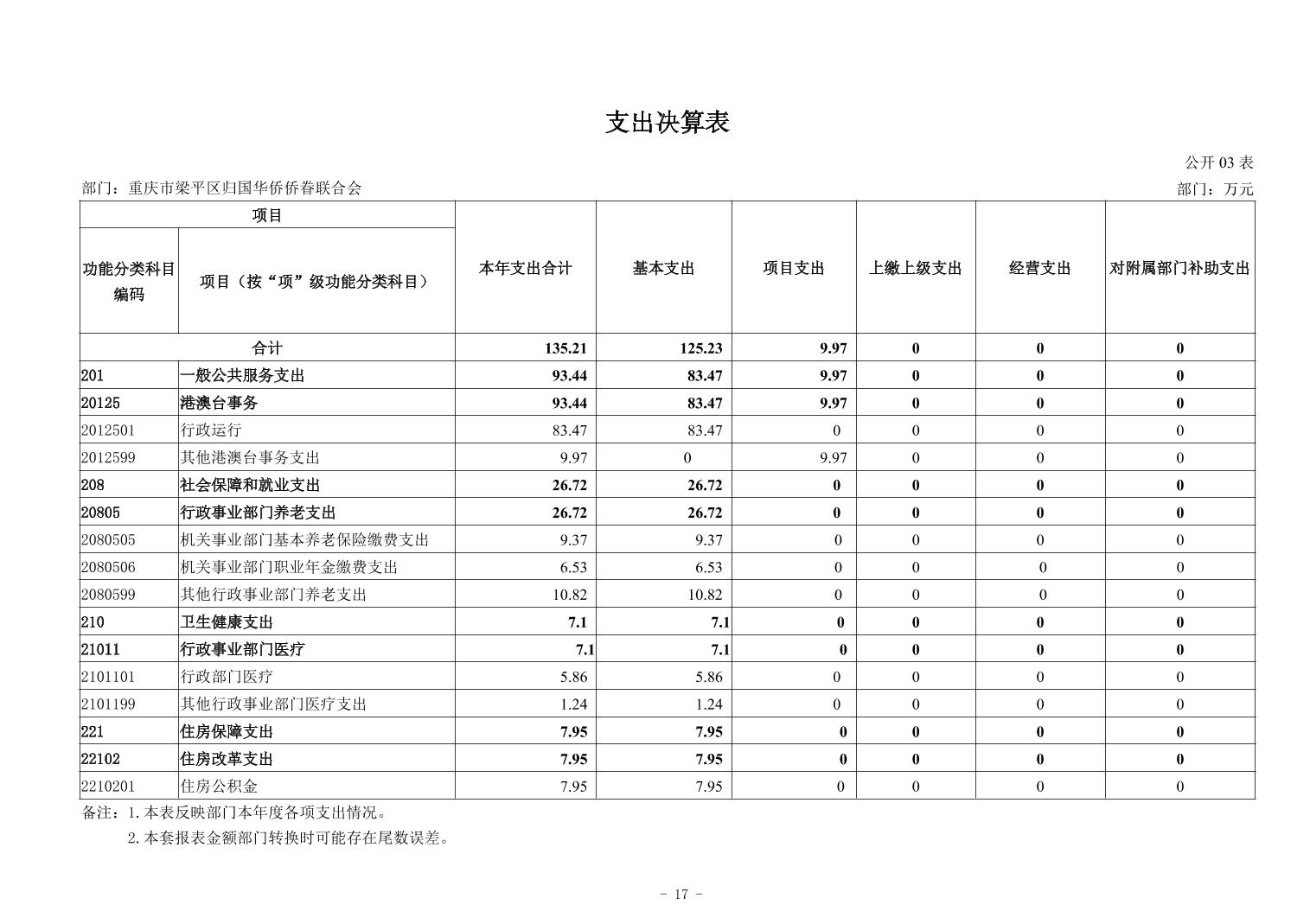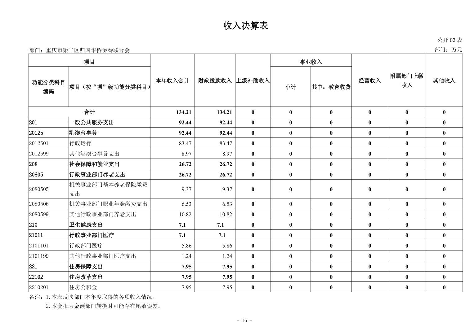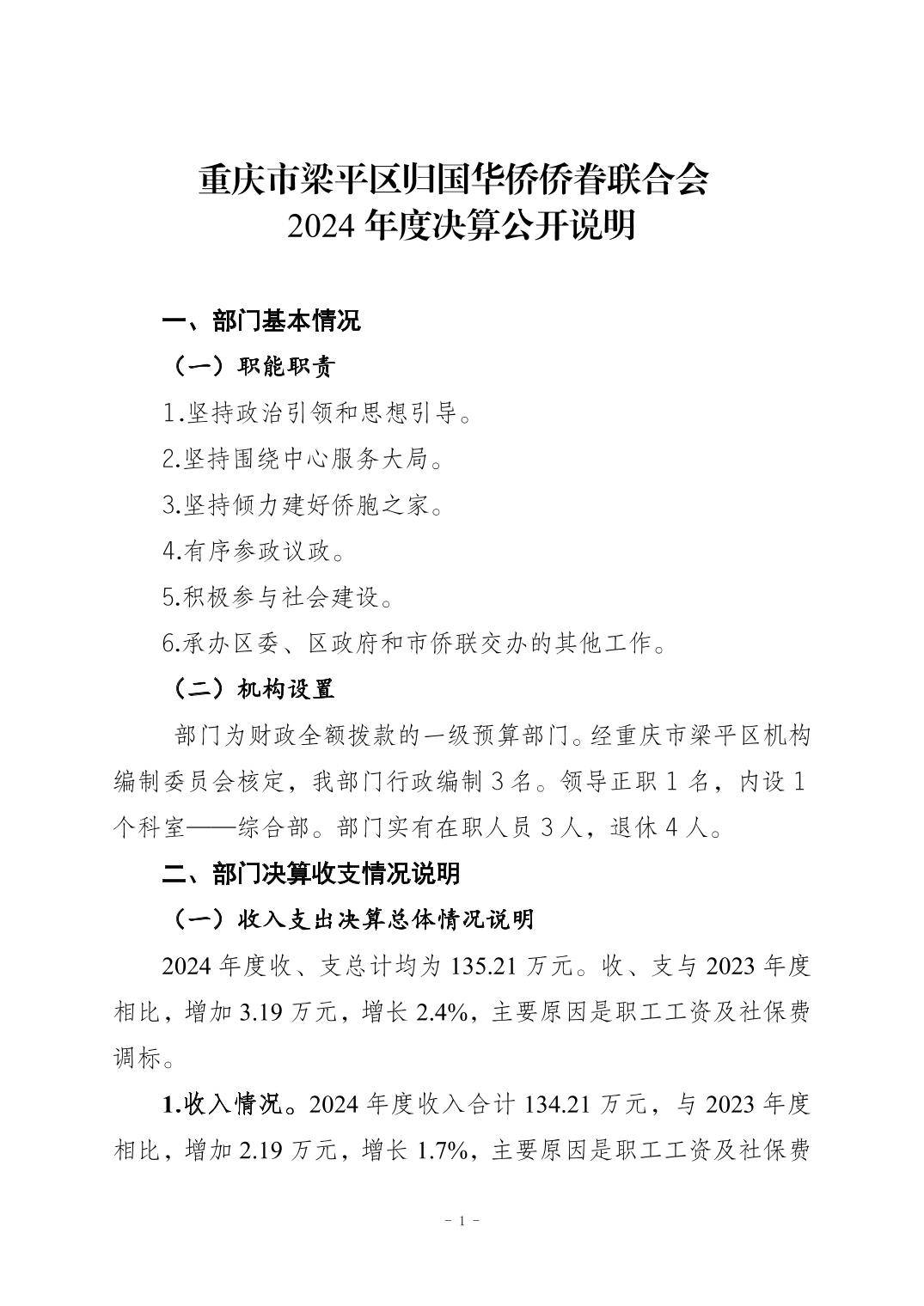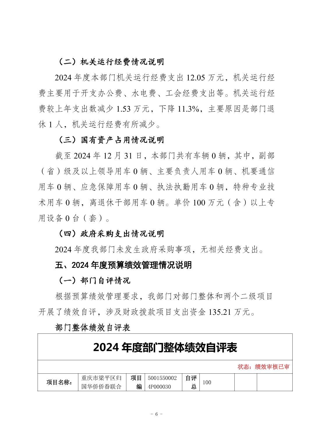 标题 | 重庆市梁平区归国华侨侨眷联合会 2024 年度决算公开说明 |