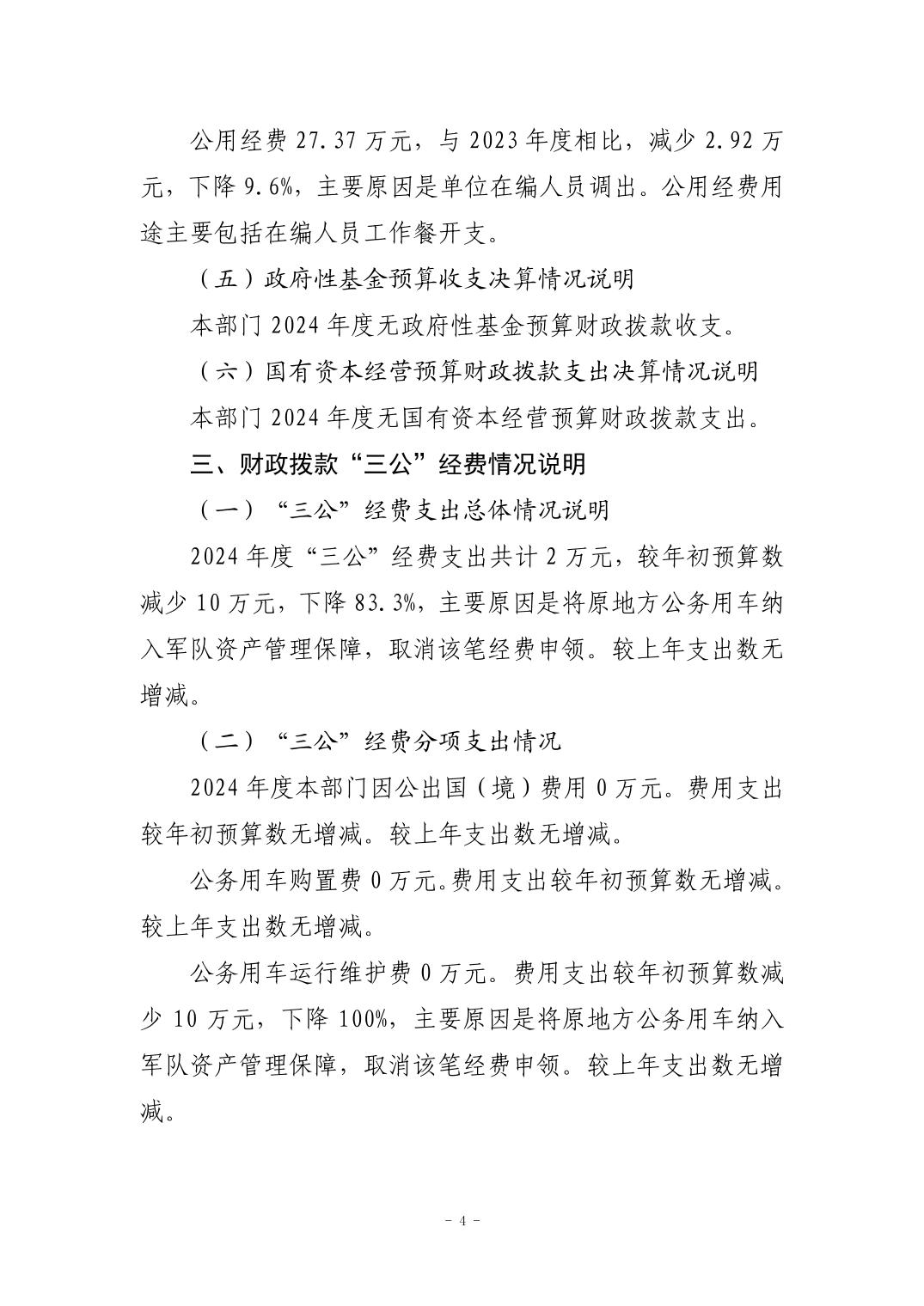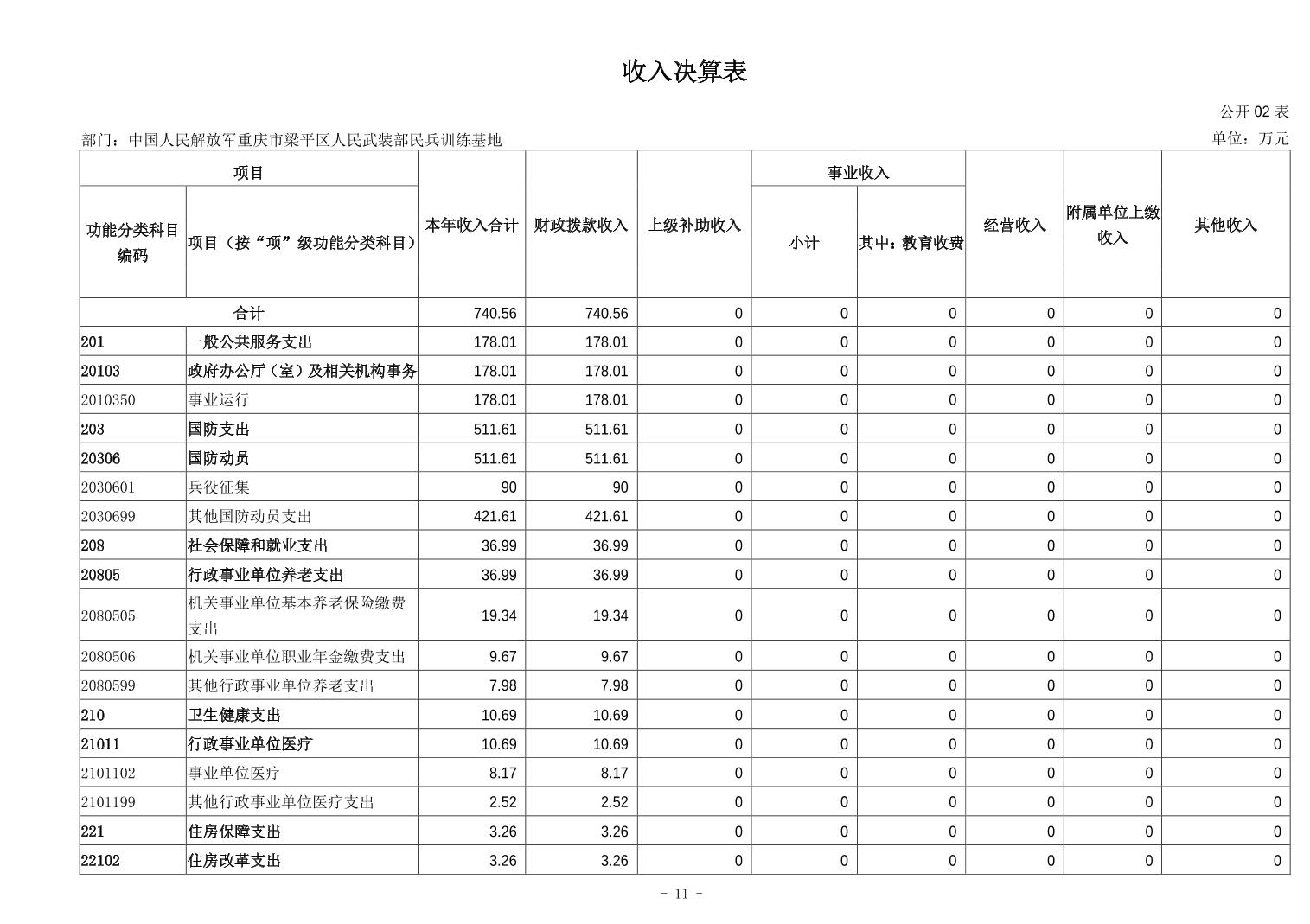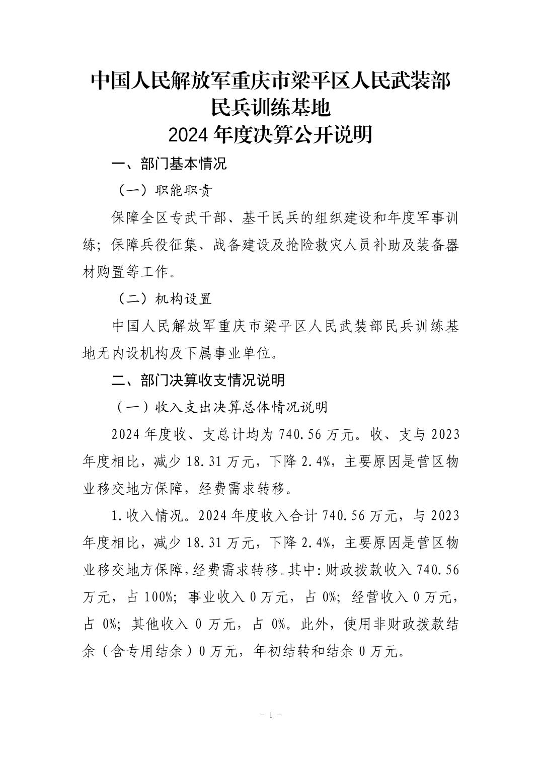 标题 | 中国人民解放军重庆市梁平区人民武装部 民兵训练基地 2024 年度决算公开说明 |