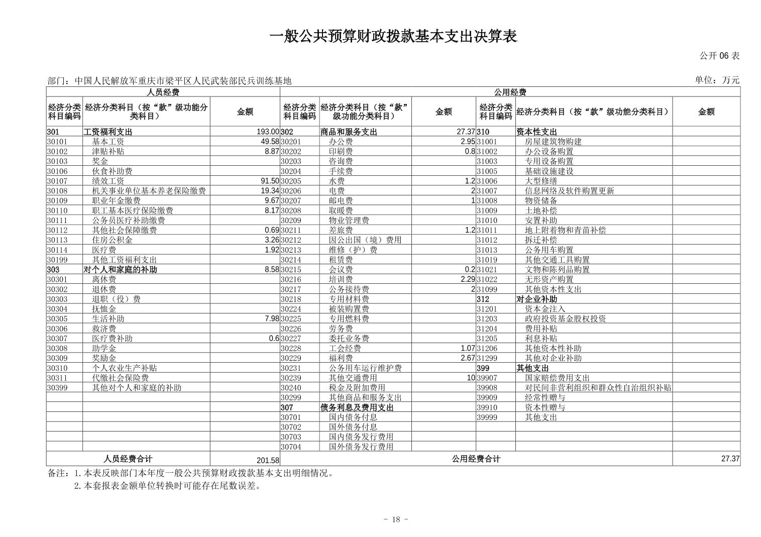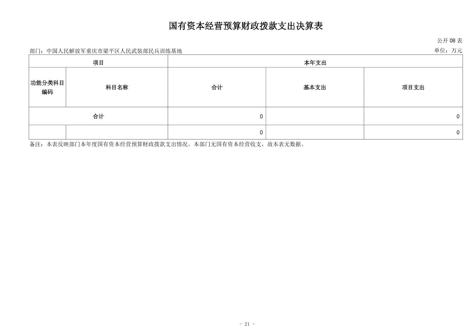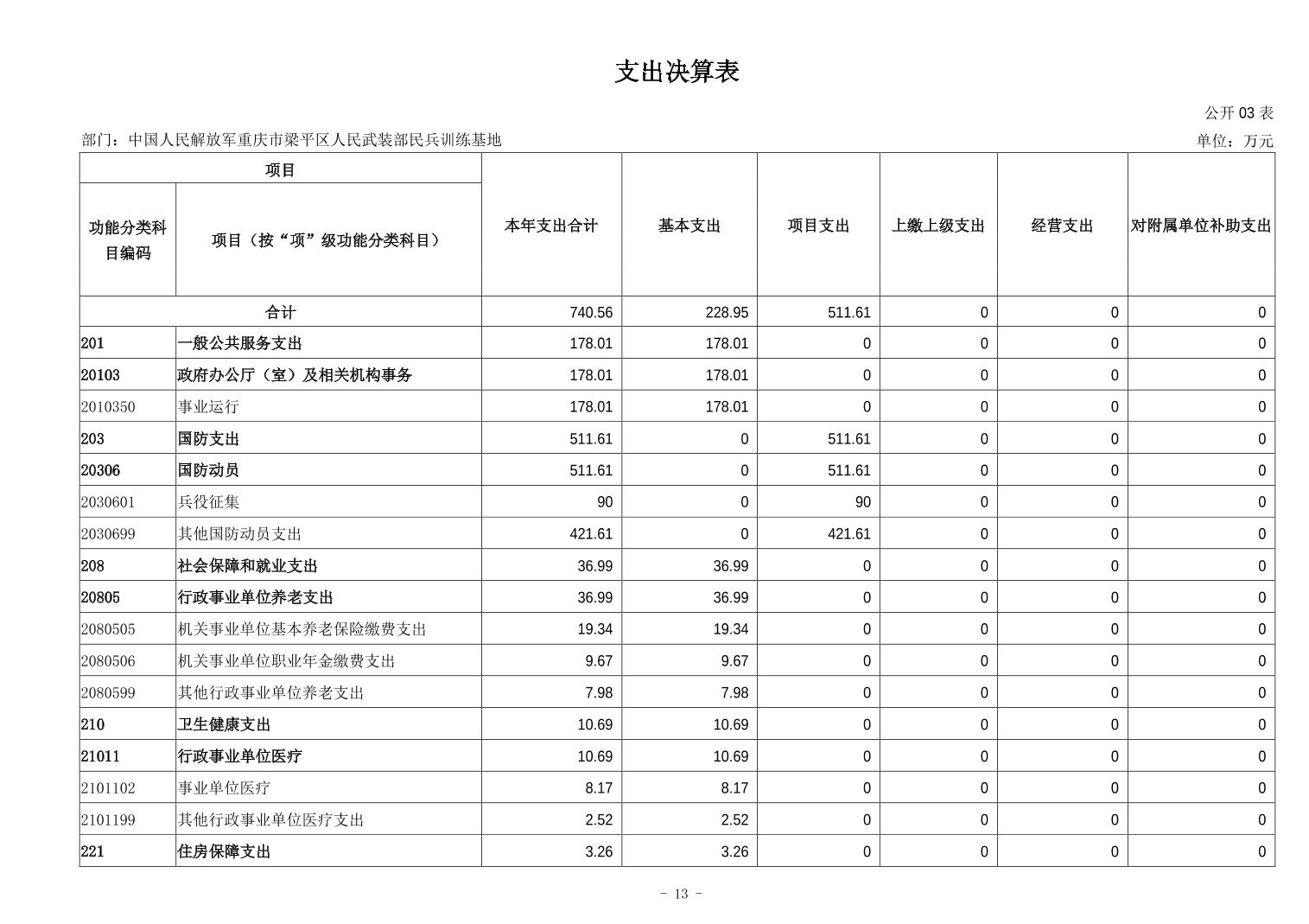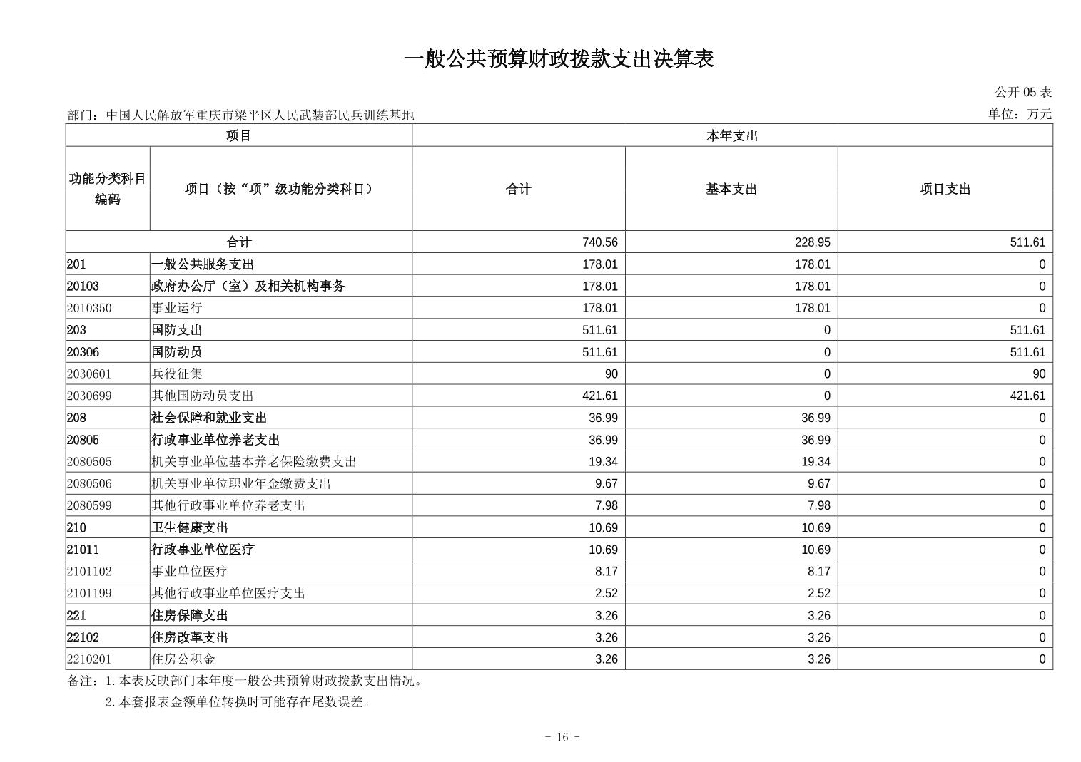 标题 | 中国人民解放军重庆市梁平区人民武装部 民兵训练基地 2024 年度决算公开说明 | ||