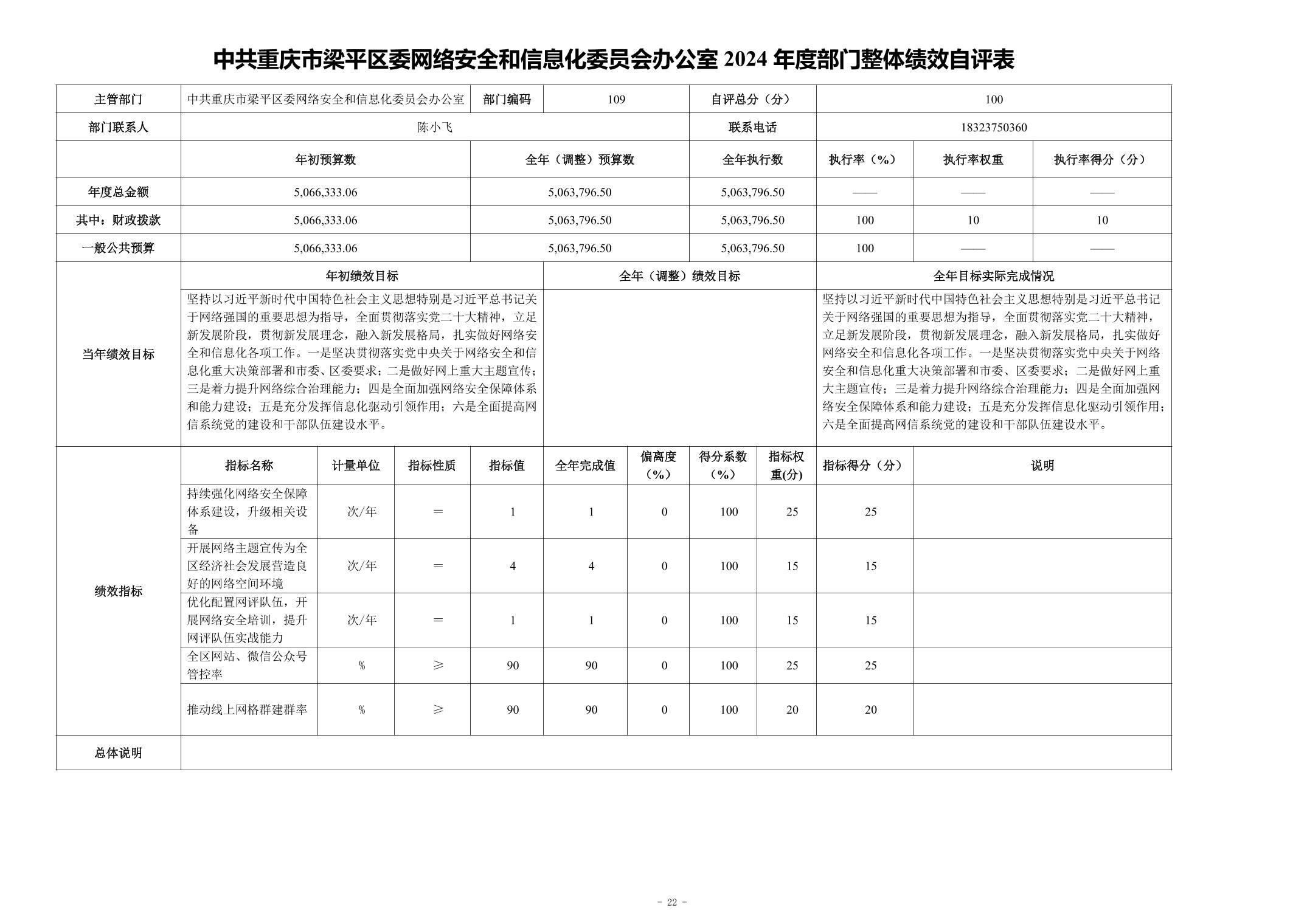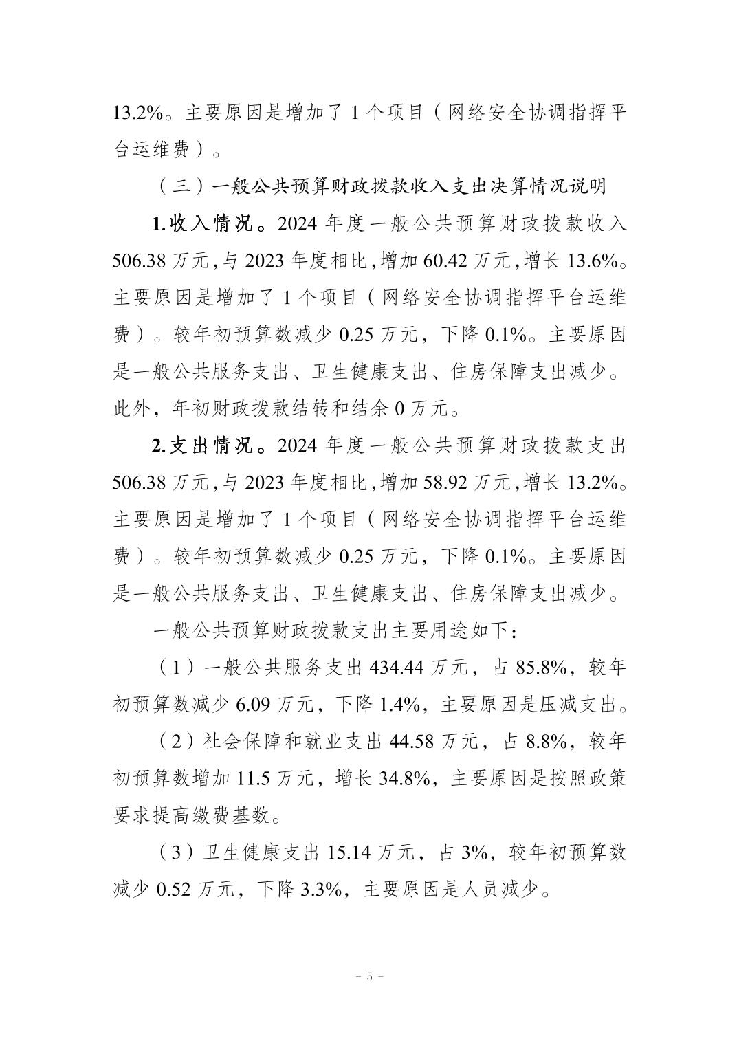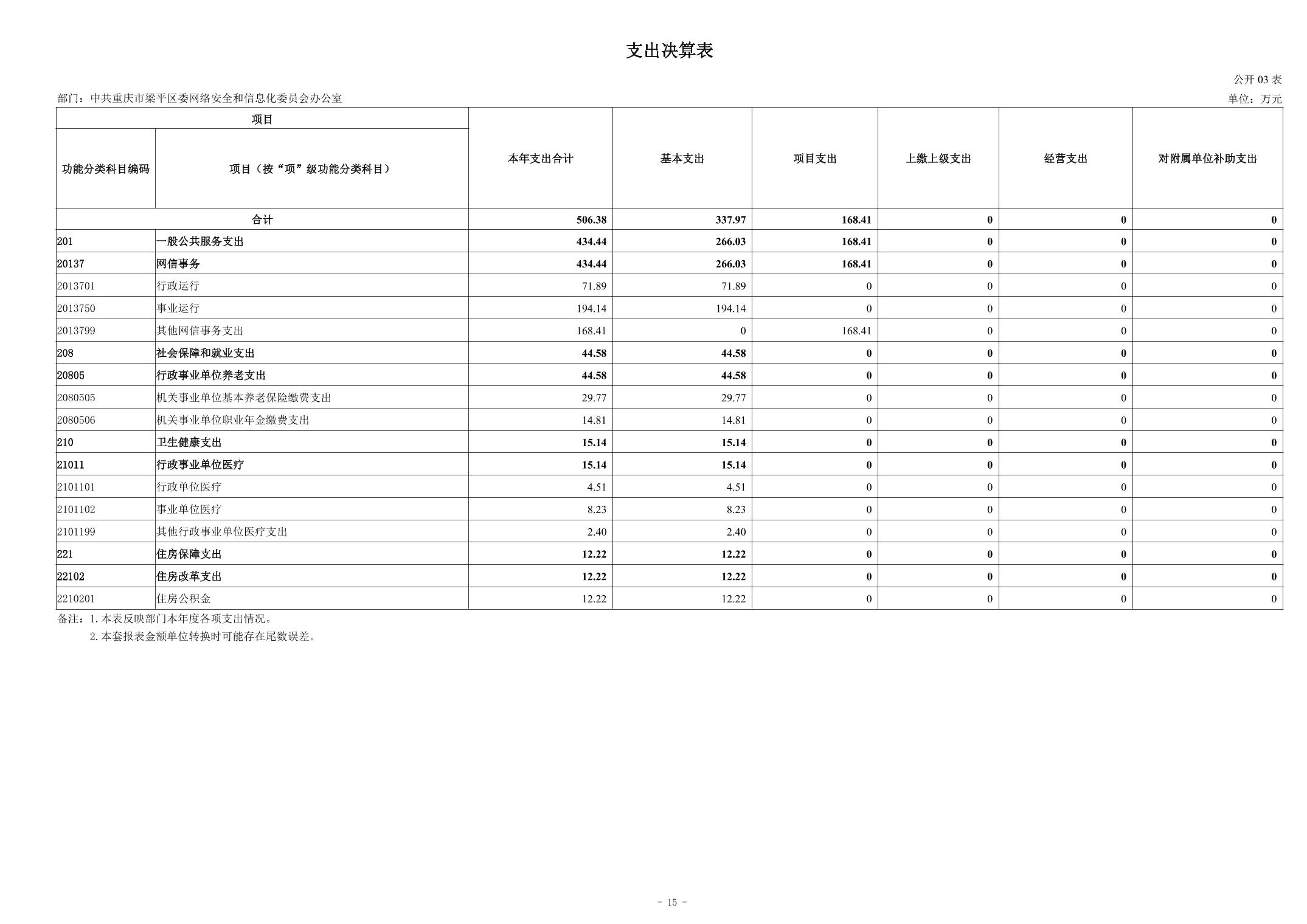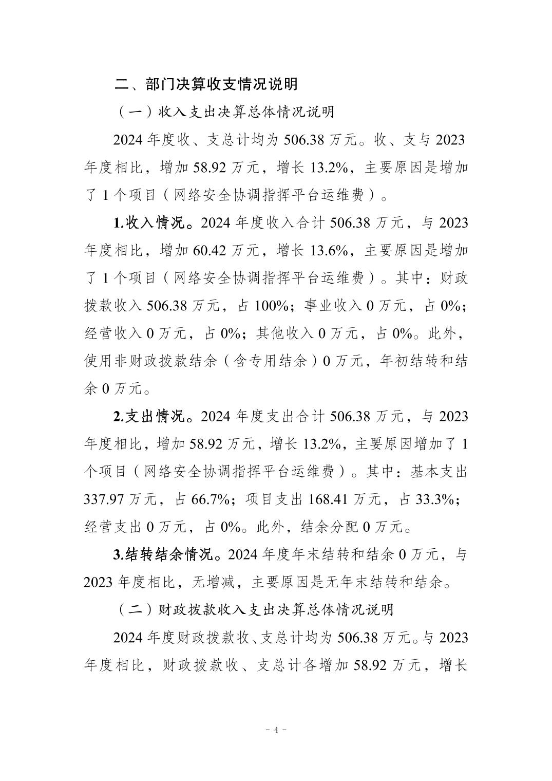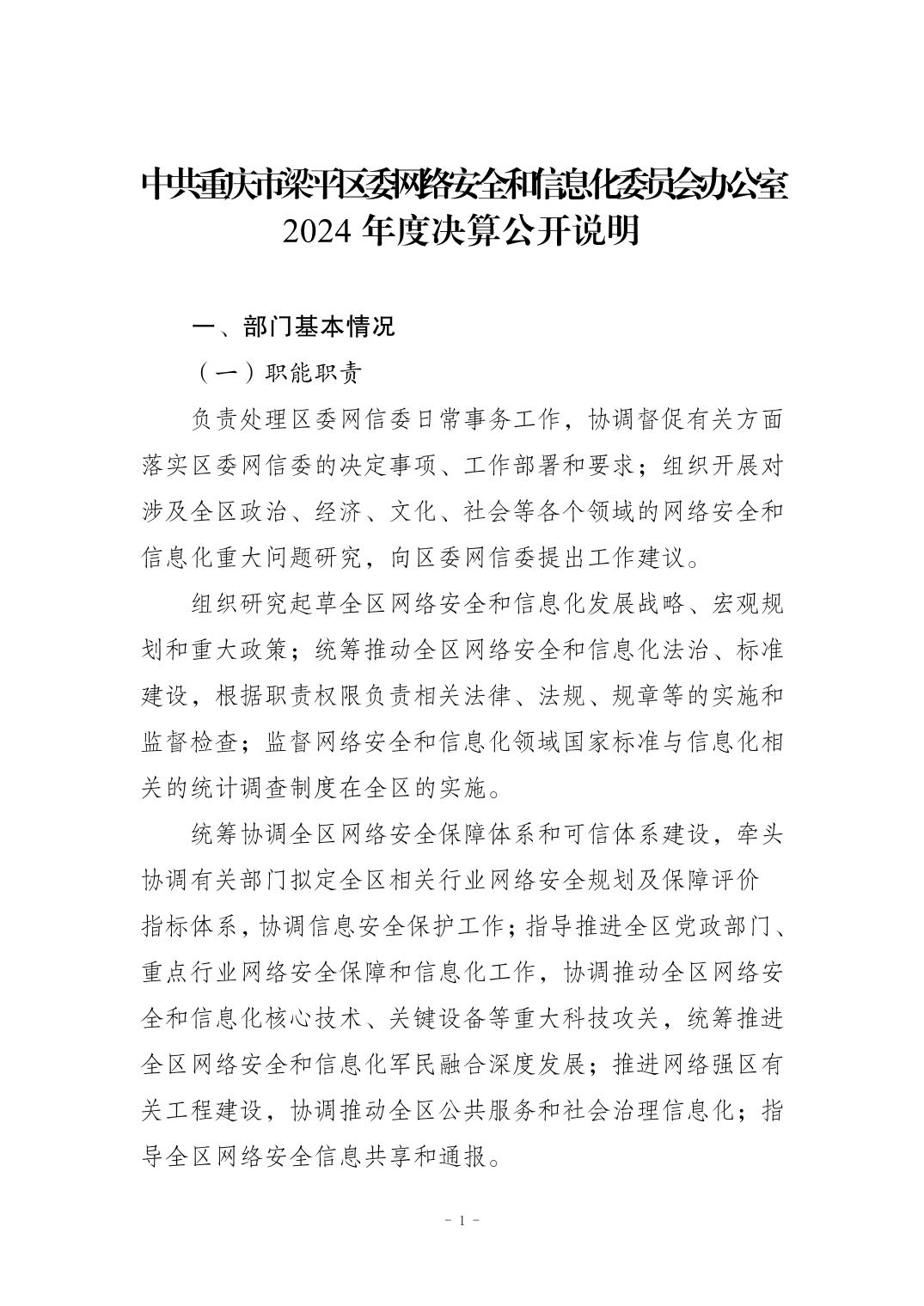 标题 | 中共重庆市梁平区委网络安全和信息化委员会办公室 2024 年度决算公开说明 |