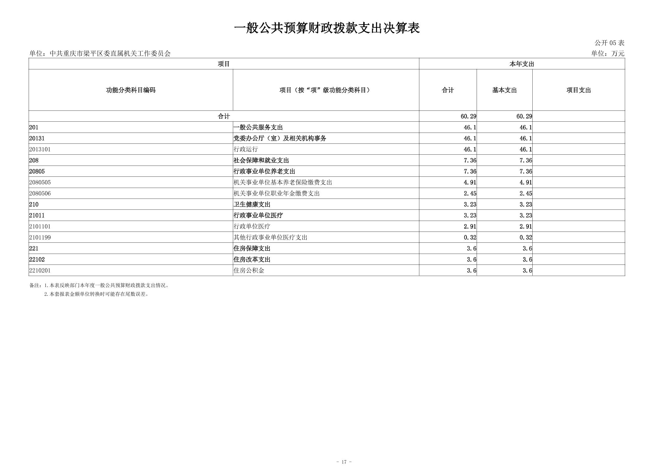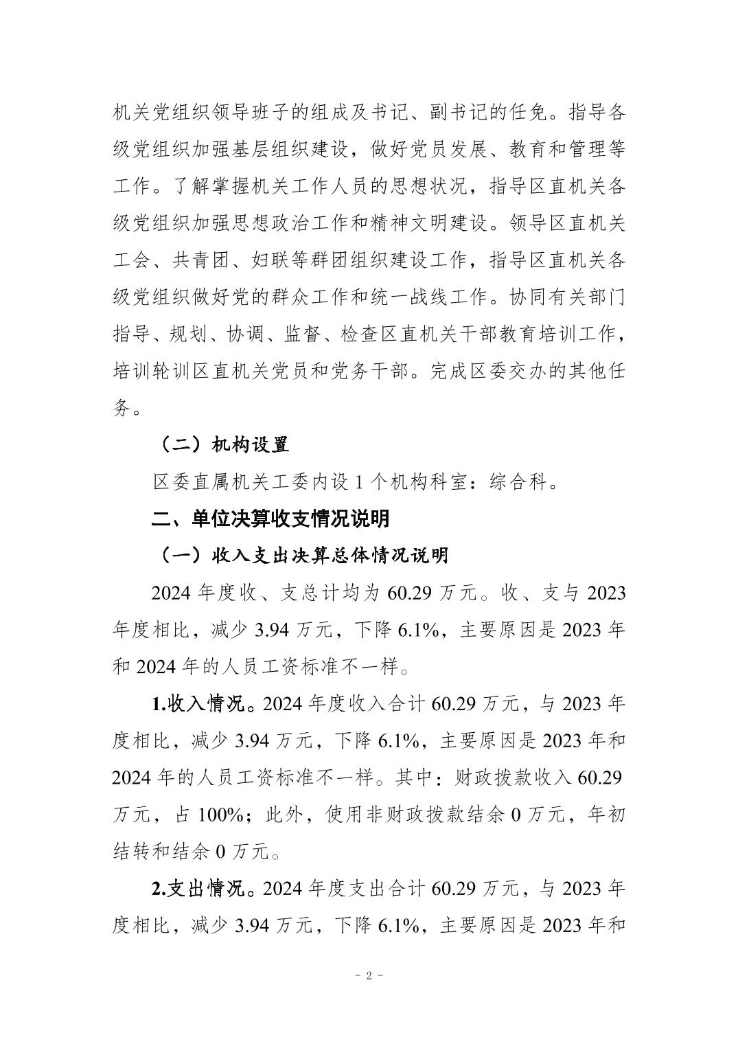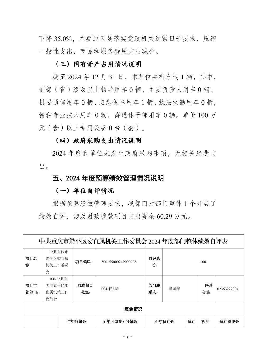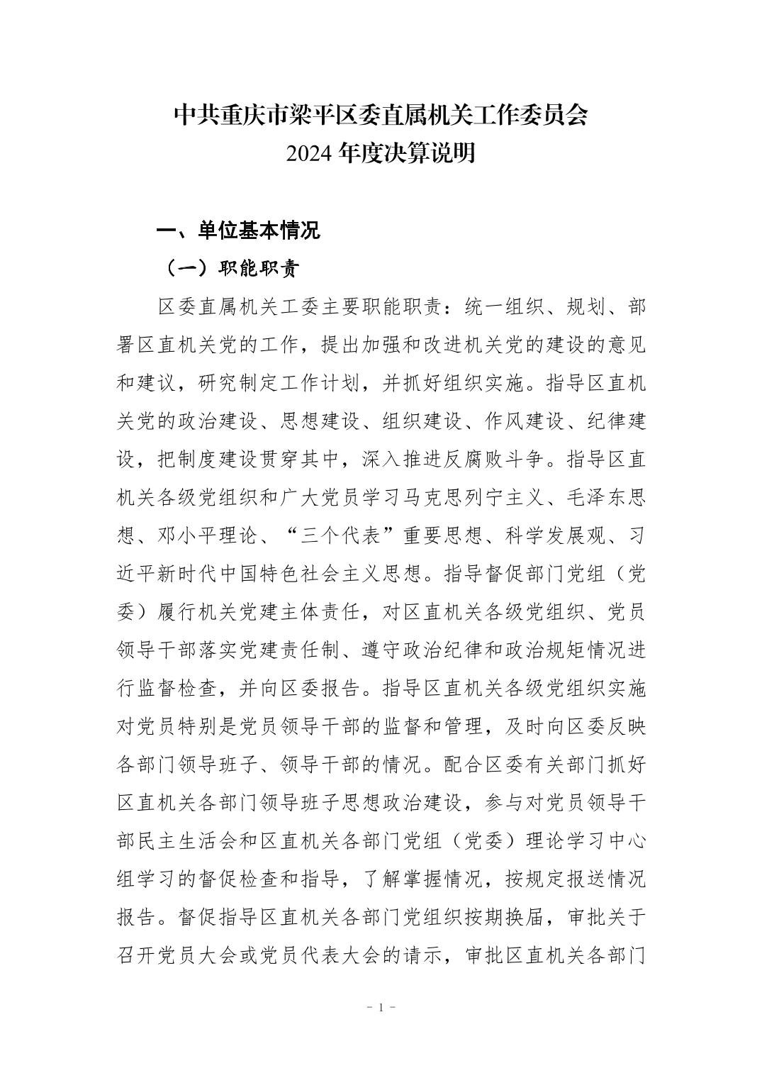 标题 | 中共重庆市梁平区委直属机关工作委员会 2024 年度决算说明 | ||