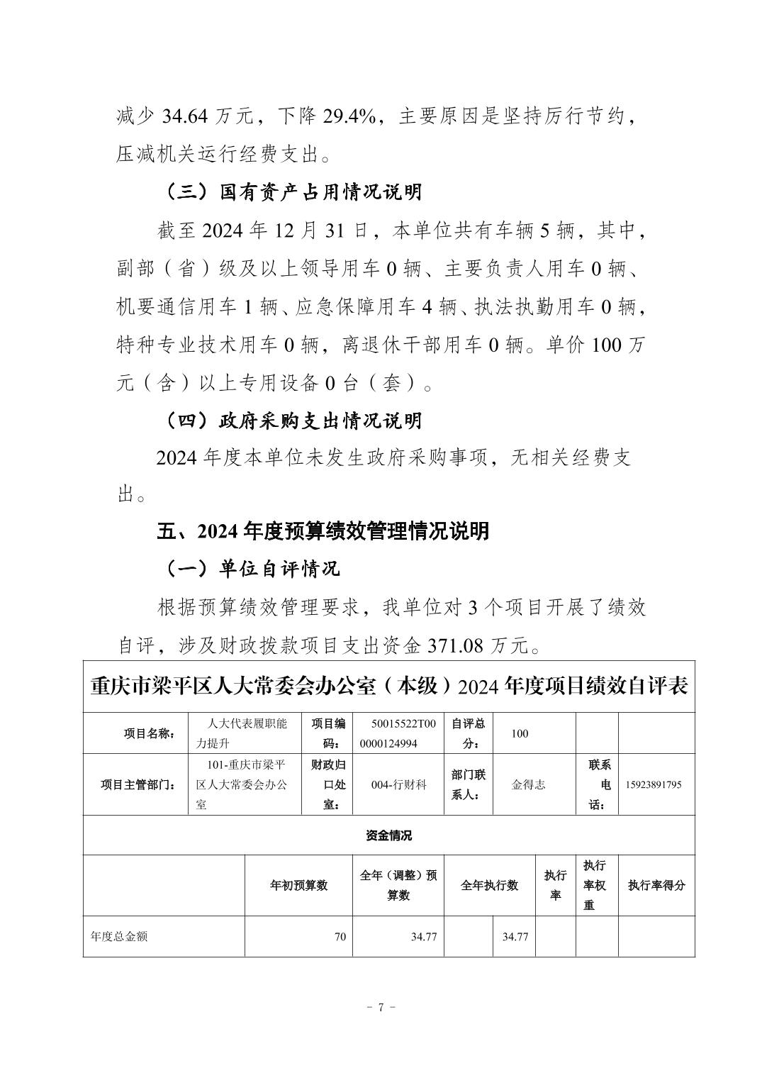 标题 | 重庆市梁平区人大常委会办公室(本级) 2024 年度决算说明 | ||