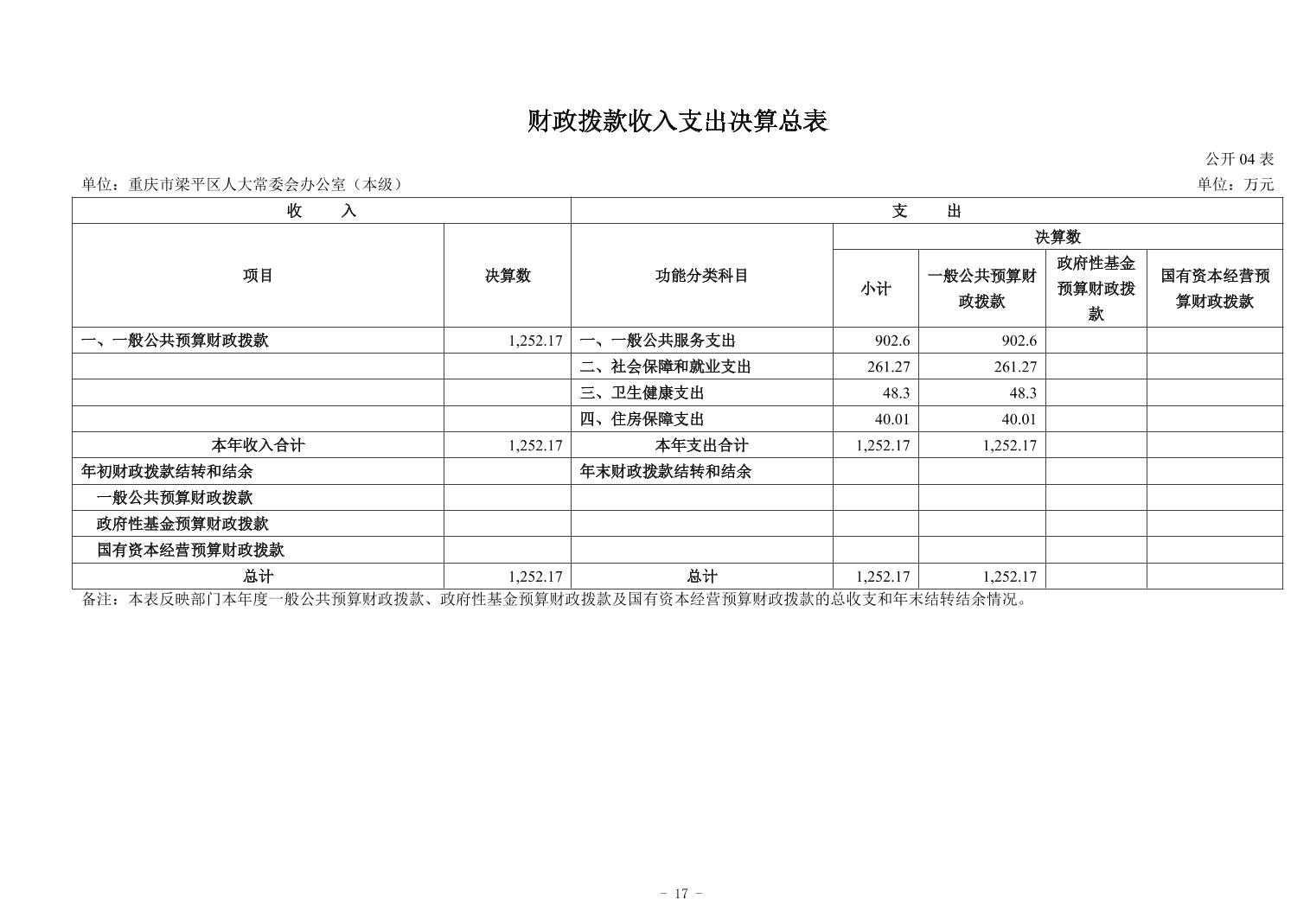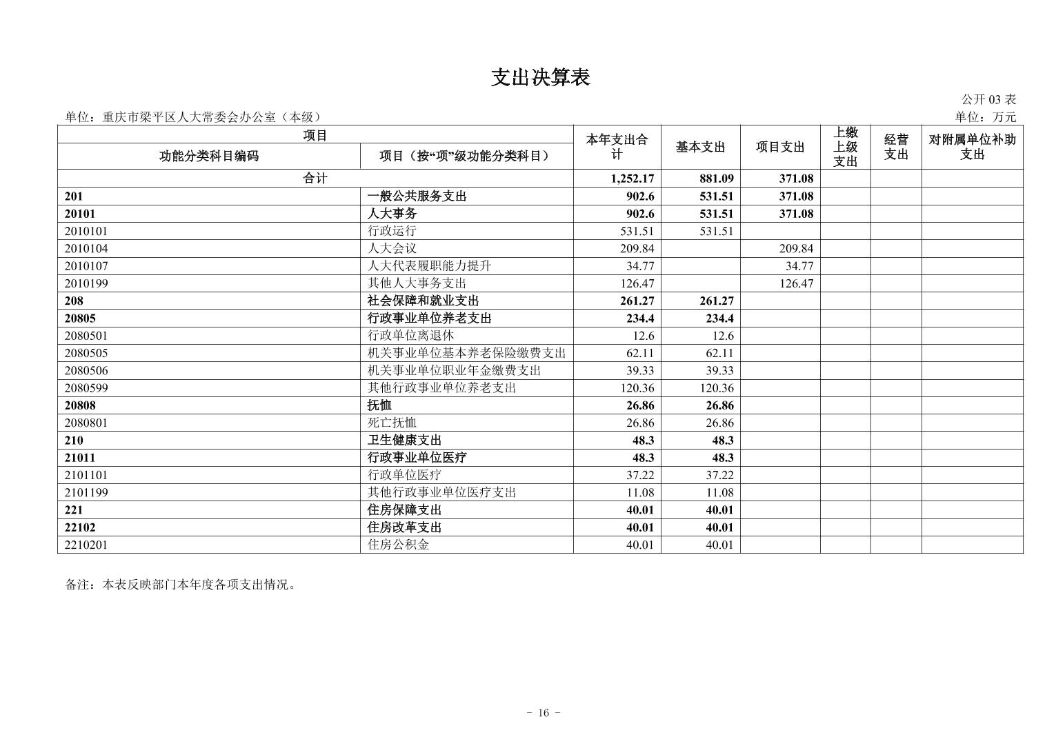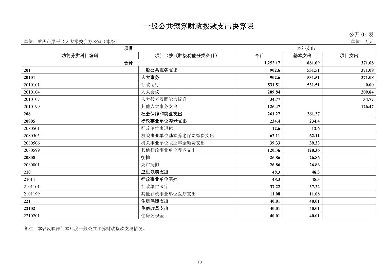 标题 | 重庆市梁平区人大常委会办公室(本级) 2024 年度决算说明 |