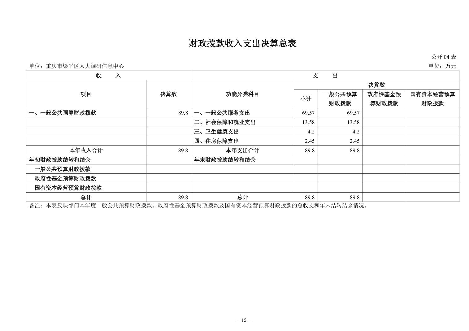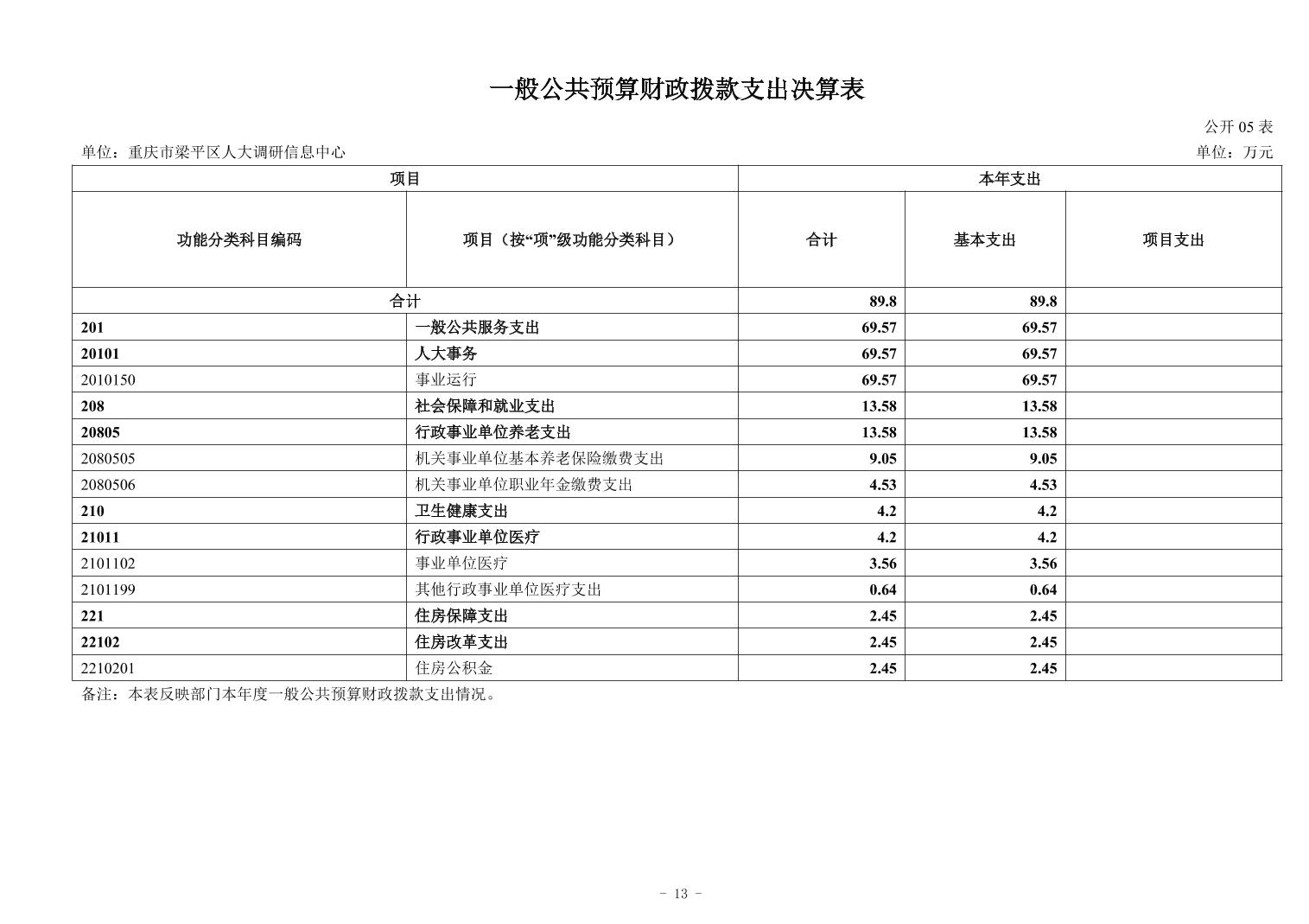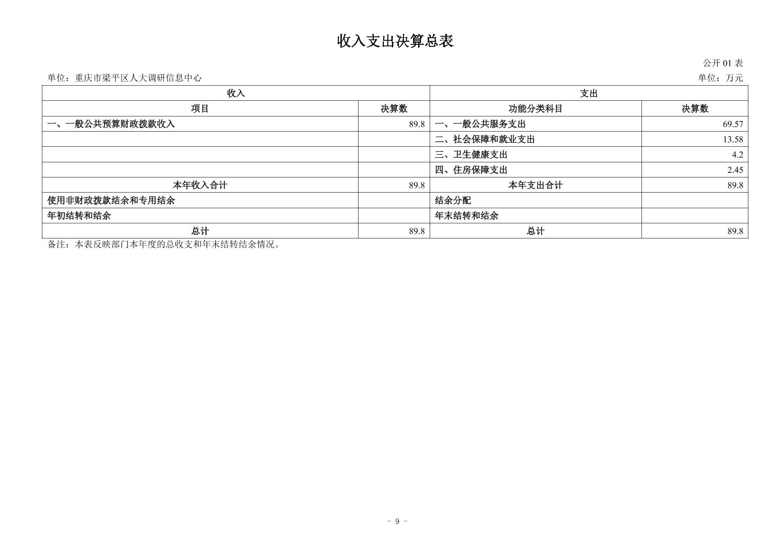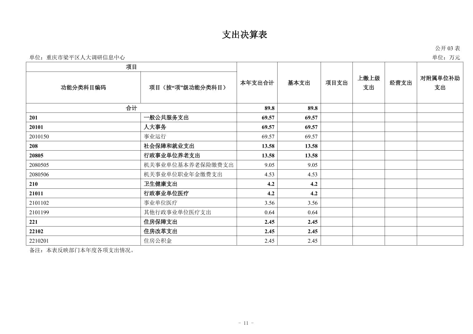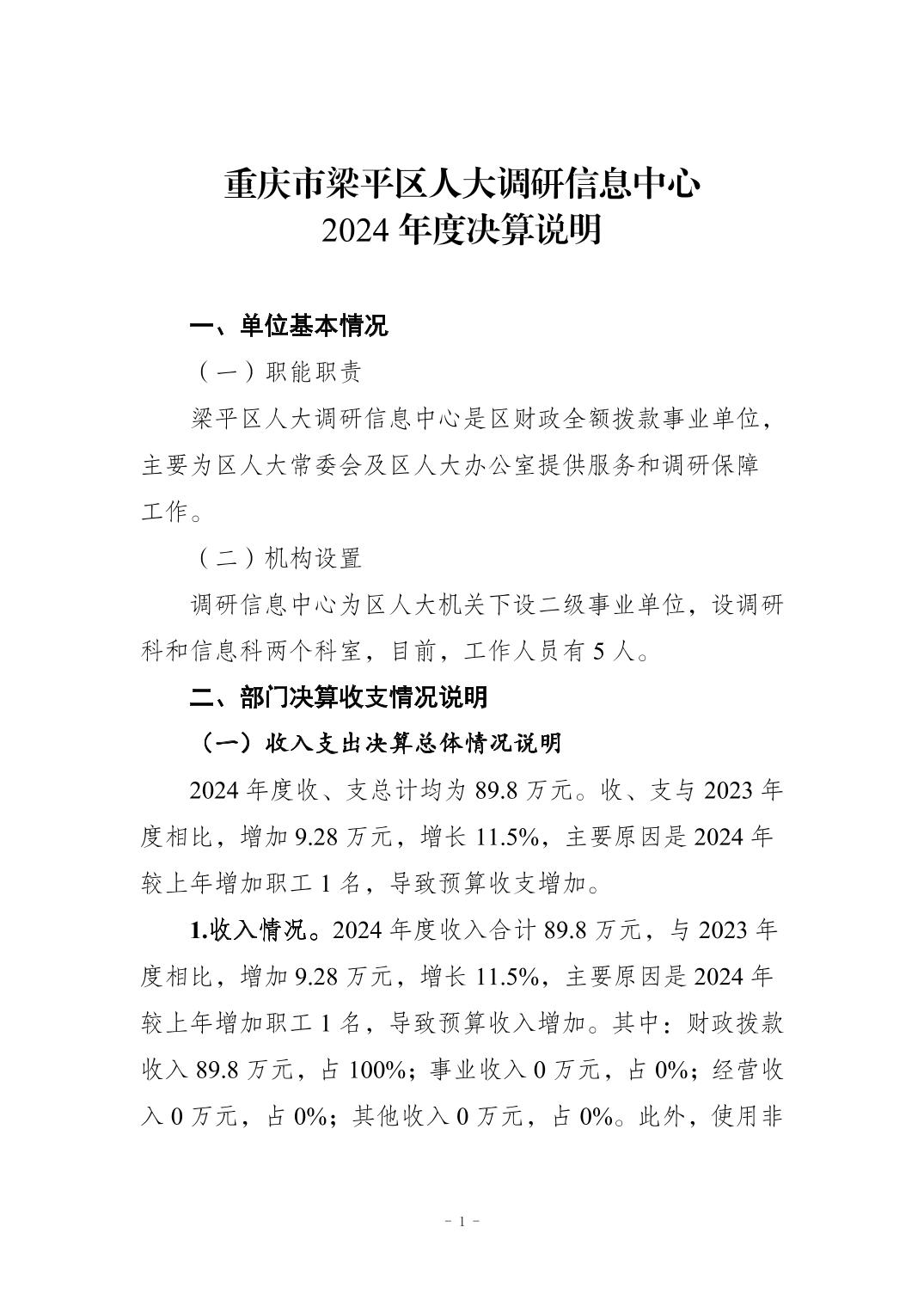 标题 | 重庆市梁平区人大调研信息中心 2024 年度决算说明 |