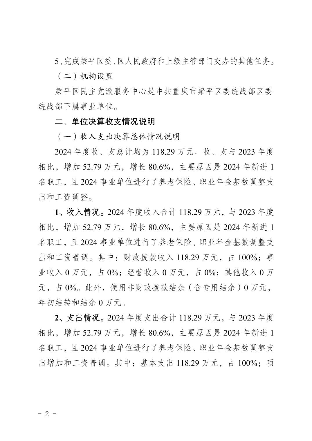 标题 | 重庆市梁平区民主党派服务中心 2024 年度决算公开说明 |