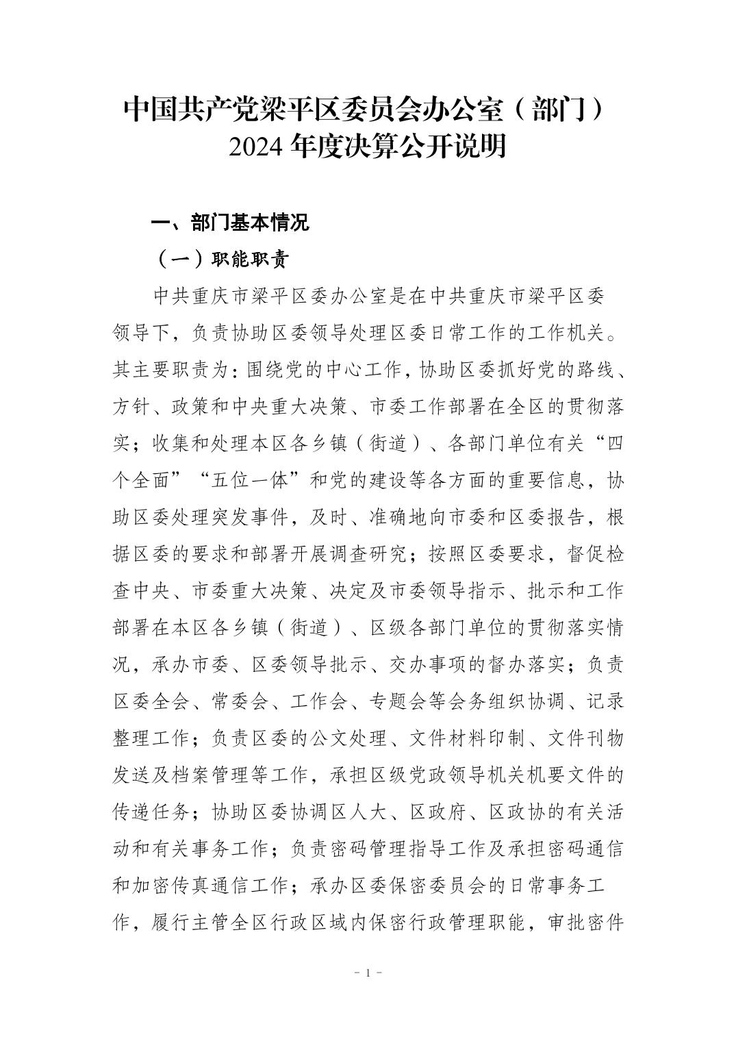 标题 | 中国共产党梁平区委员会办公室(部门) 2024 年度决算公开说明 |