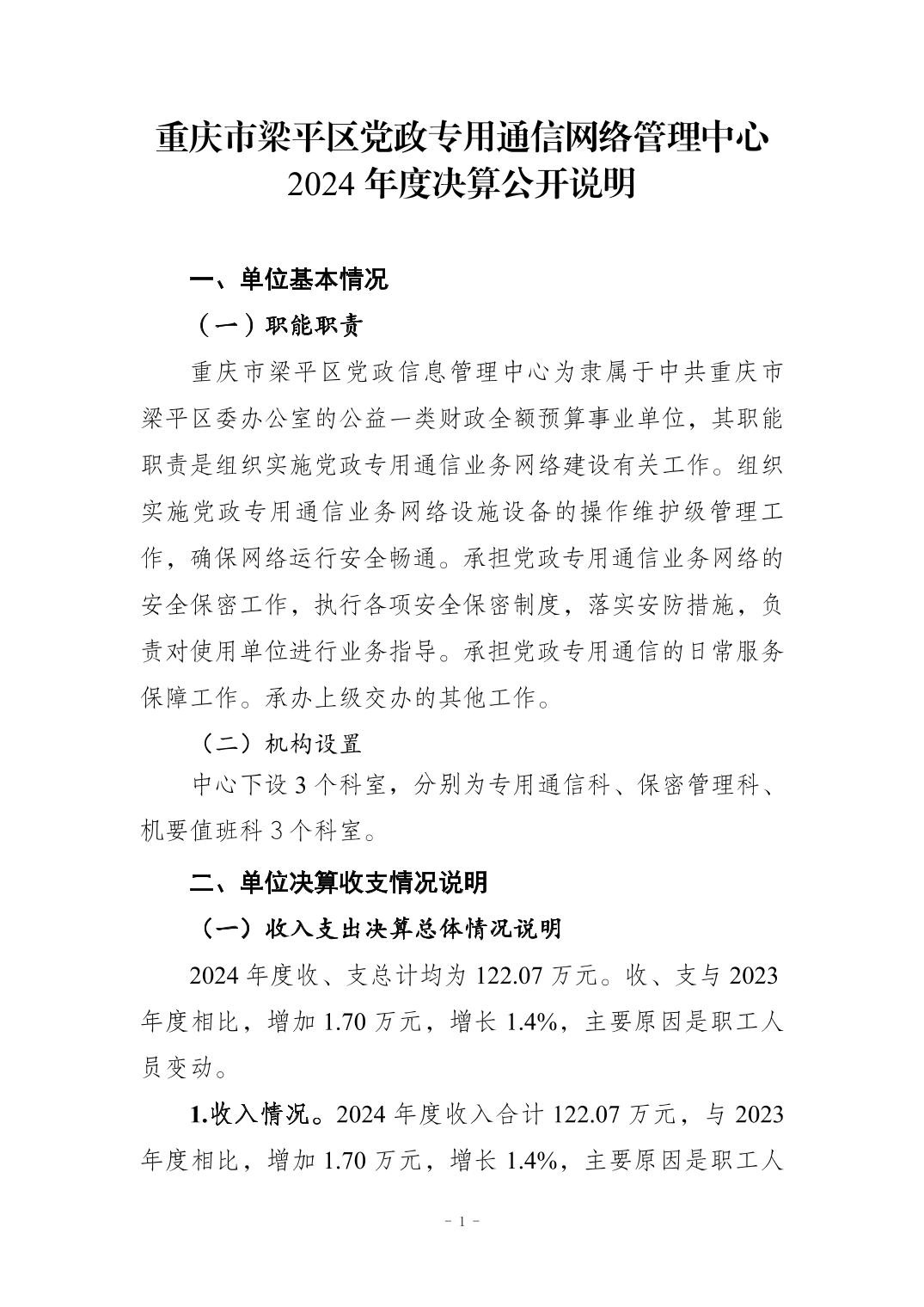 标题 | 重庆市梁平区党政专用通信网络管理中心 2024 年度决算公开说明 | ||
