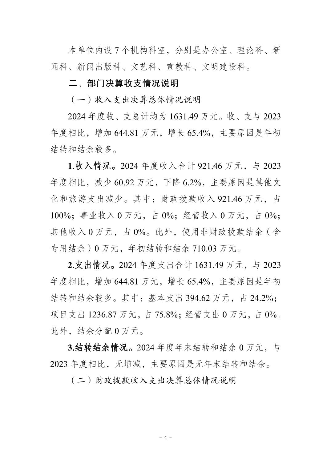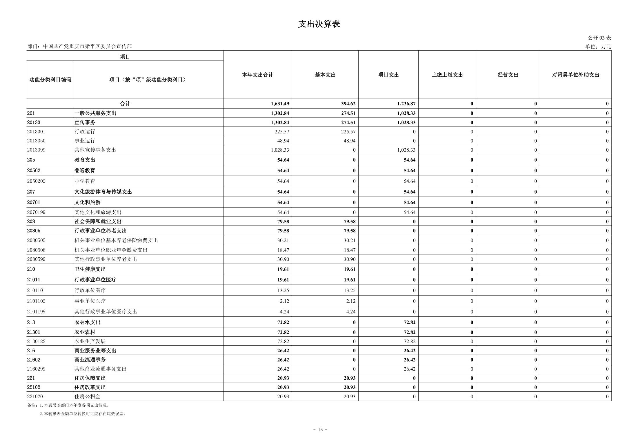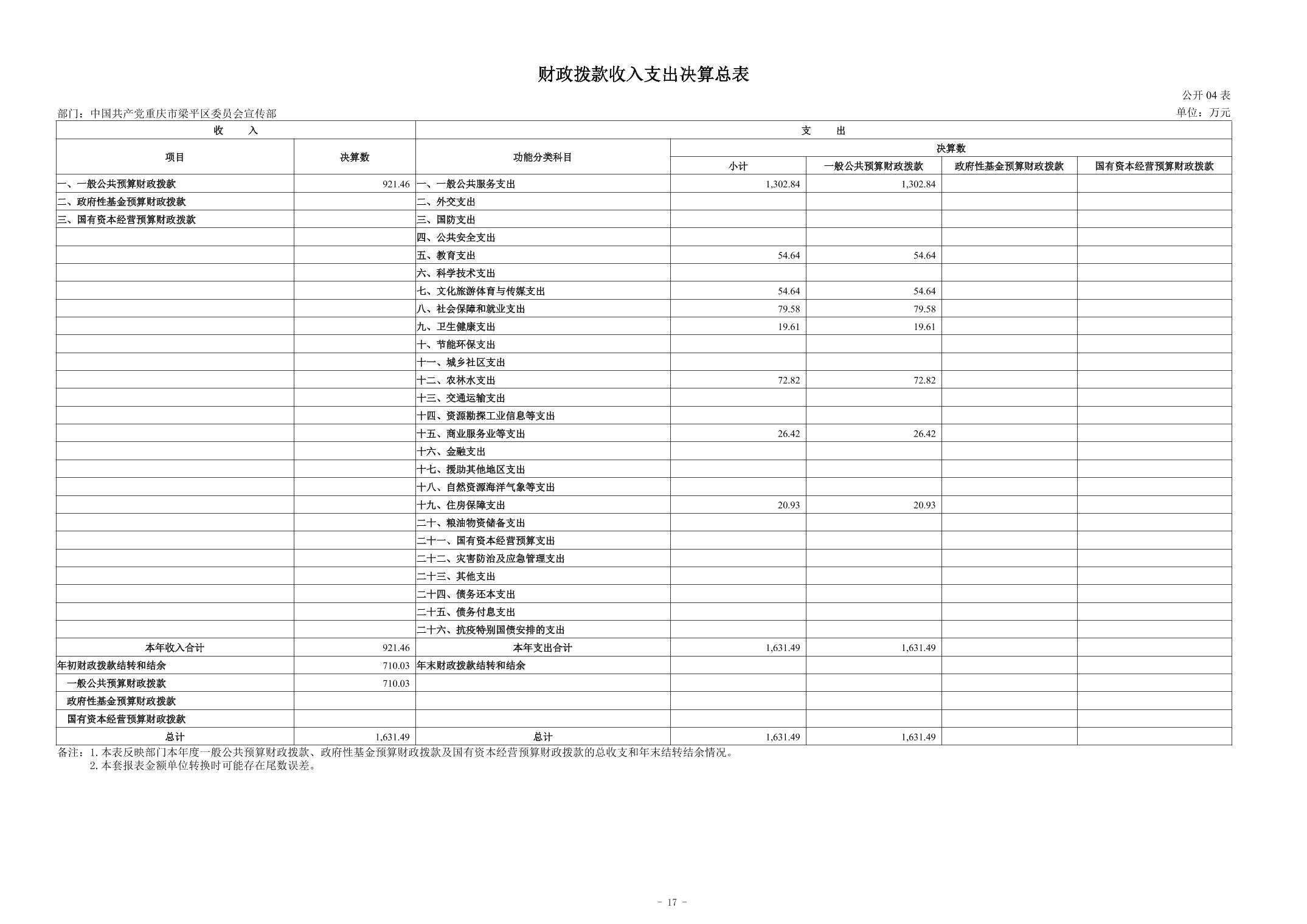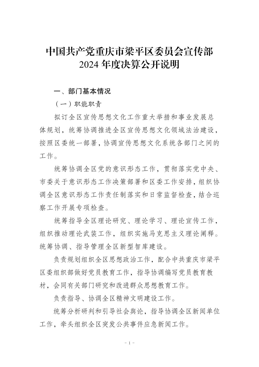 标题 | 中国共产党重庆市梁平区委员会宣传部 2024 年度决算公开说明 |