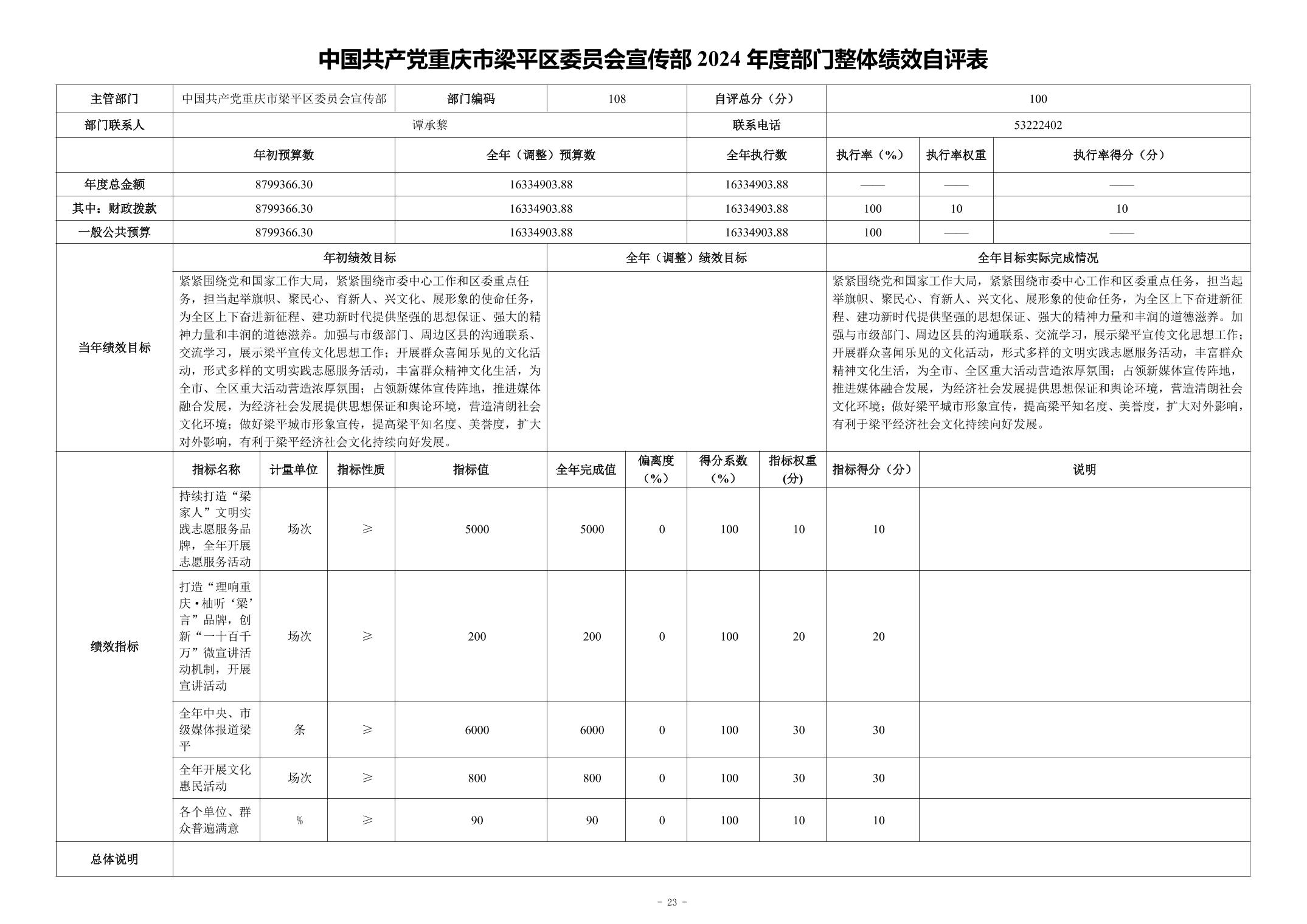 标题 | 中国共产党重庆市梁平区委员会宣传部 2024 年度决算公开说明 | ||