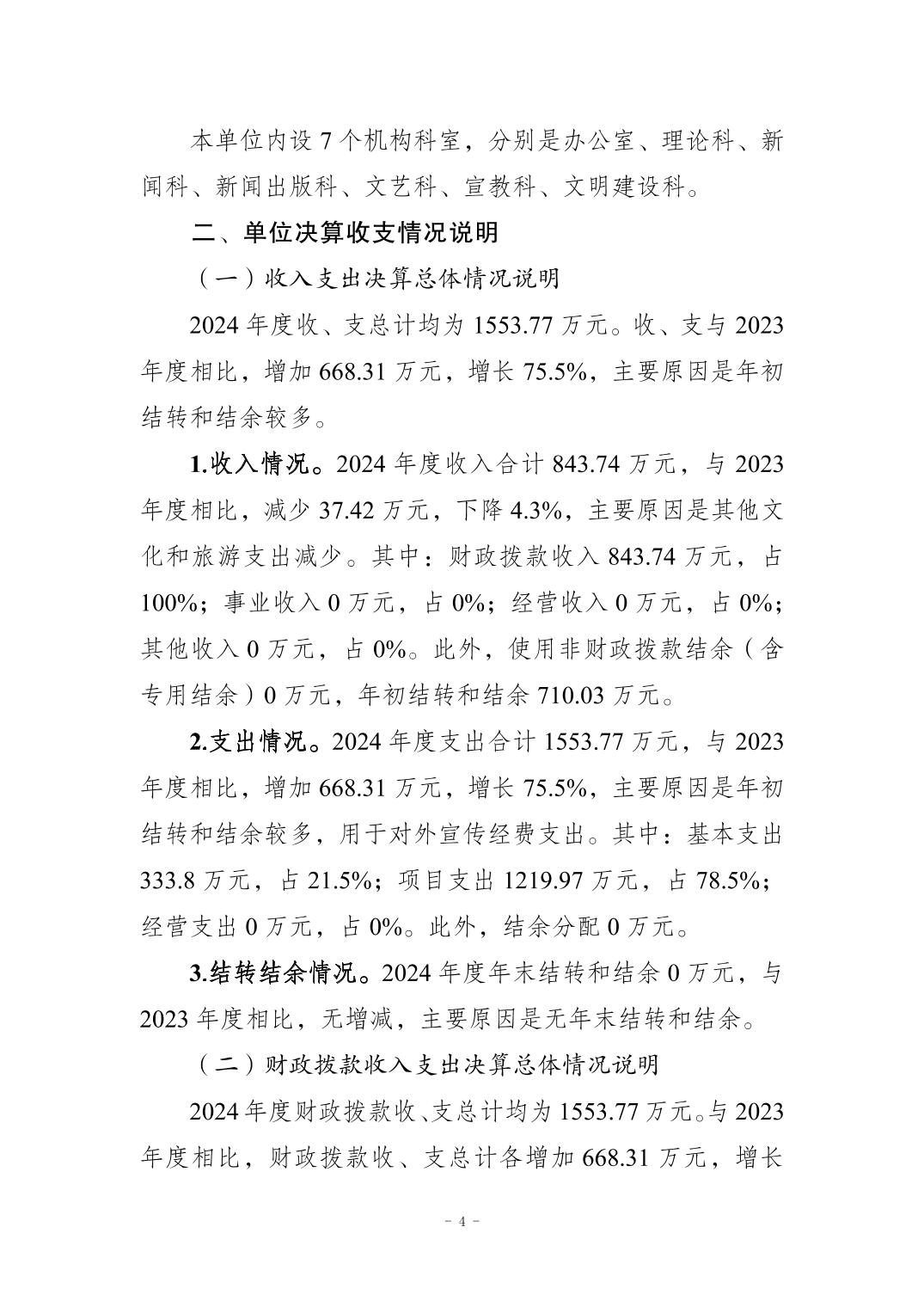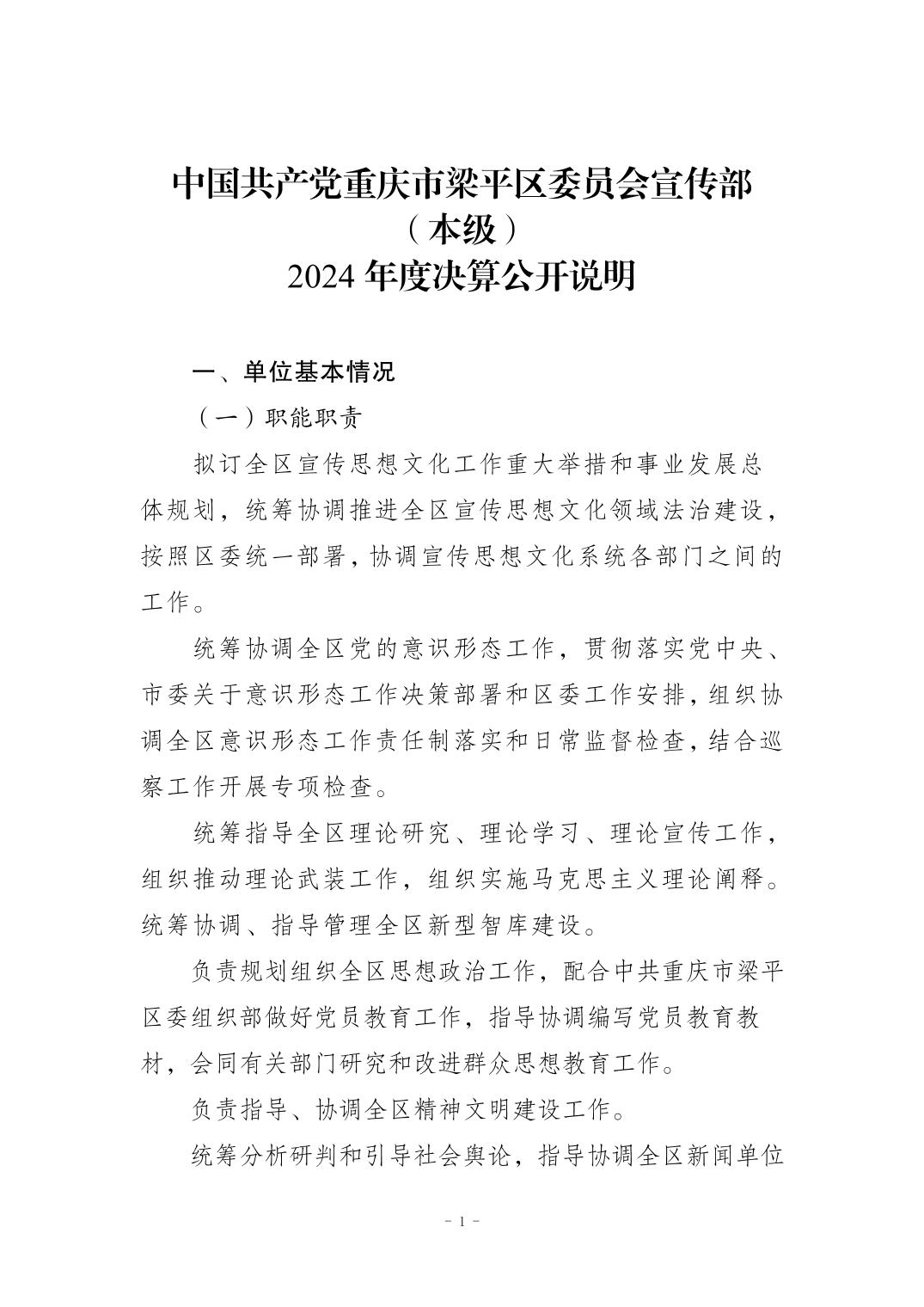 标题 | 中国共产党重庆市梁平区委员会宣传部 (本级) 2024 年度决算公开说明 | ||
