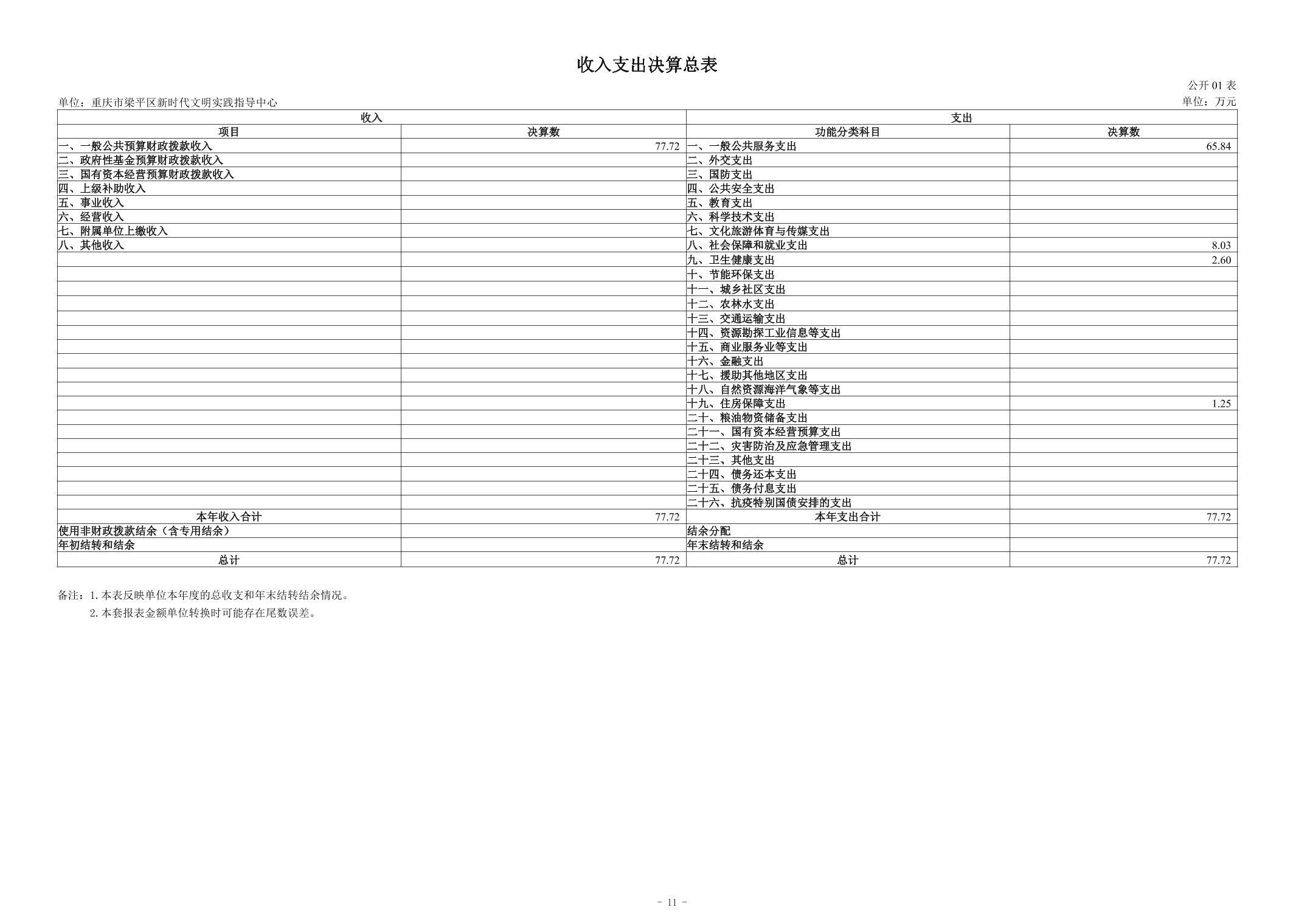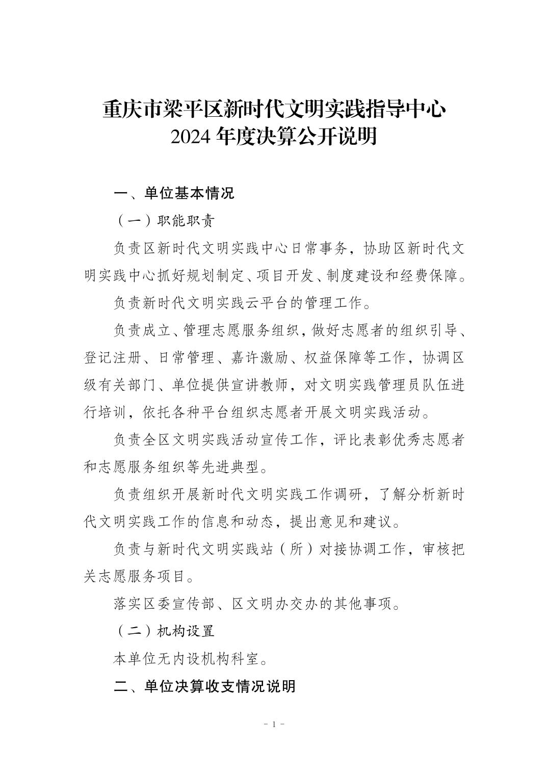 标题 | 重庆市梁平区新时代文明实践指导中心 2024 年度决算公开说明 |