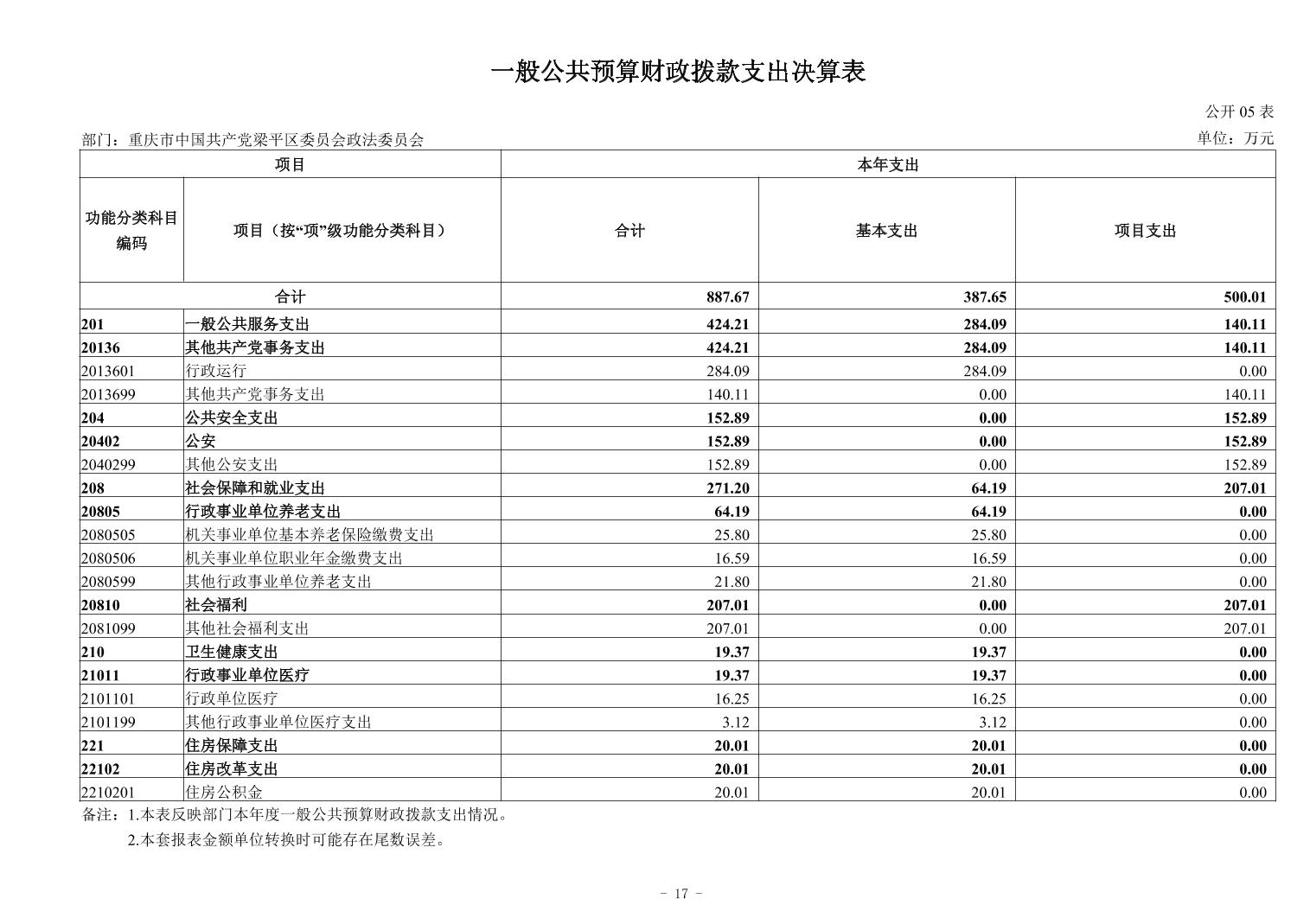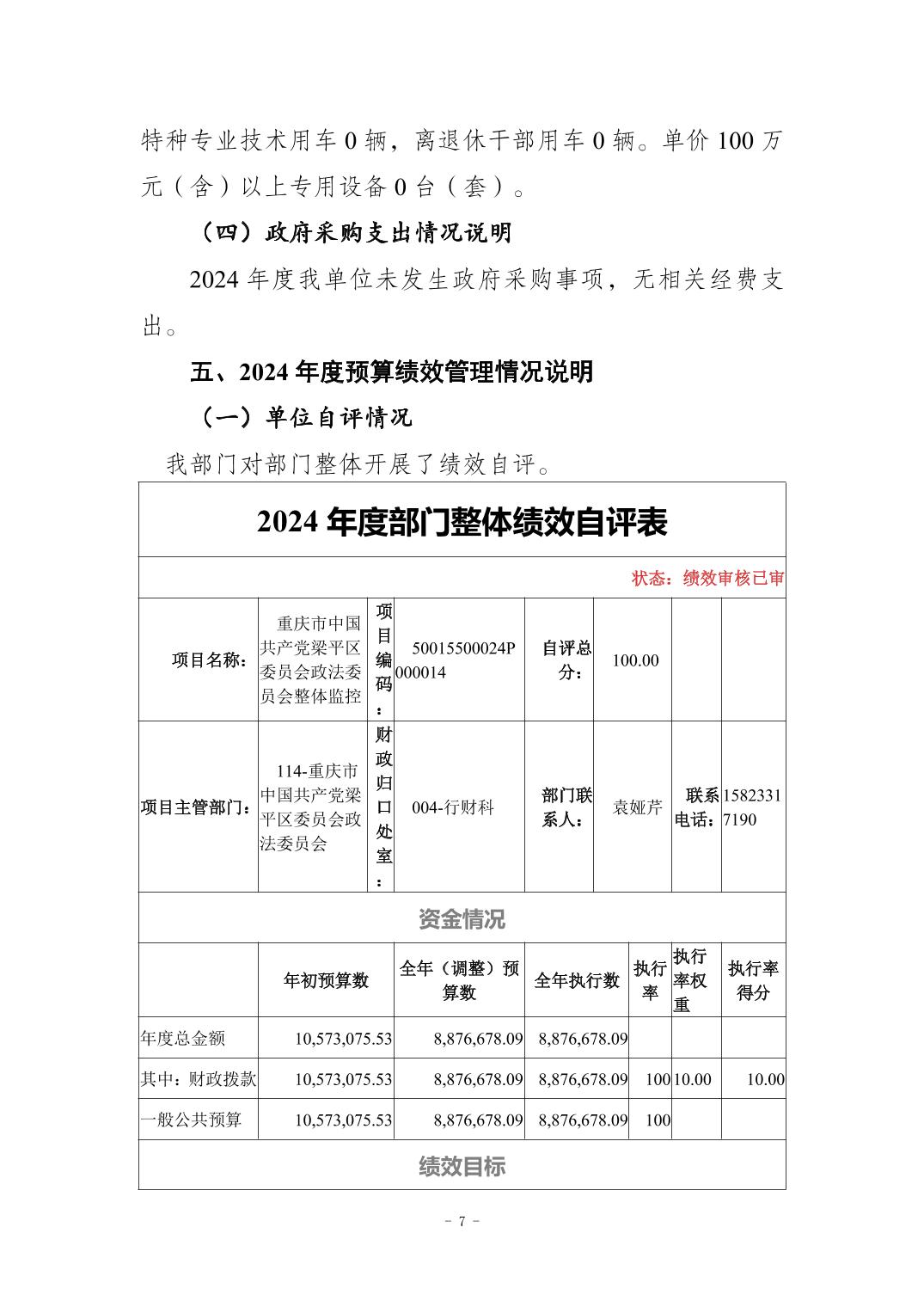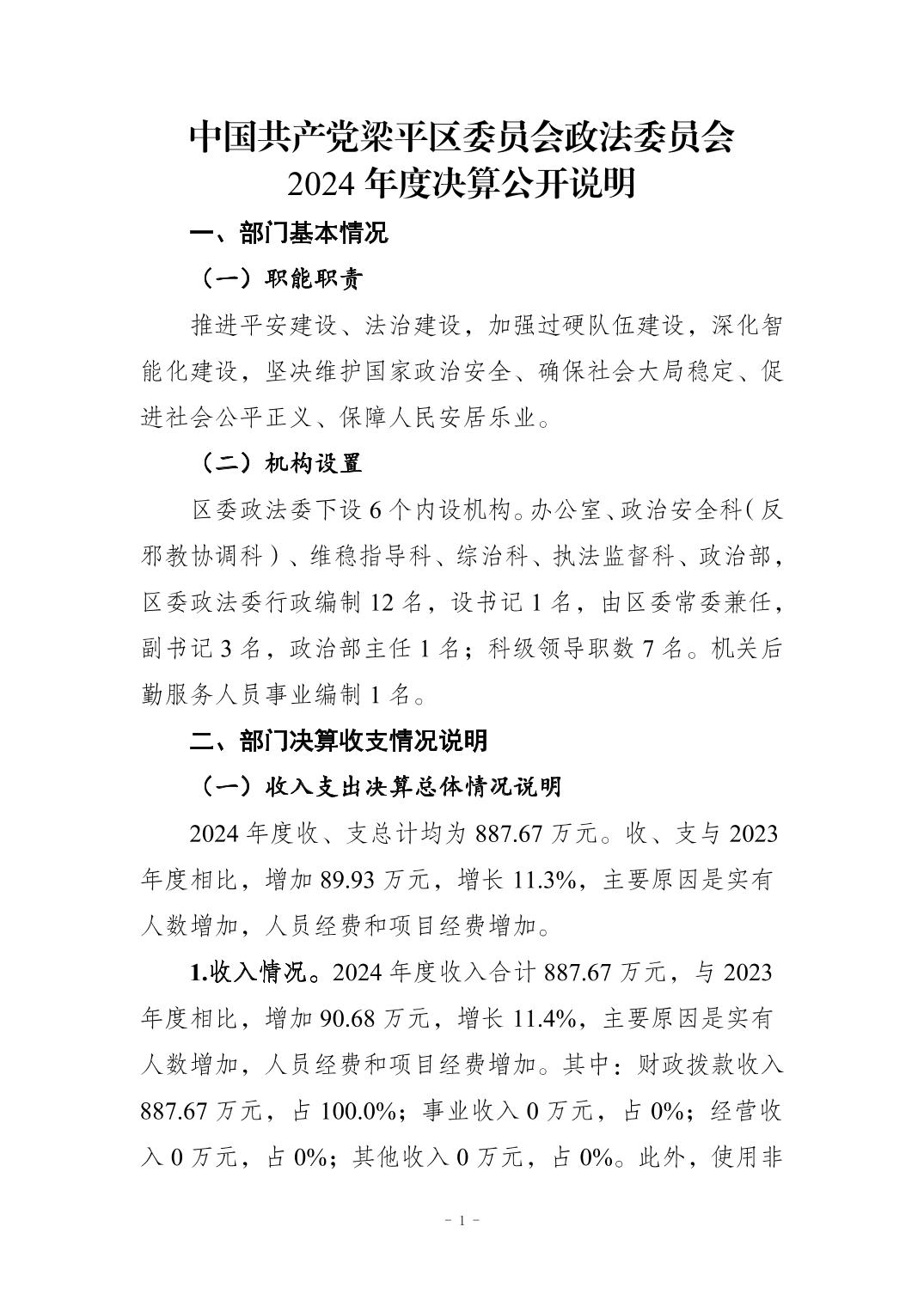 标题 | 中国共产党梁平区委员会政法委员会 2024 年度决算公开说明 |