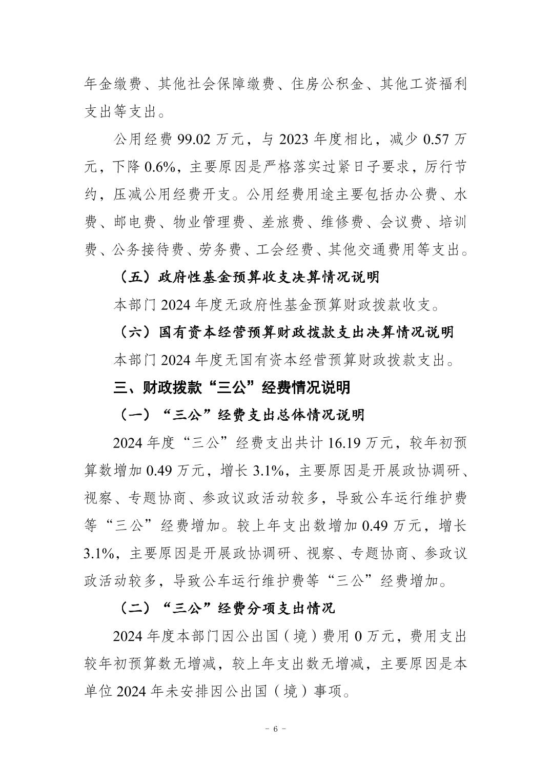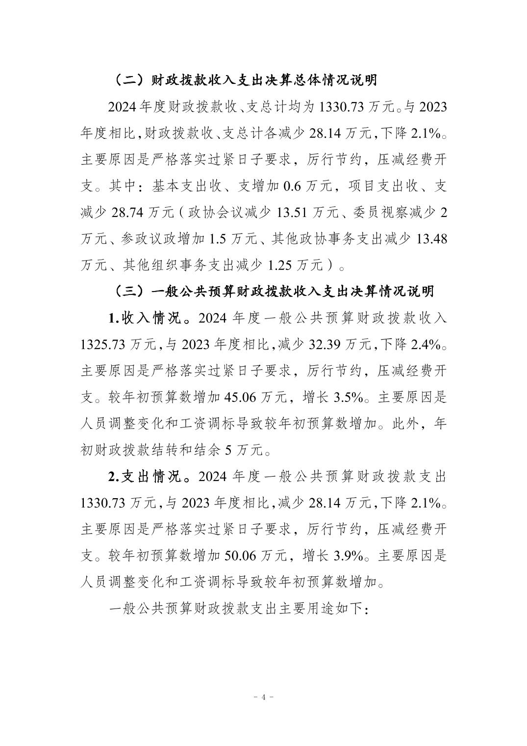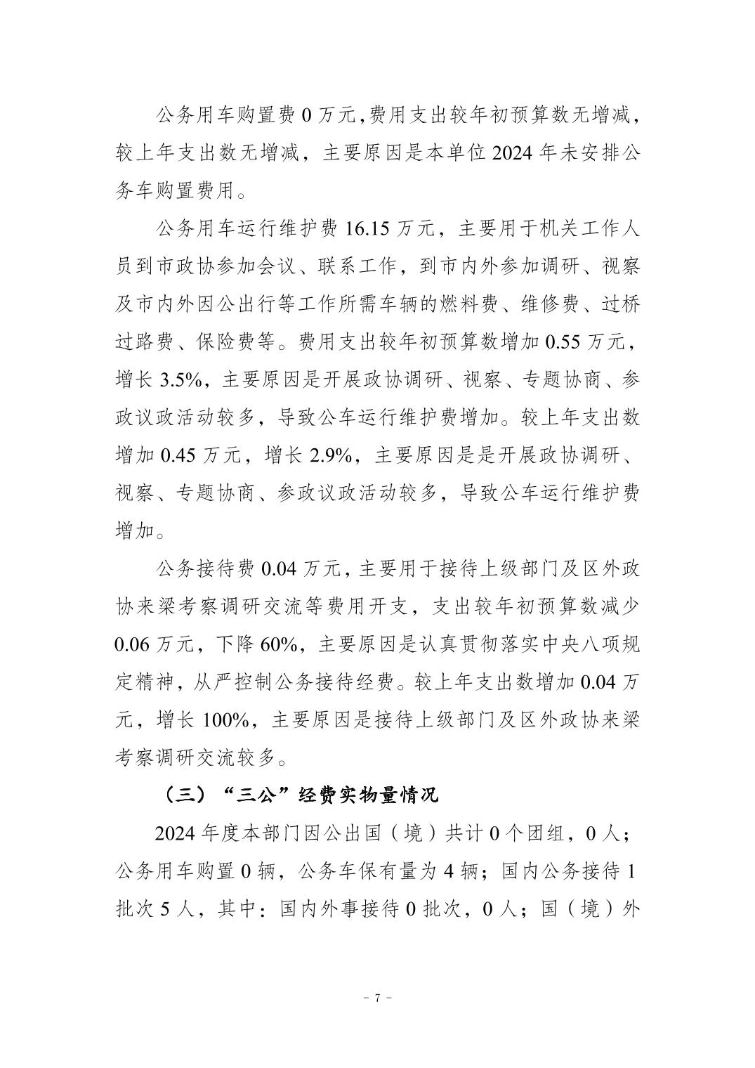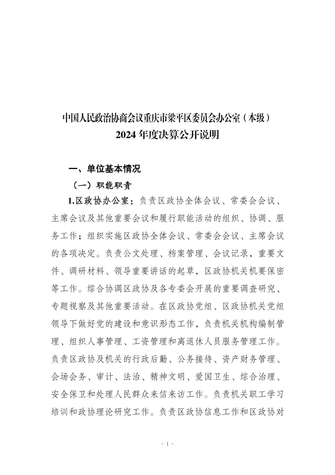 标题 | 中国人民政治协商会议重庆市梁平区委员会办公室(本级) 2024 年度决算公开说明 | ||