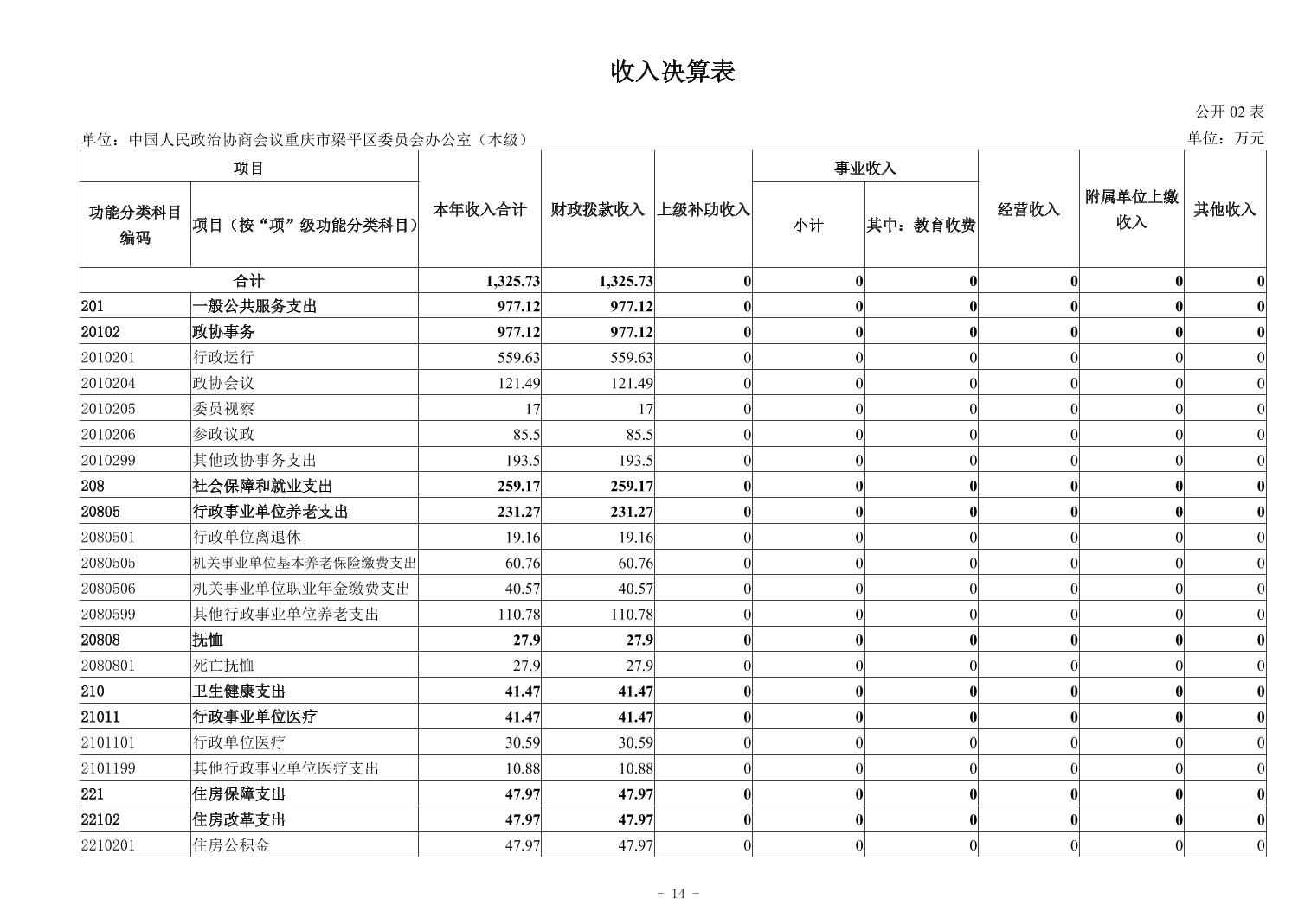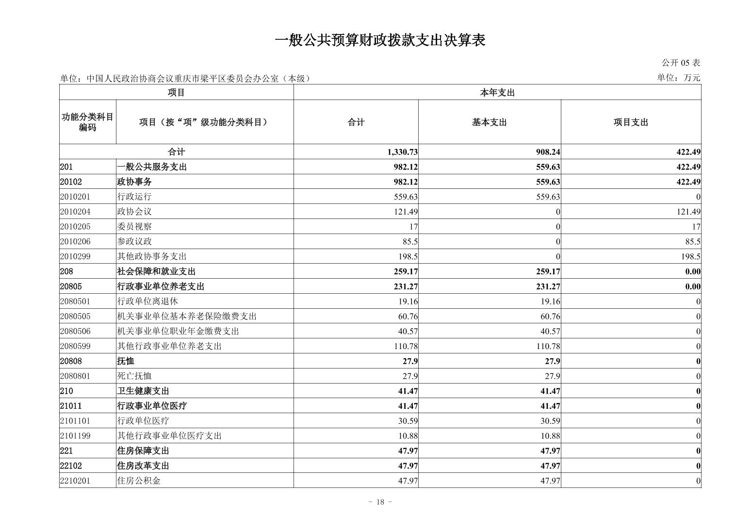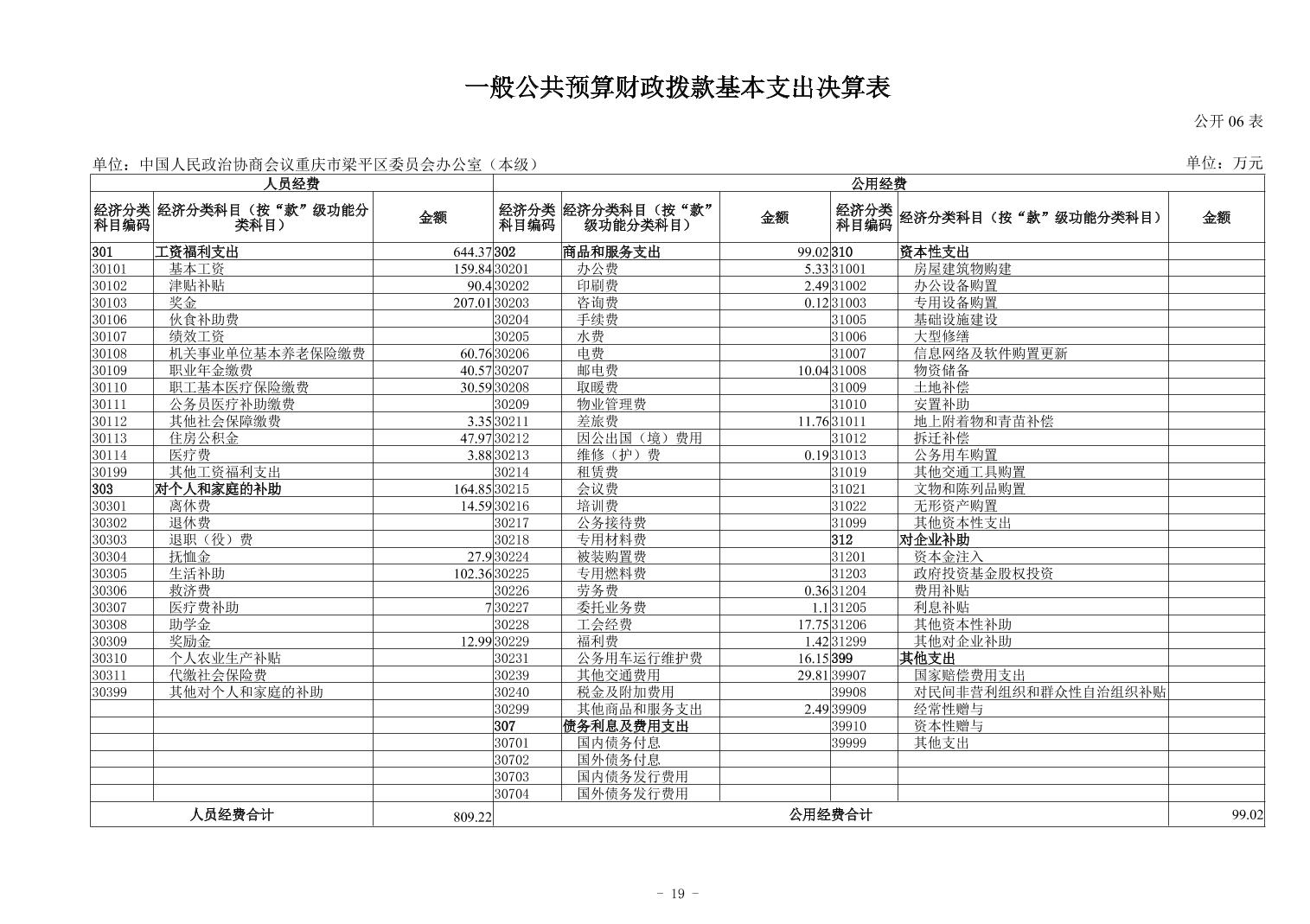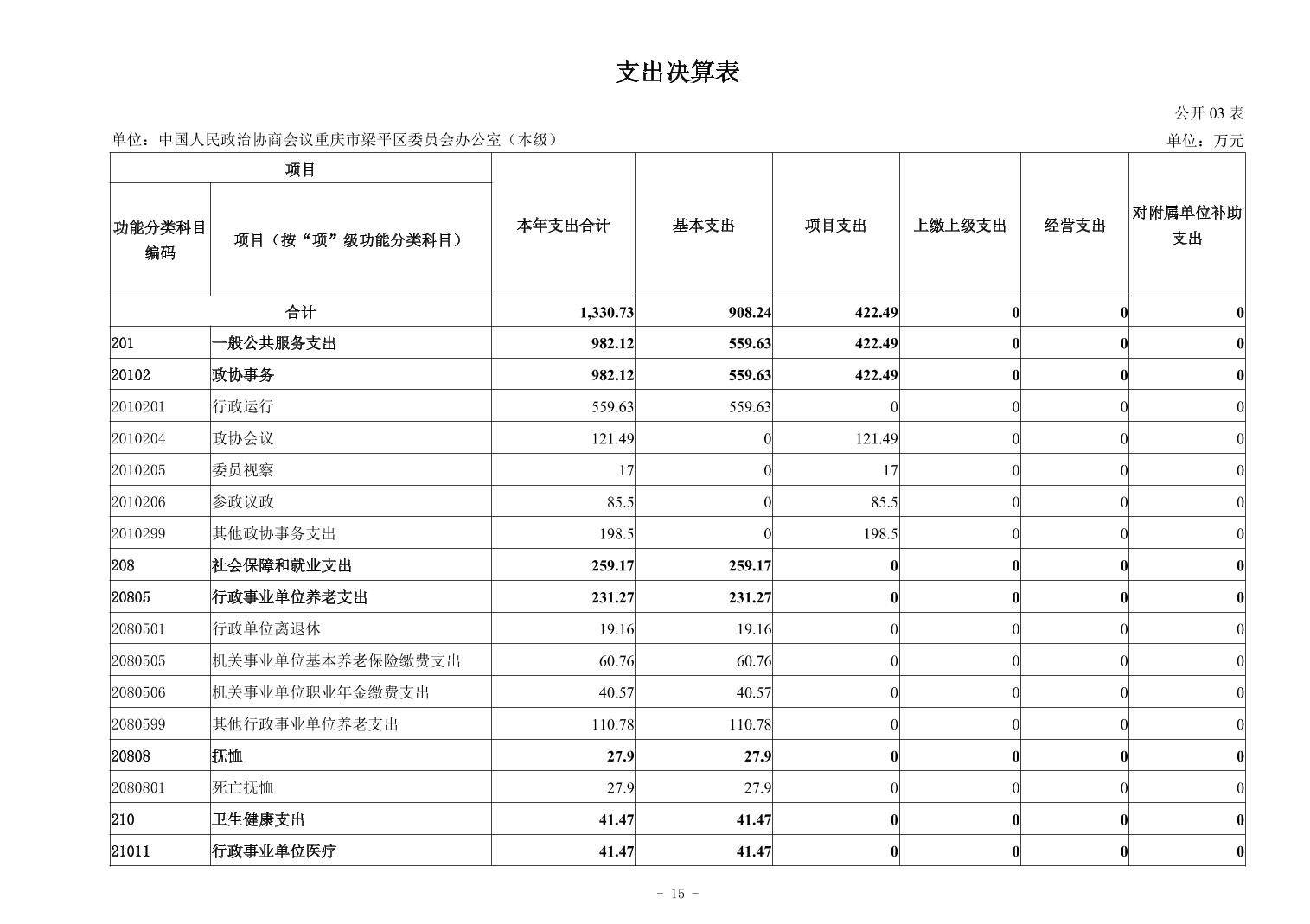 标题 | 中国人民政治协商会议重庆市梁平区委员会办公室(本级) 2024 年度决算公开说明 | ||