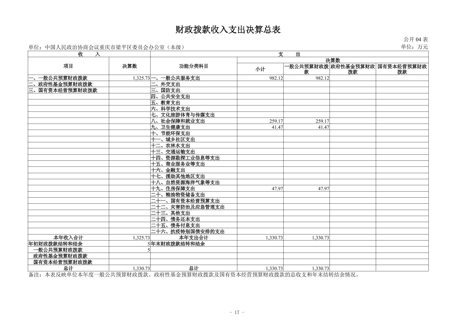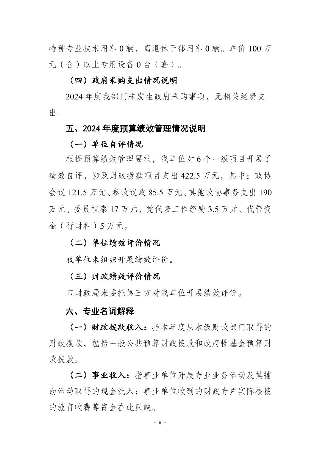 标题 | 中国人民政治协商会议重庆市梁平区委员会办公室(本级) 2024 年度决算公开说明 |