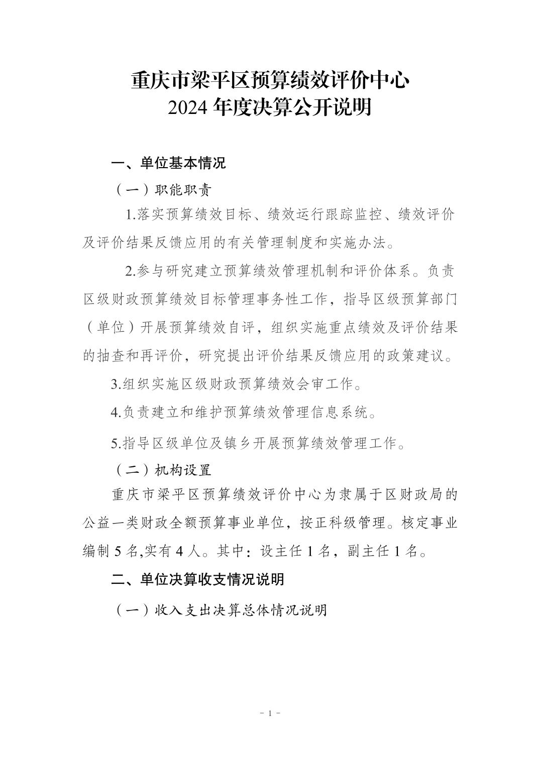标题 | 重庆市梁平区预算绩效评价中心2024年度决算公开说明 |